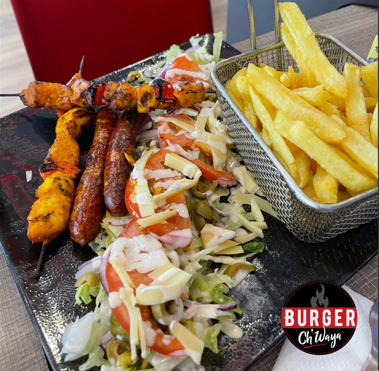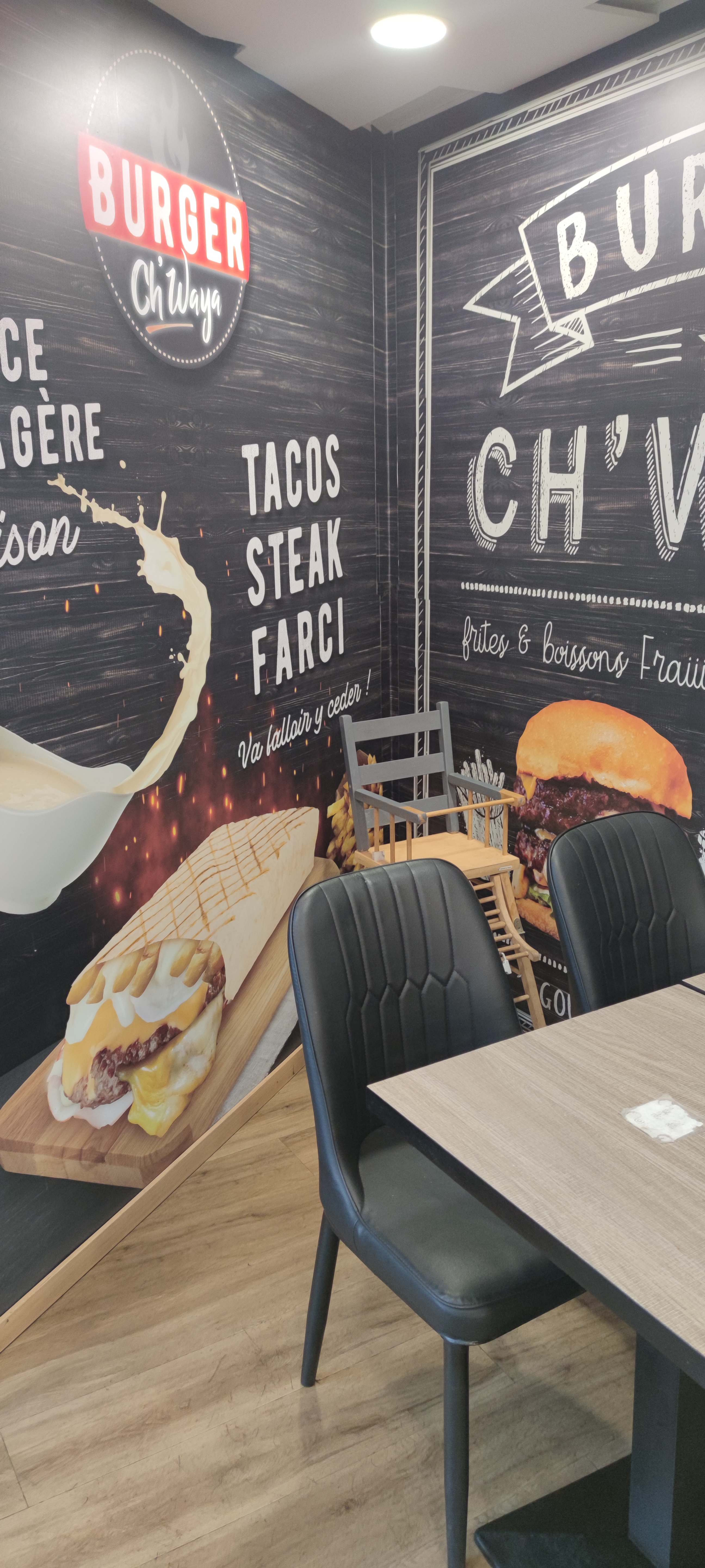 Restaurant très bon propre es de qualité mais vraiment très déçu pour le manque de sérieux es l'attente si on fait une commande à 11h30 avant que le Restaurant soi ouvert c'est que ces important 12h30 toujours pas de commande les gens sur place ou à emporter on pris leur commande qui avait fait apres moi j'ai du partir sans ma commande. Pour mangé au burger chwaya ils faut rien avoir de prévue.