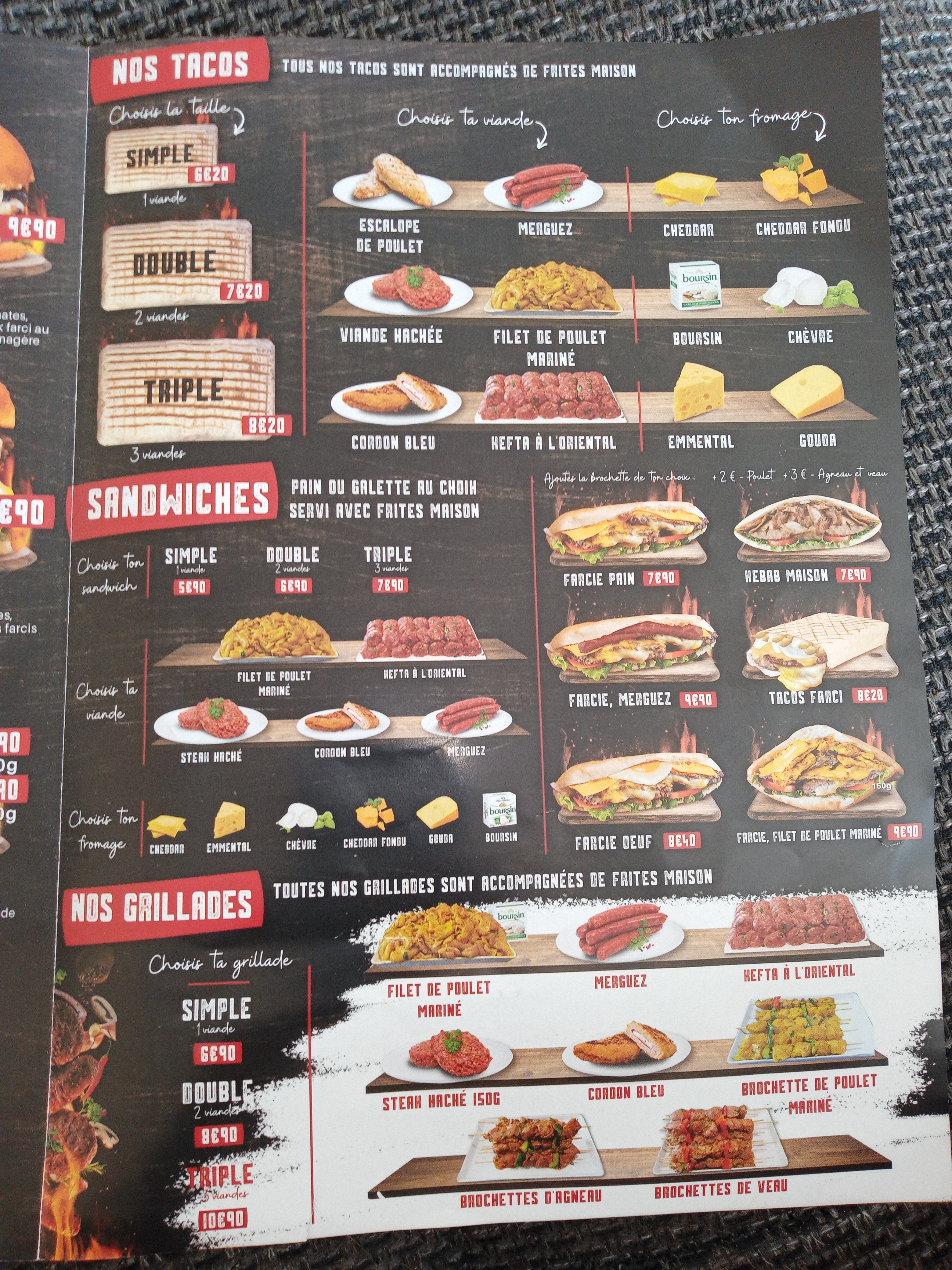 Merci a la team tunisia, les bugers sont vraiment excellents avec de la viande fraiche. L'endroit et récent et moderne, j'y ai était pendant le confinement donc j'ai pris a emporté. J'avais jamais mangé de la viande fourré au cheddar 👍 les burgers sont du niveau bistrot bien haut et garni, les frites sont fraiches faites maison. Je retire une étoile pour le cholesterol mais ces trop bon. Attention a ne pas en abusé. Le prix est un peu chère pour les maxi ultra burgers mais ces pas des steaks congelés tout plat et la boisson est as part. Ils font aussi des tacos et sandwichs avec un large choix de viandes comme du coeur d'agneaux mais j'ai pas testé.Il n'y as pas beaucoup de choix comme cannettes (pas de jus d'orange...) Ils font des bugers et ils les fonts bien, je recommande pour les burgers