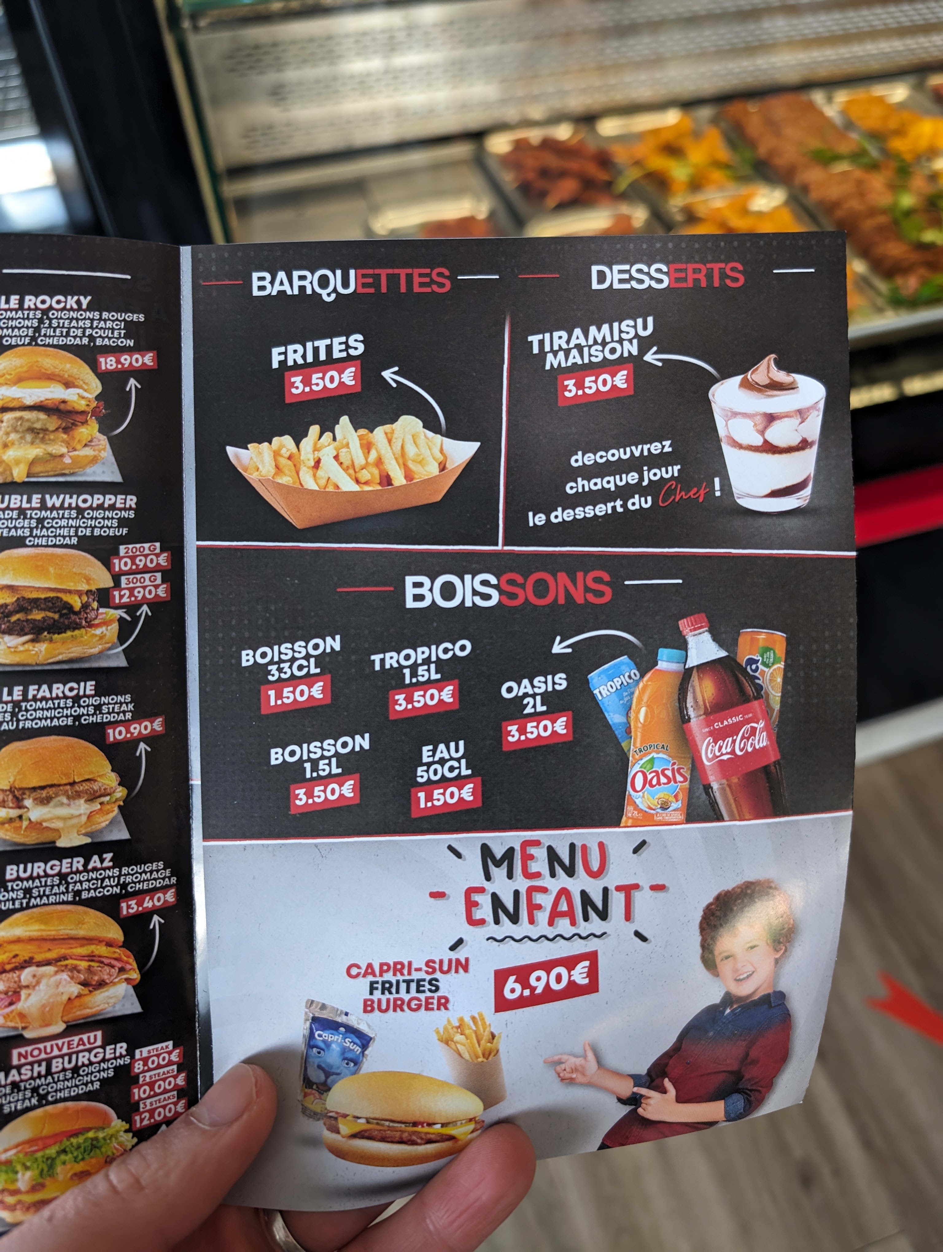 On a prit des menus enfants, les grillades trop bonnes et le burger spécial T trop bon. Pour une première fois c’était excellent.