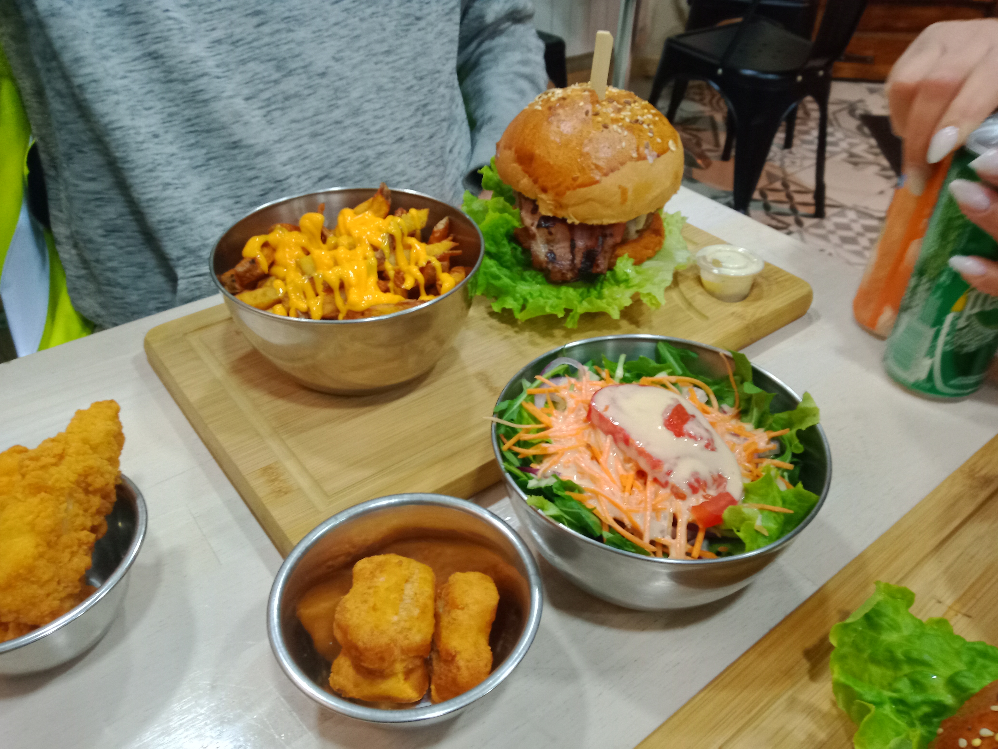 Vraiment beau et bien servie, les frites bien servie et super bonne mais déçu des burgers, dommage