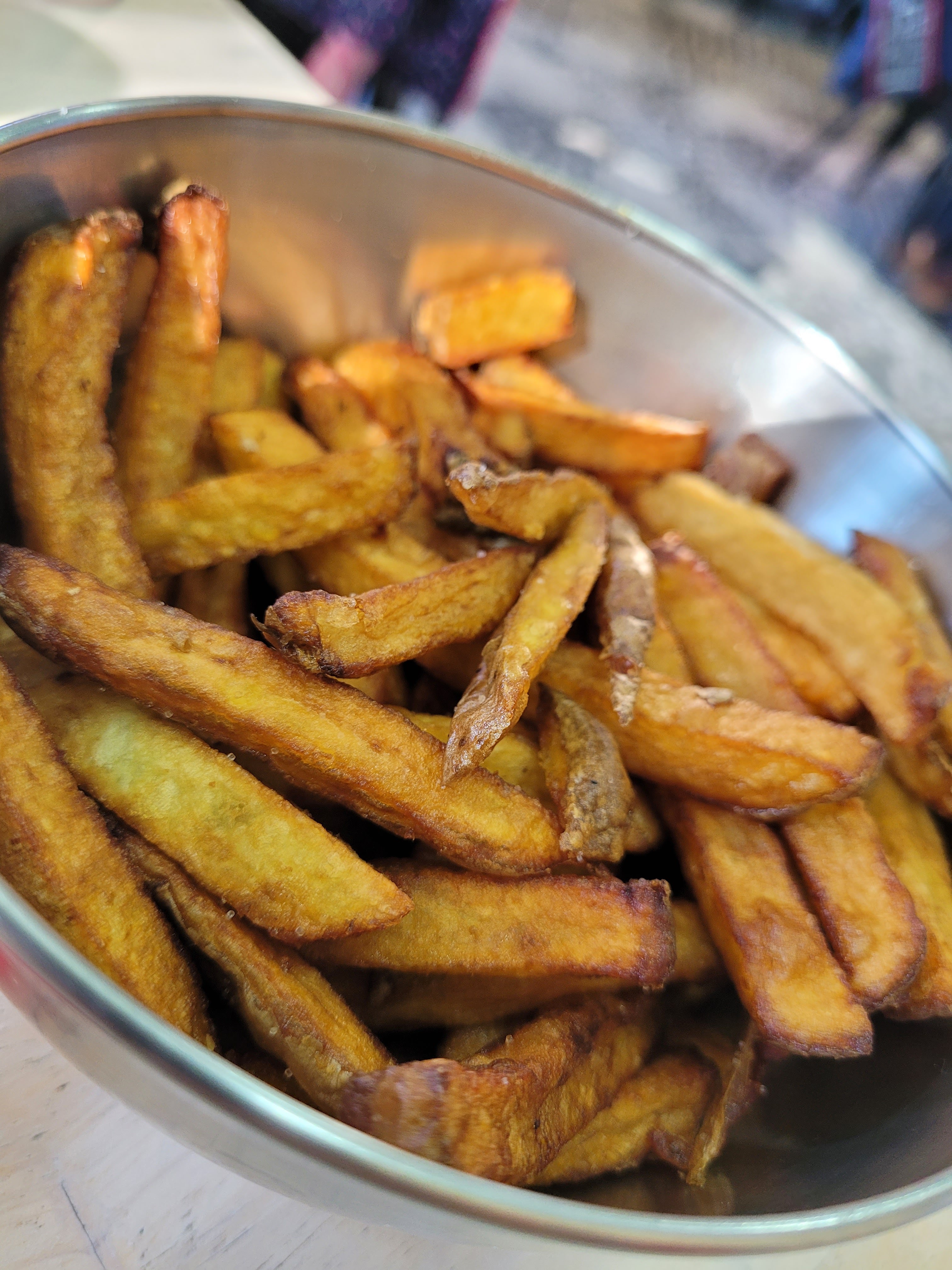 Bonsoir, les frites maison étaient bonnes, mais déçu quand même dans l’ensemble étant malade après avoir manger le Burger moi et ma compagne.