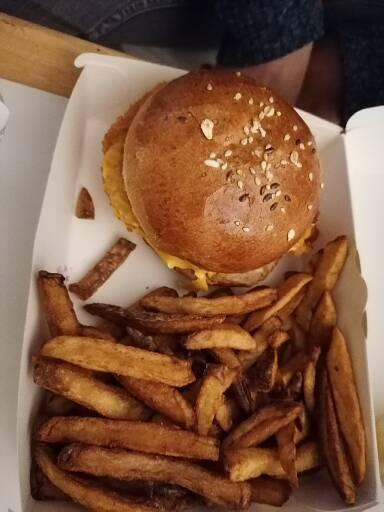 Burger de très bonne qualités, copieux et servis avec des frites fraîche (il me semble). Services de très bonne qualité et personnel très agréable et sympathique. Je recommande vivement pour les amateurs de burger!