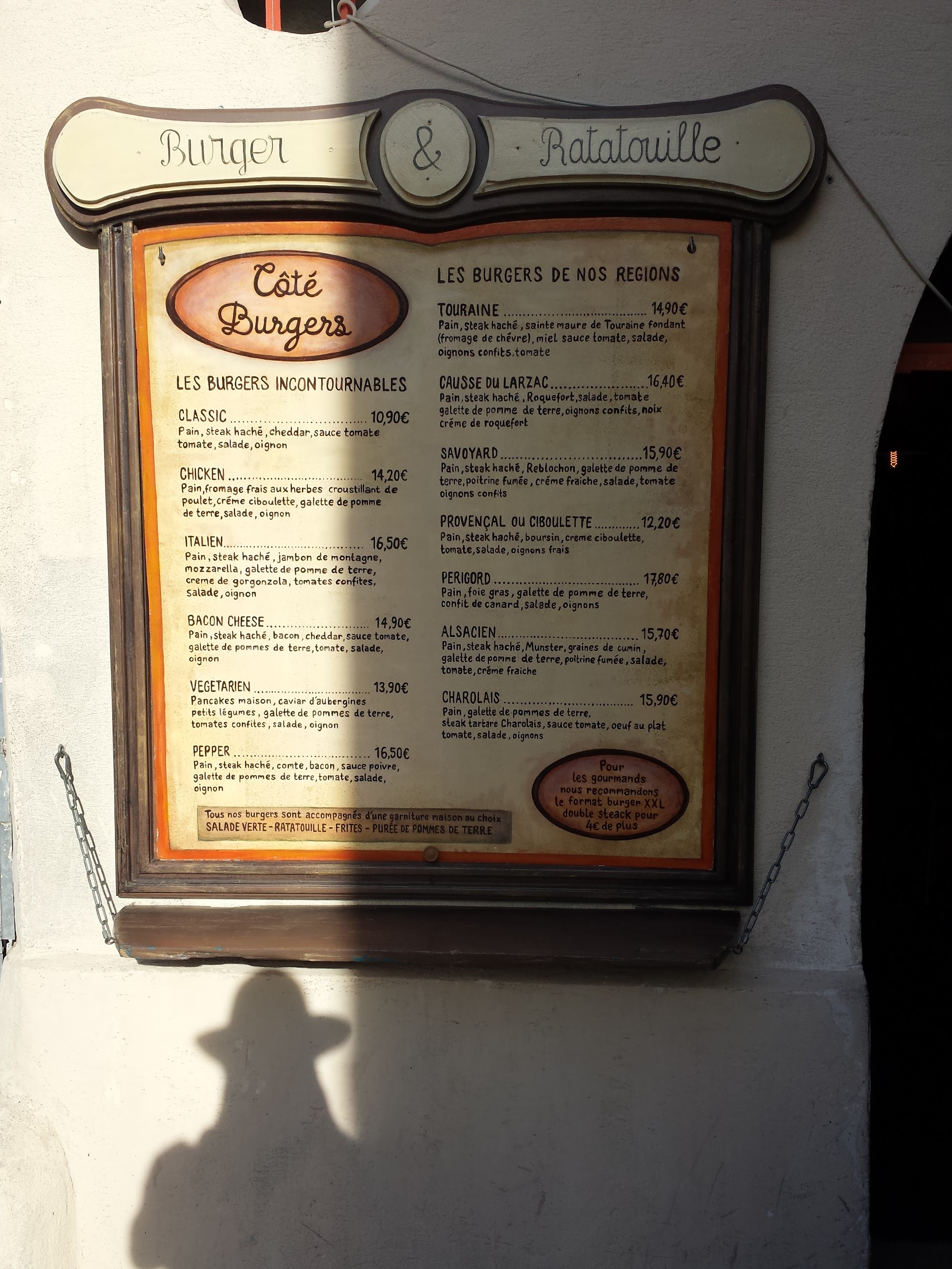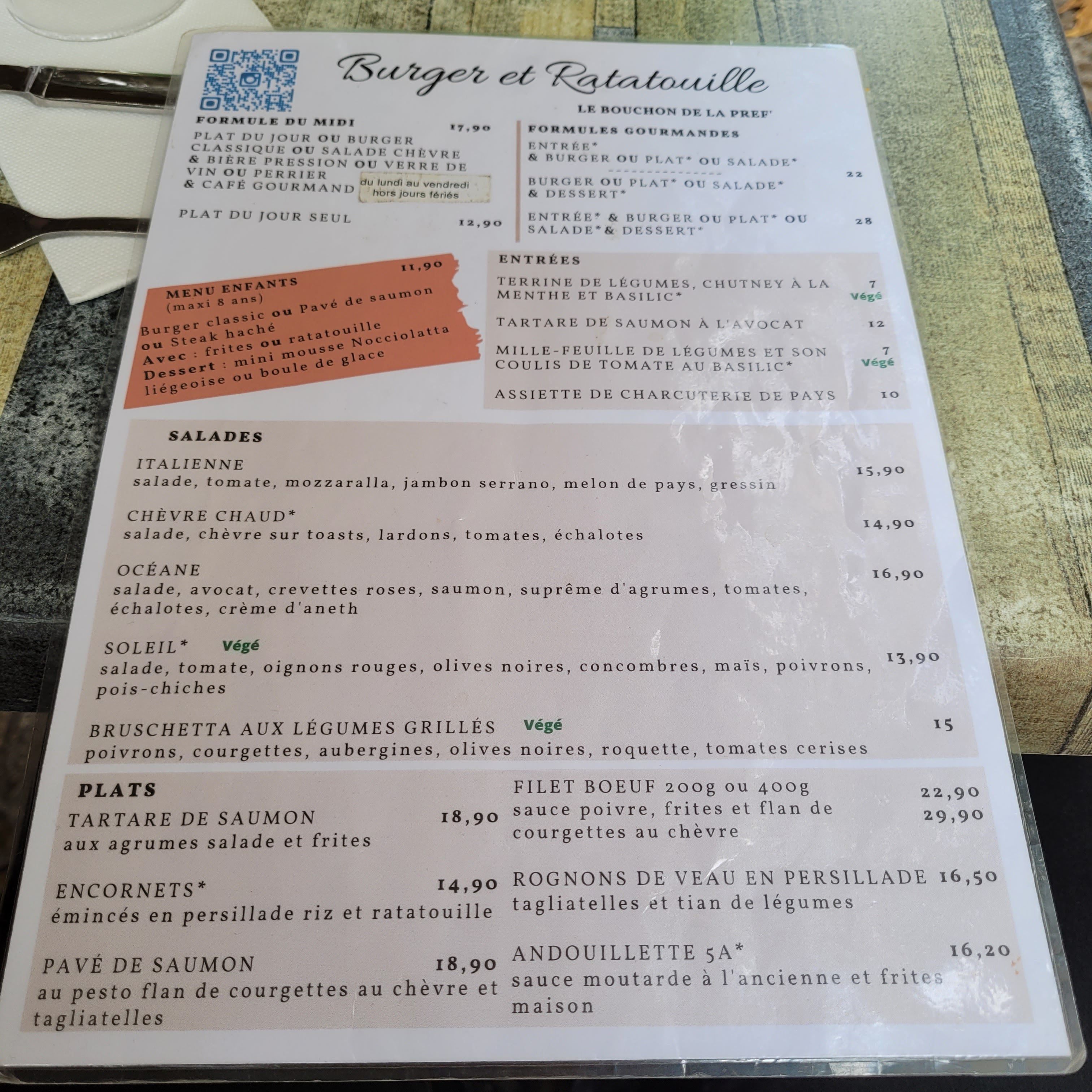 Bon restaurant à burger, je n'ai pas essayé la ratatouille. Les burgers sont très bons et les frites le sont aussi. Bon rapport qualité prix. Les prix démarrent le soir pour environ 14€. Tout est bien servi. Bon accueil.