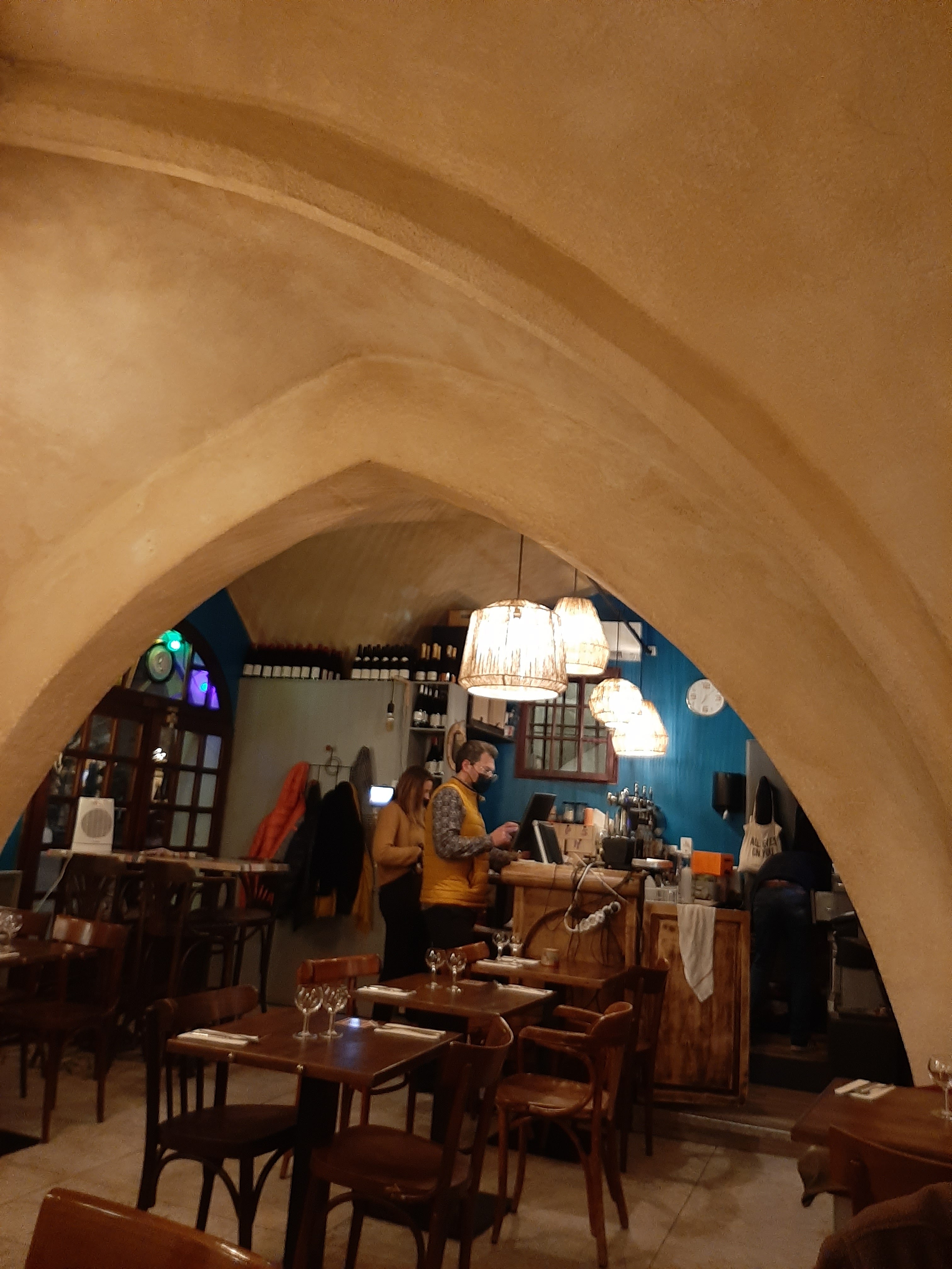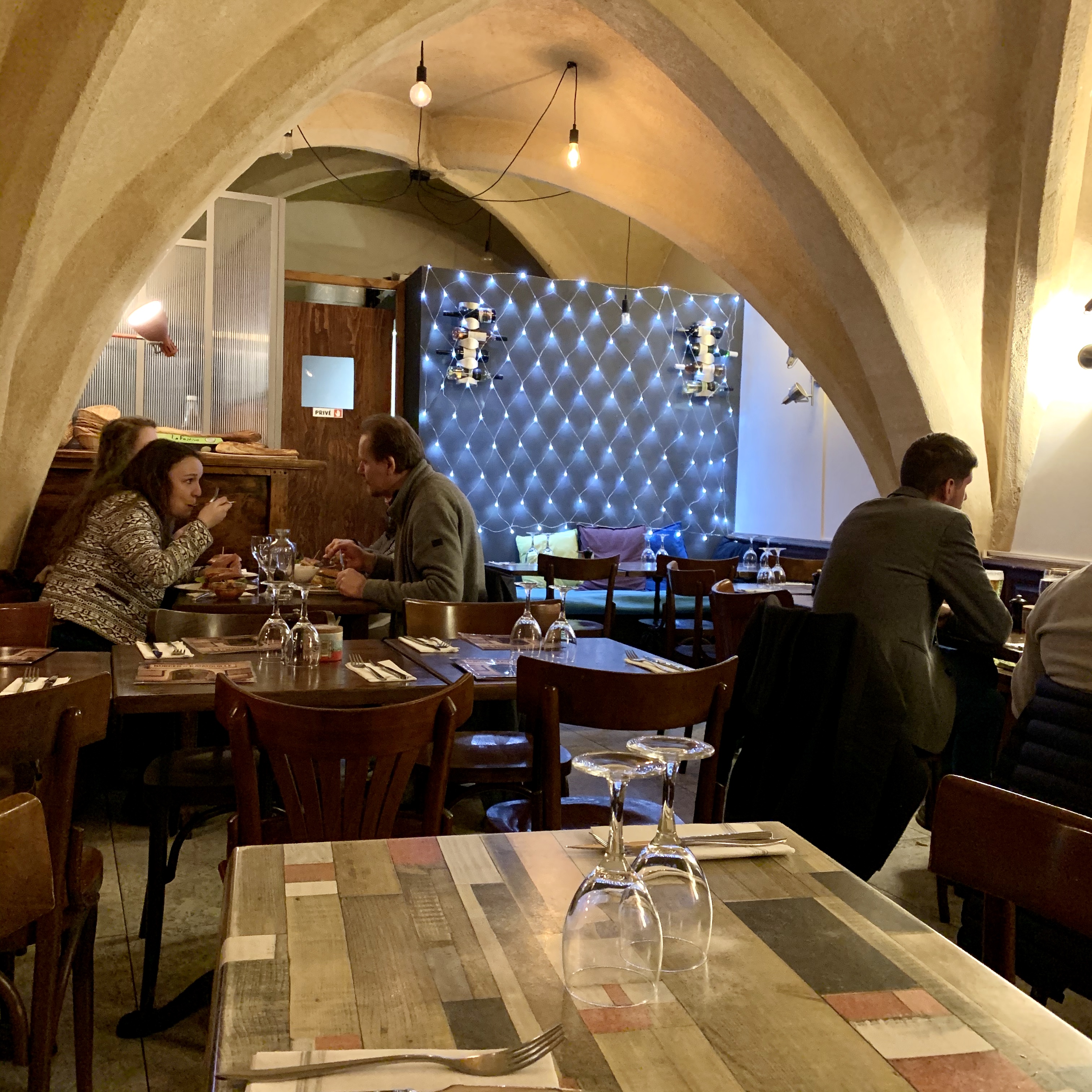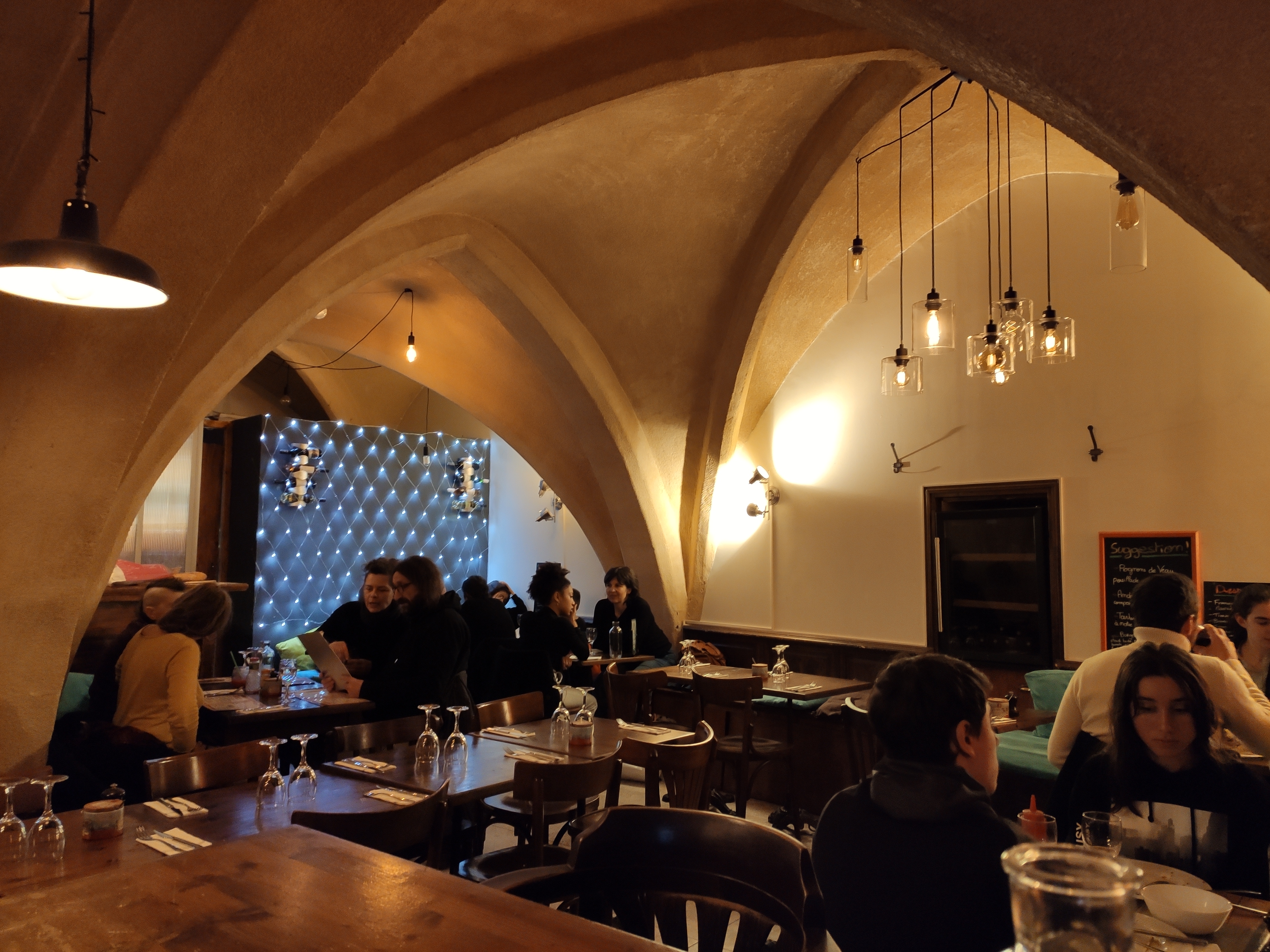 Sur une place très agréable, l’intérieur, voûté, est tout aussi beau ! La nourriture est très bonne malgré notre arrivée tardive. Mention spéciale au serveur de ce midi qui est très sympathique et qui déborde d’humour !
