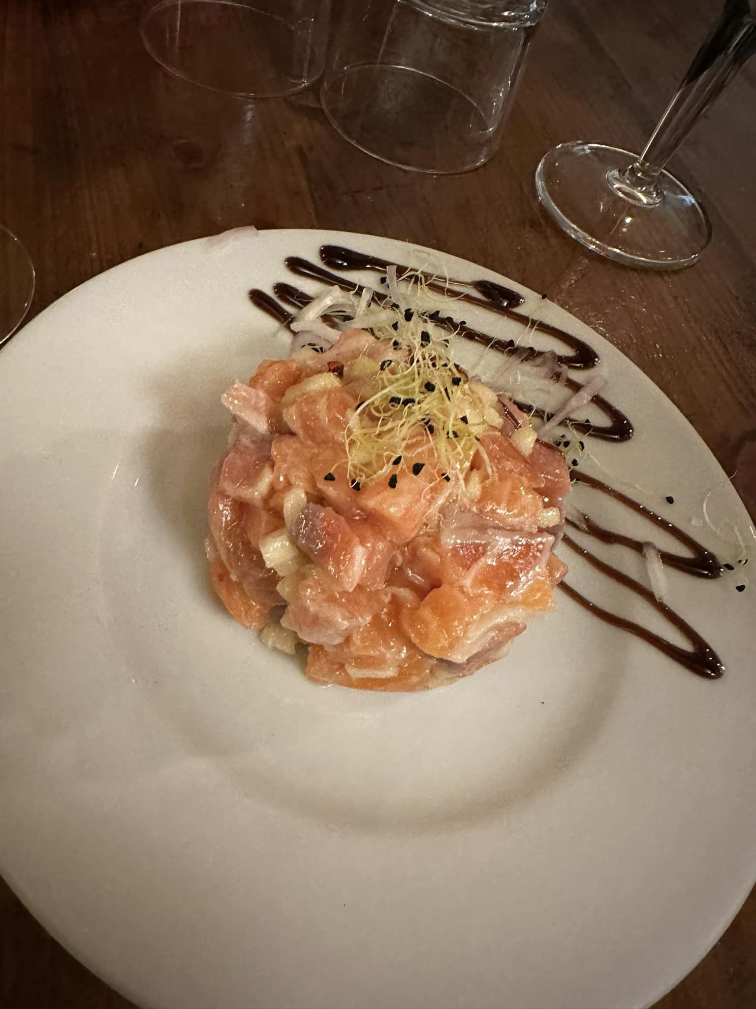 Excellente adresse On s’est régalés de leur tartare de saumon aux agrumes à 18€ avec des frites maison + mayonnaise maison également. L’endroit est très agréable : place arborée Le personnel est très agréable, souriant et serviable. ( nous y avions déjà goûté les burgers qui étaient aussi excellents)