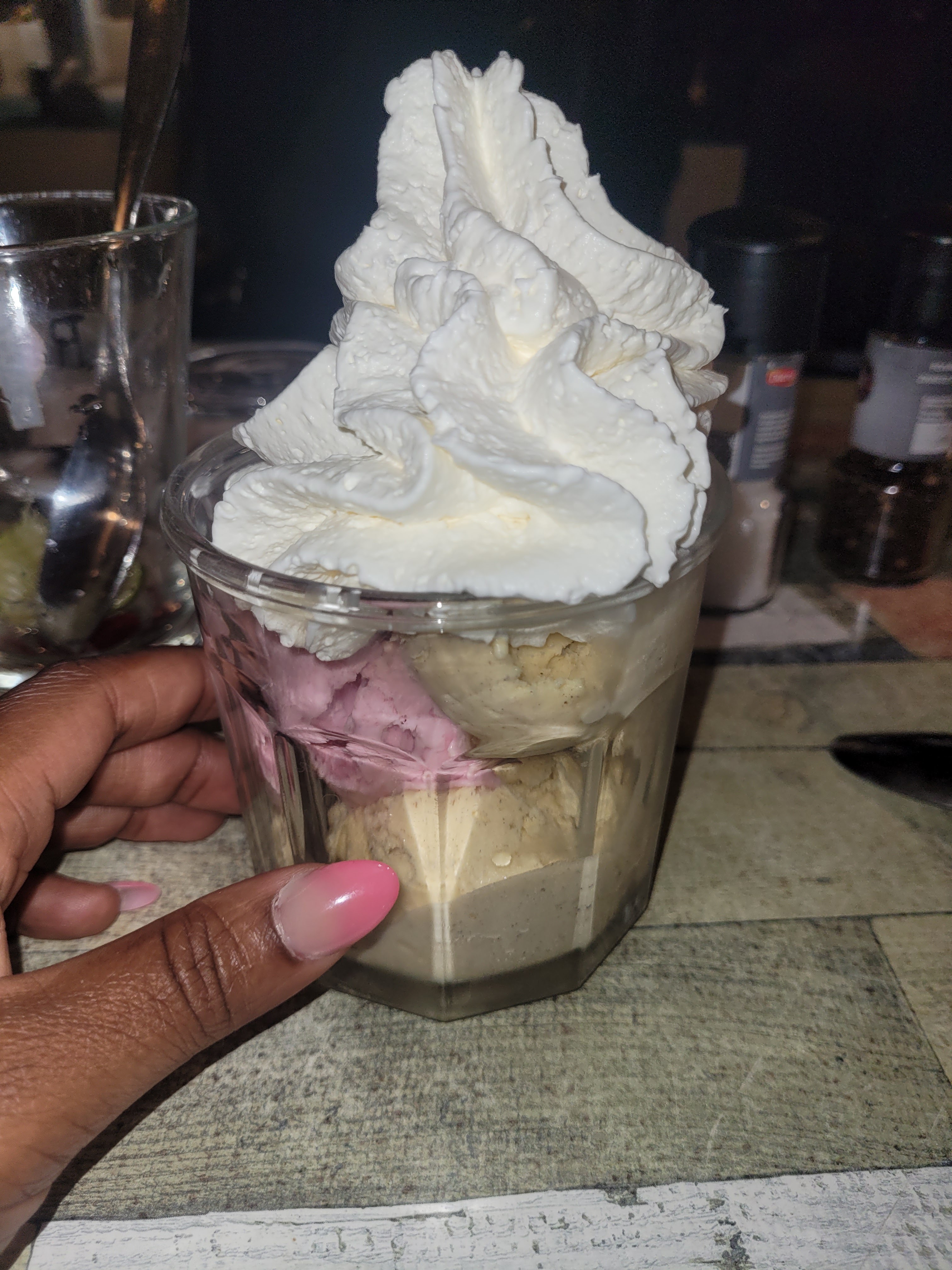 Avis mitigé. Le Burger au poulet était mais le poulet semblait sec. Toutefois, les frites étaient bonnes. Néanmoins, grosse déception sur la Dame Blanche. Trop de coulis de chocolat et celle-ci n'a pas été servi dans une coupe. Donc avis passable