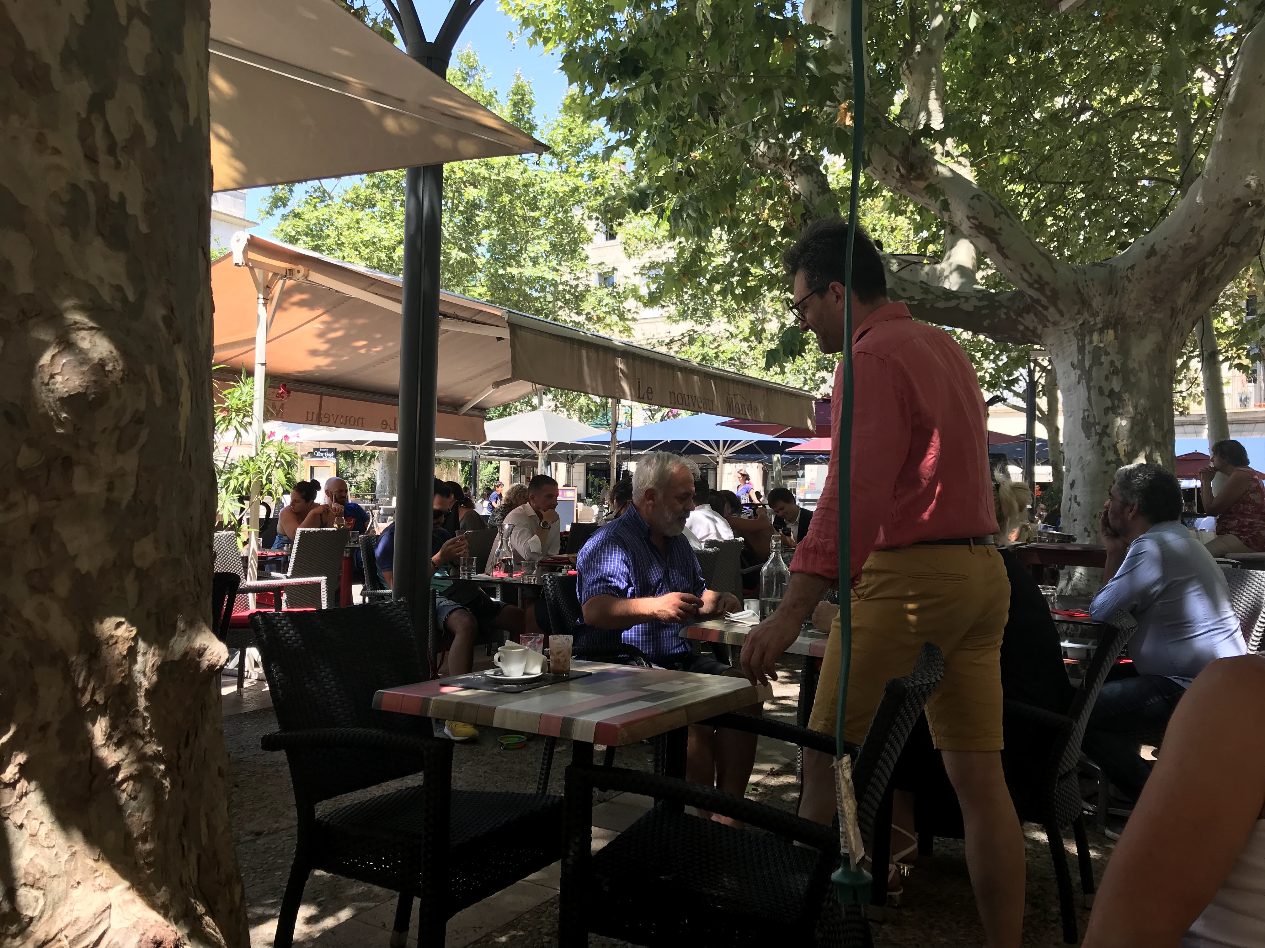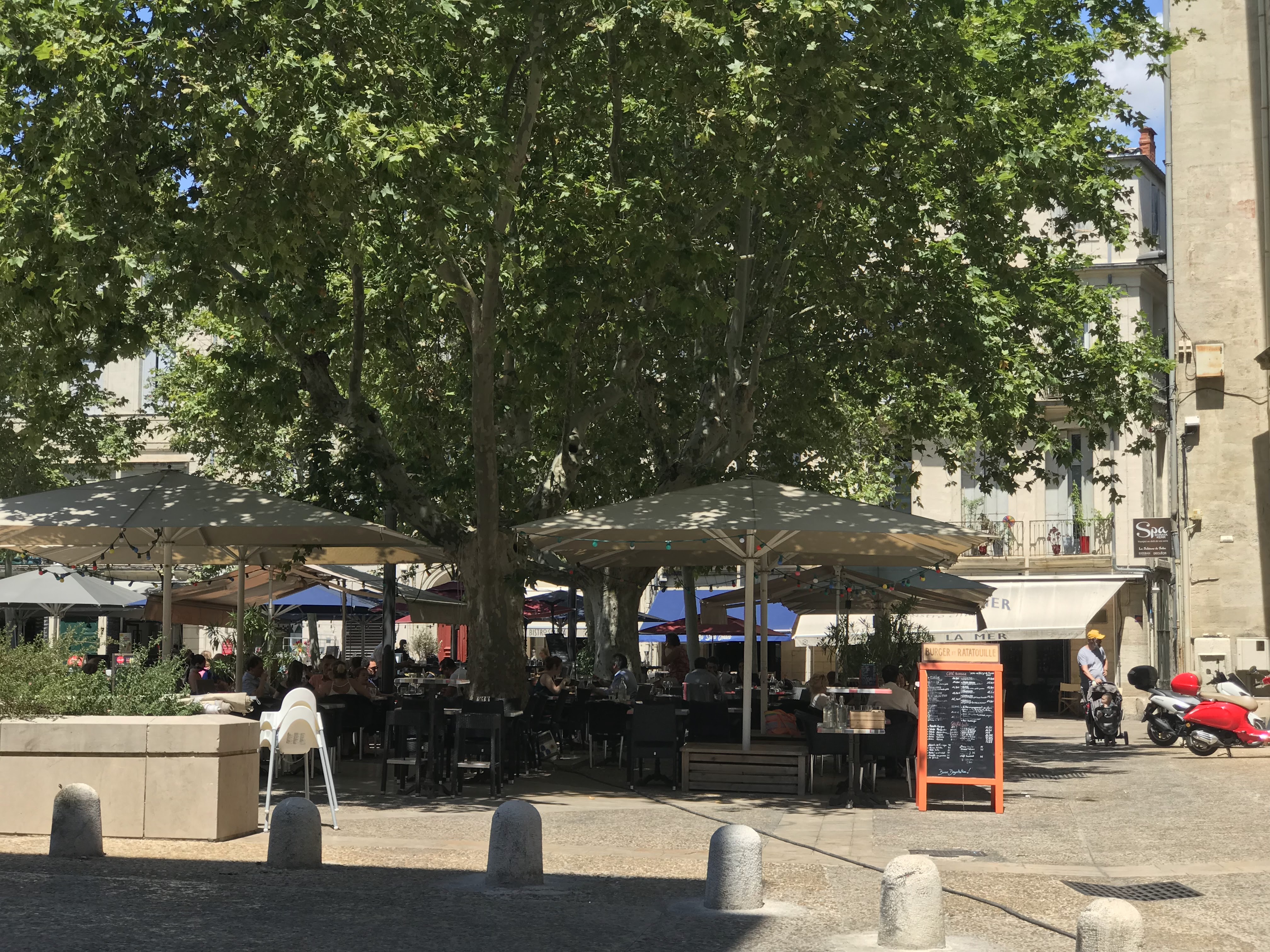 Terrasse idéalement située sur la place du marché aux fleurs, au calme et au frais ! La carte est variée, les burgers et les plats sont bons et originaux. La ratatouille est excellente. Le service est rapide et le personnel est gentil et attentionné !