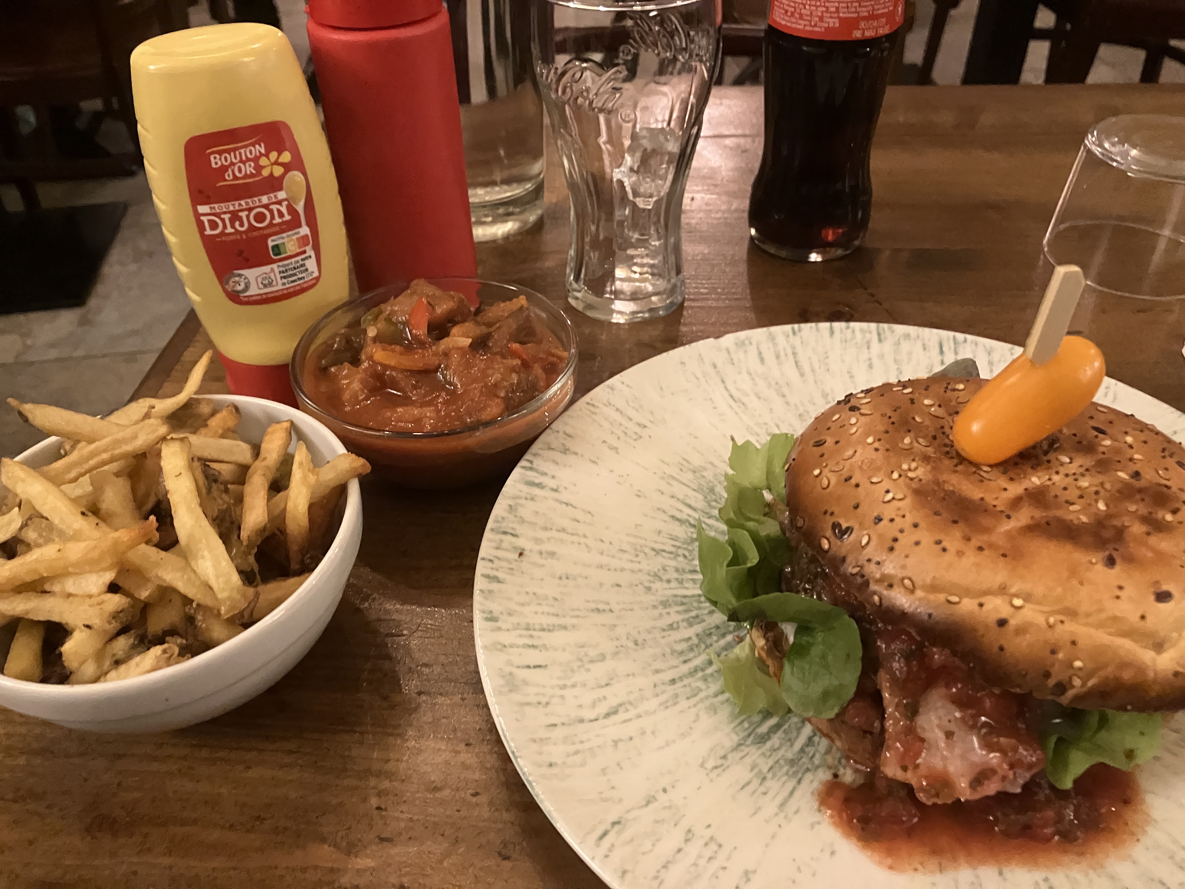 Les burgers sont toujours aussi originaux, délicieux et monstrueusement impressionnant ! Prendre la ratatouille en accompagnement c’est surprenant mais si bon ! Gros gourmand que je suis je m’en suis pris deux le cevelo et alpin !!! Des merveilles dans un cadre petit, sympathique et une disposition autour de banquettes en bois et coussins fort confortables!