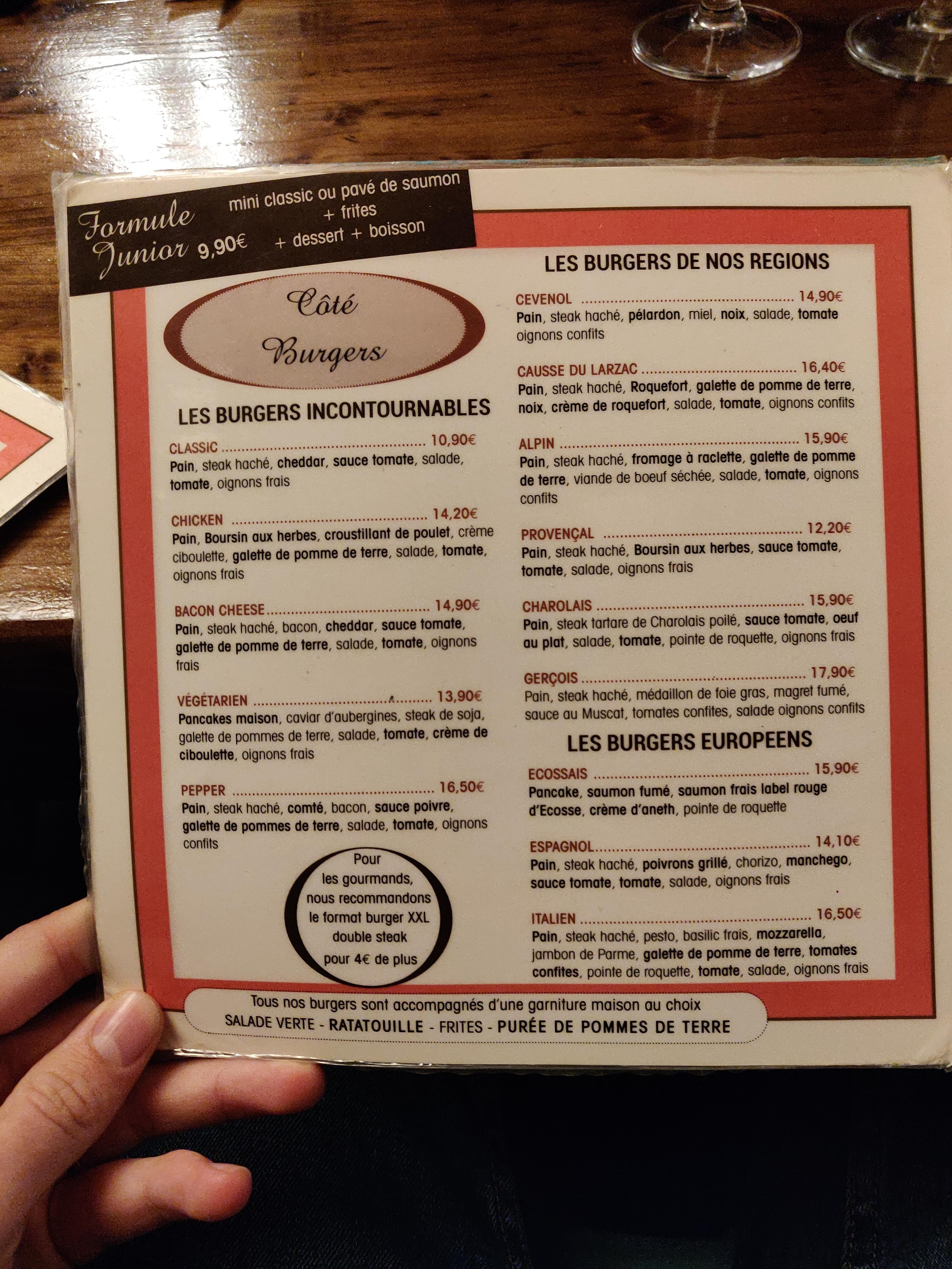 Très bon burger Le Normand avec plein de goût, un peu déçue par Le Savoyard ça manquait de puissance, très bonnes les frites. Bien que beaucoup en quantité, je trouve les prix en peu élevés.