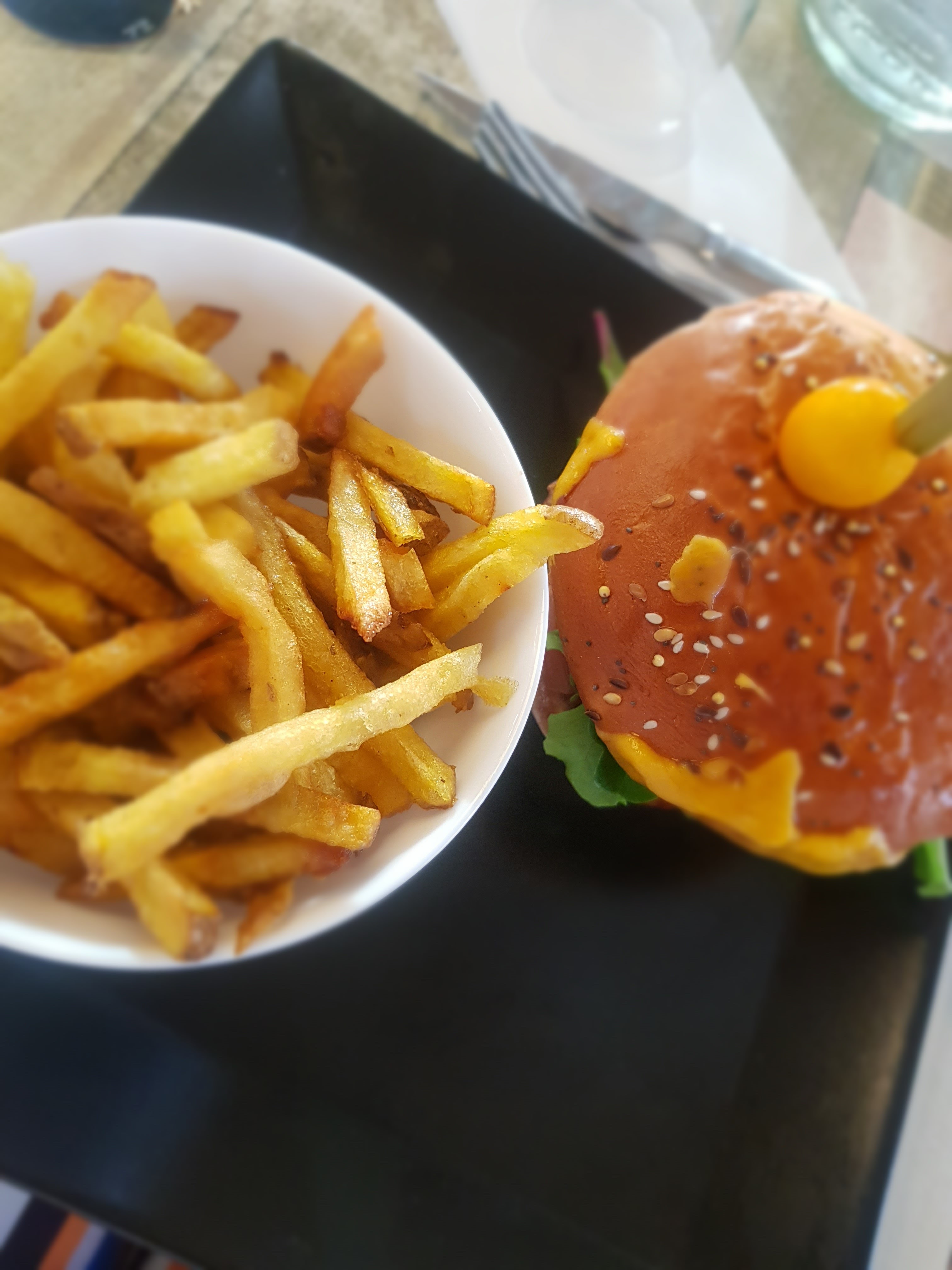 Le restaurant porte bien son nom Les burgers sont très bons. Le choix est très varié et original et des accompagnements de qualité. Le menu plat dessert même le soir et le week-end est un bon rapport qualité prix Cependant petit bémol le colis chocolat de la dame blanche n’est pas très très bon. Je vous recommande tout de même ce chouette restau ! (Terrasse en haute saison)