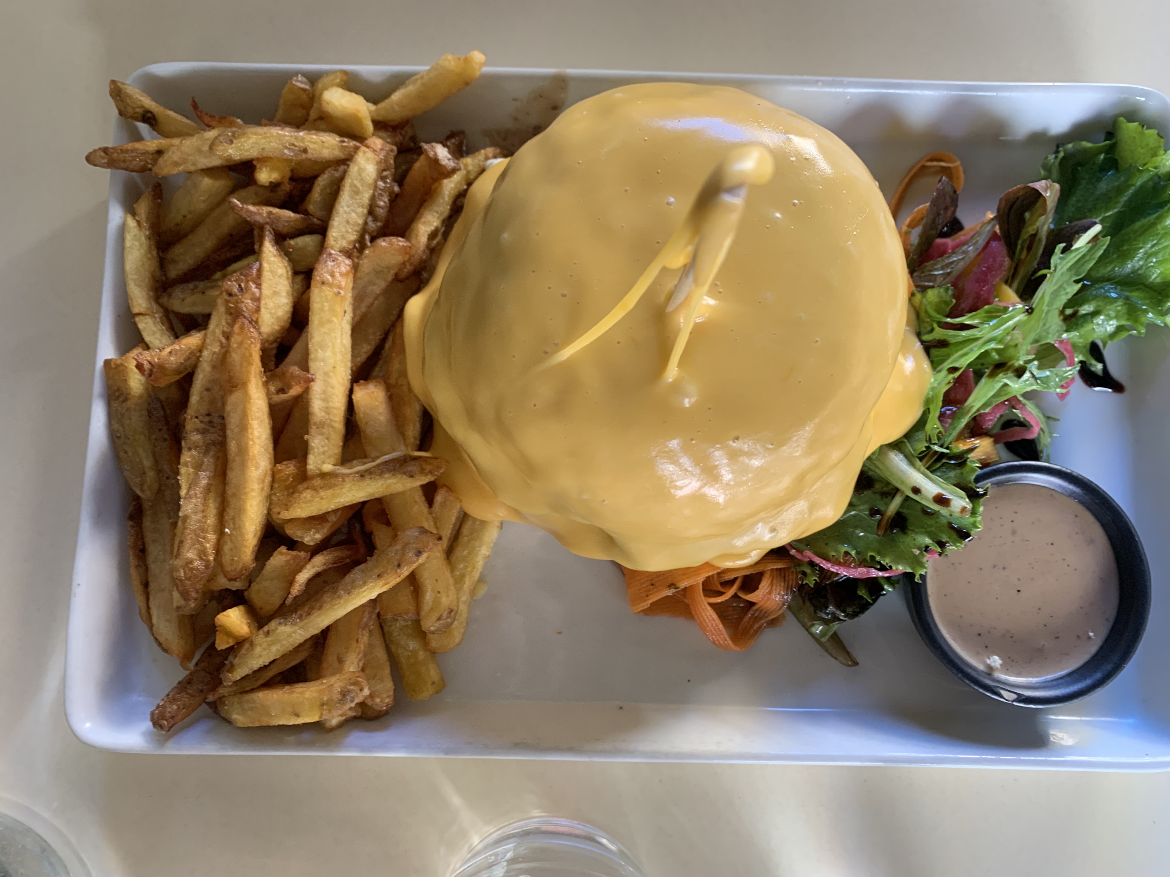 Meilleur burger végétarien que j'ai manger depuis longtemps !!!! Super agréable d'être en terrasse au soleil 😁