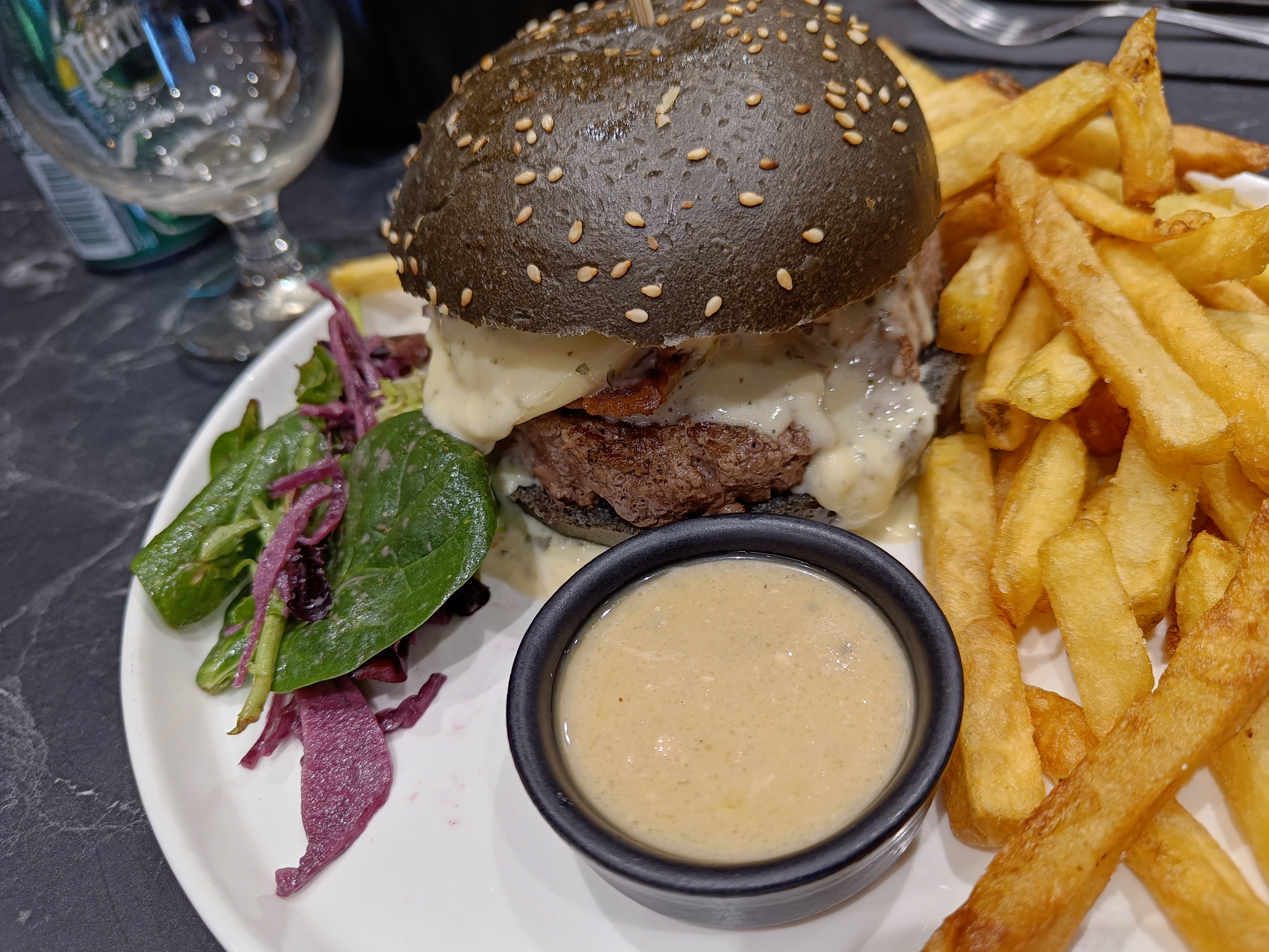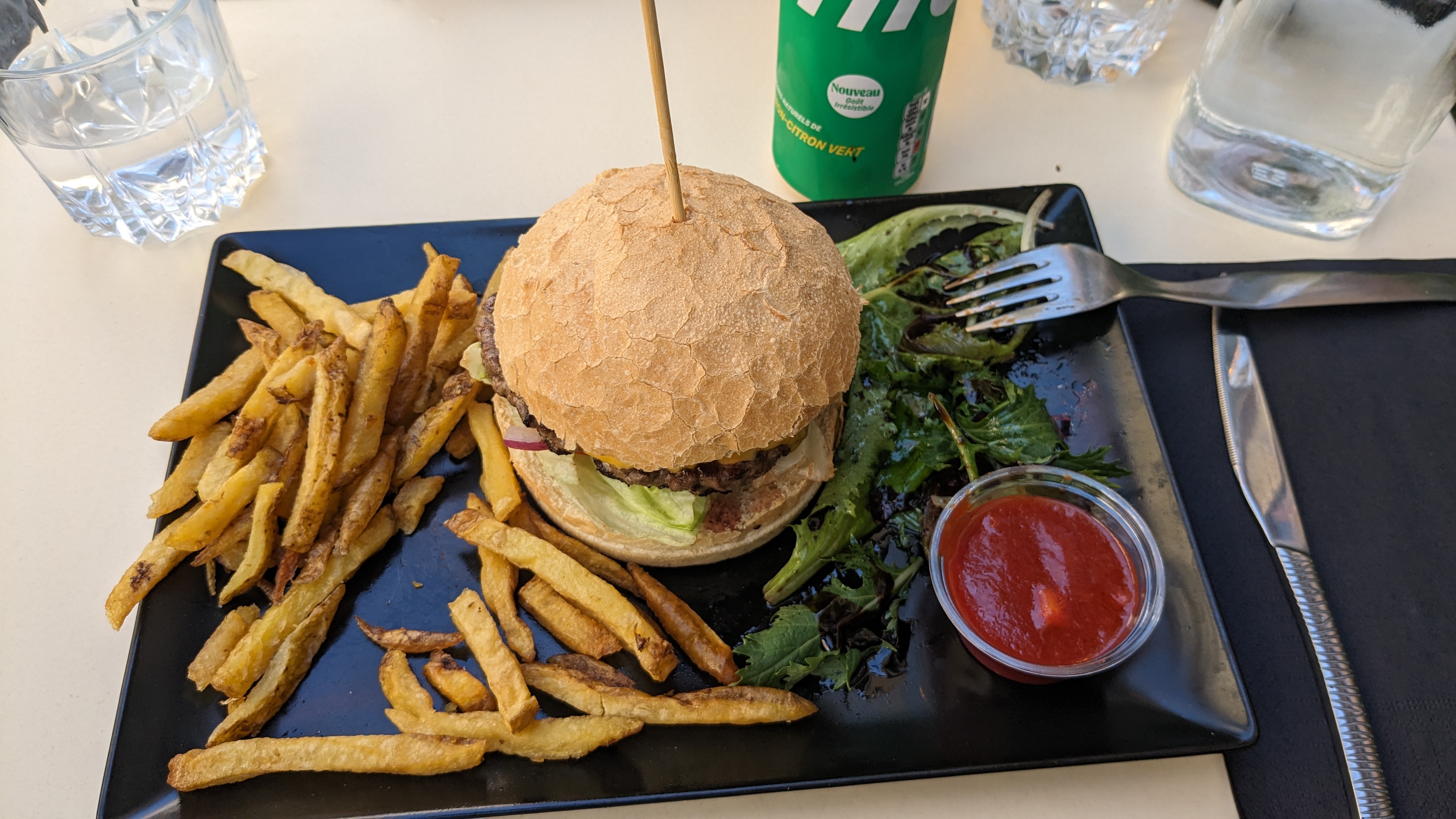 C’était bon mais dommage que nous ayons croisé le restaurant à Intermarché acheter le pain « frais », les steaks congelés et la sauce « maison »