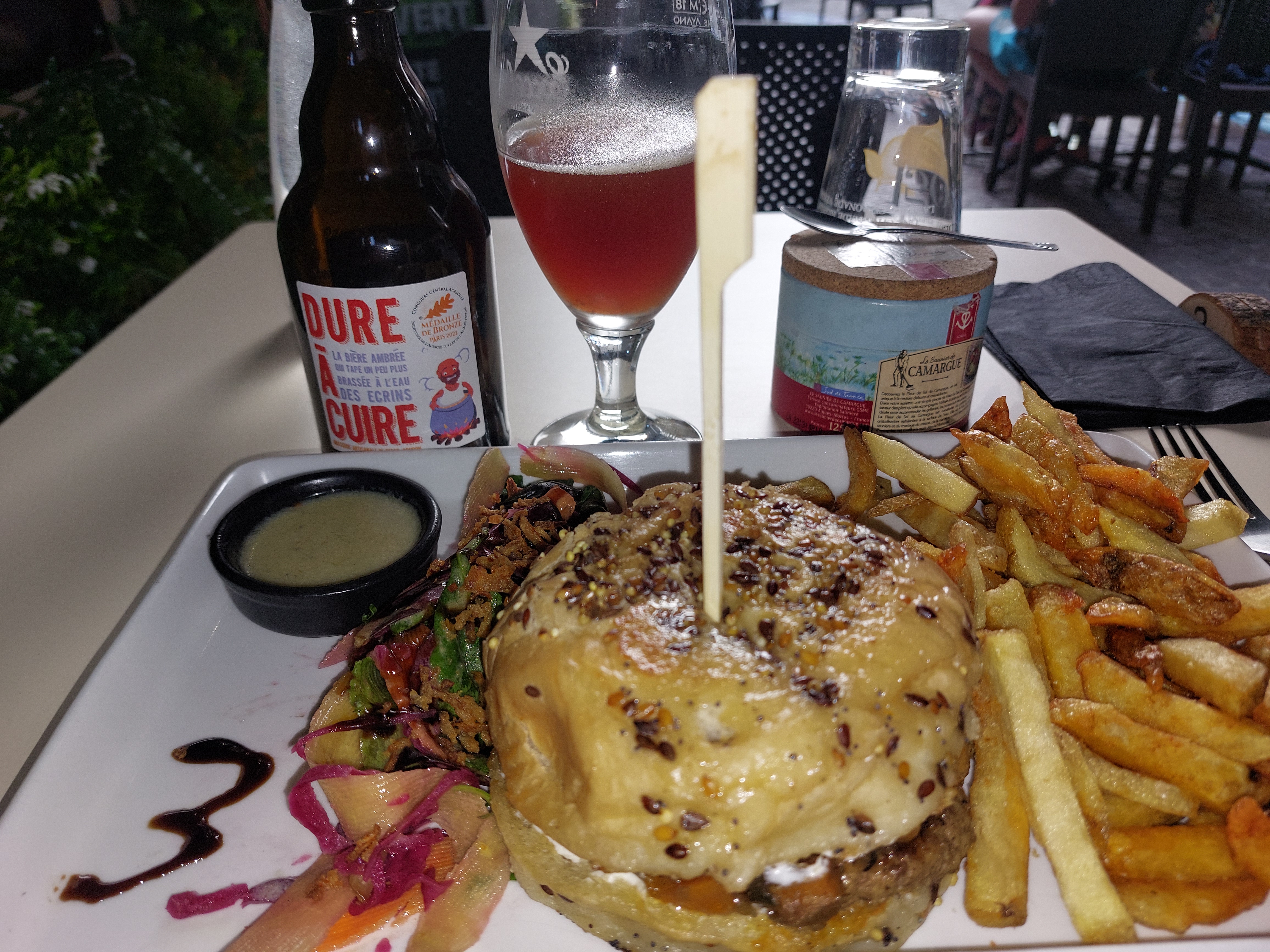 Pas le meilleur burger de ma vie. Points positifs : frites maison et bière locale