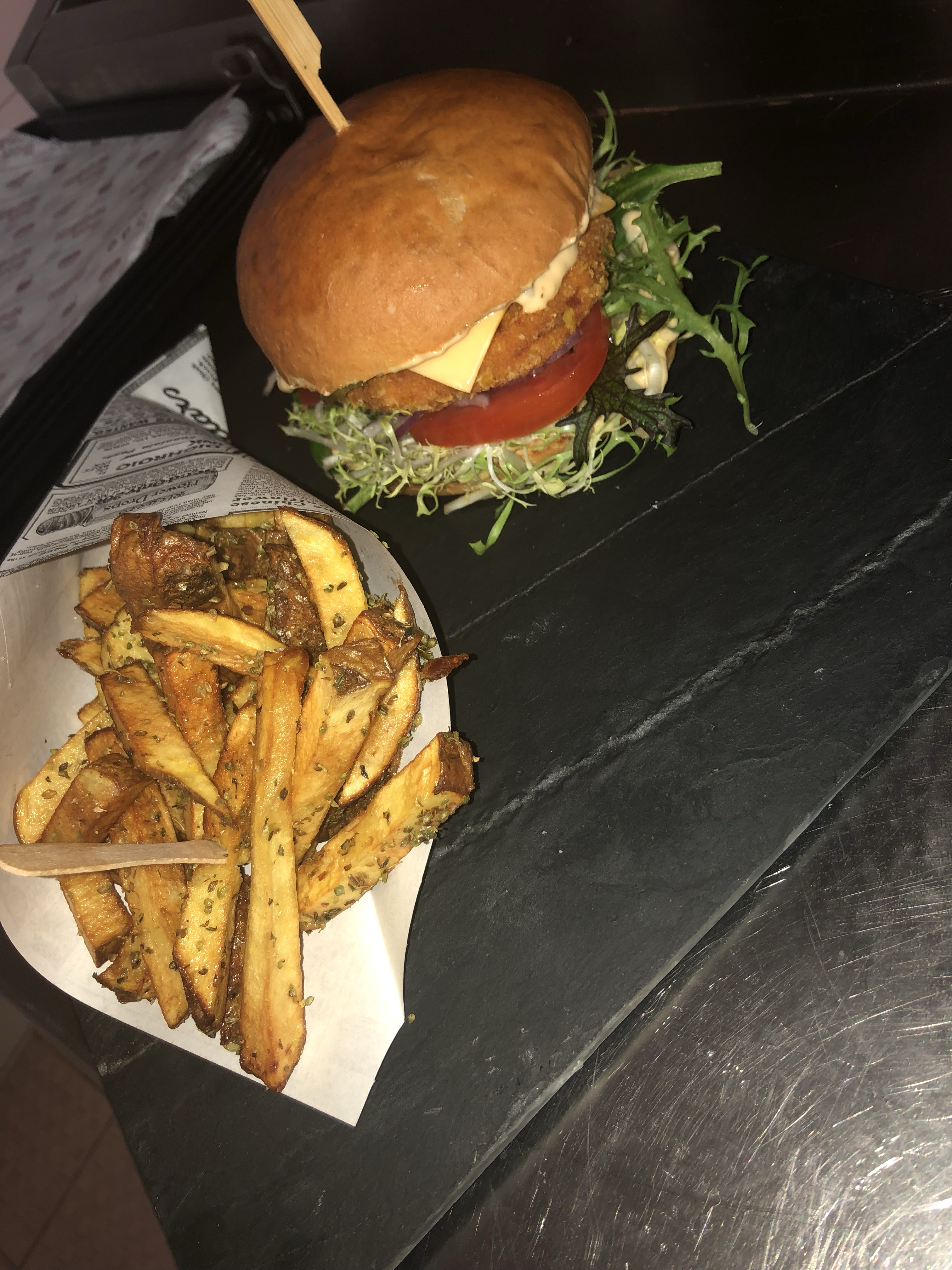 Un très bon moment passé avec ma maman. Frites maison avec herbes de provence sélicieuses, burger succulent , personnel accueillant. Merci !
