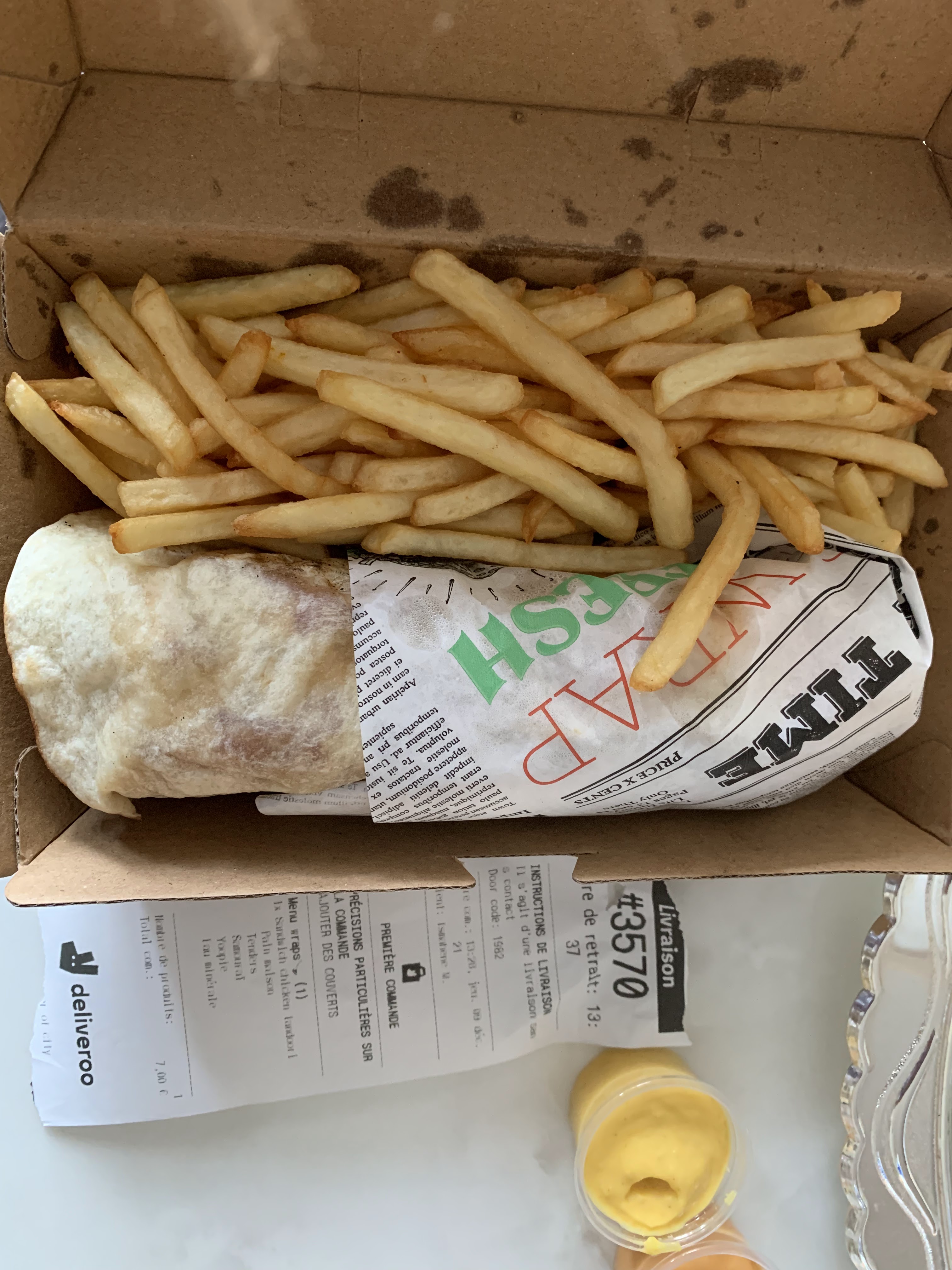 J’ai manger un sandwichs poulet tandoori c’est très bon mais j’ai mis tenders mais les frites était froid dommage