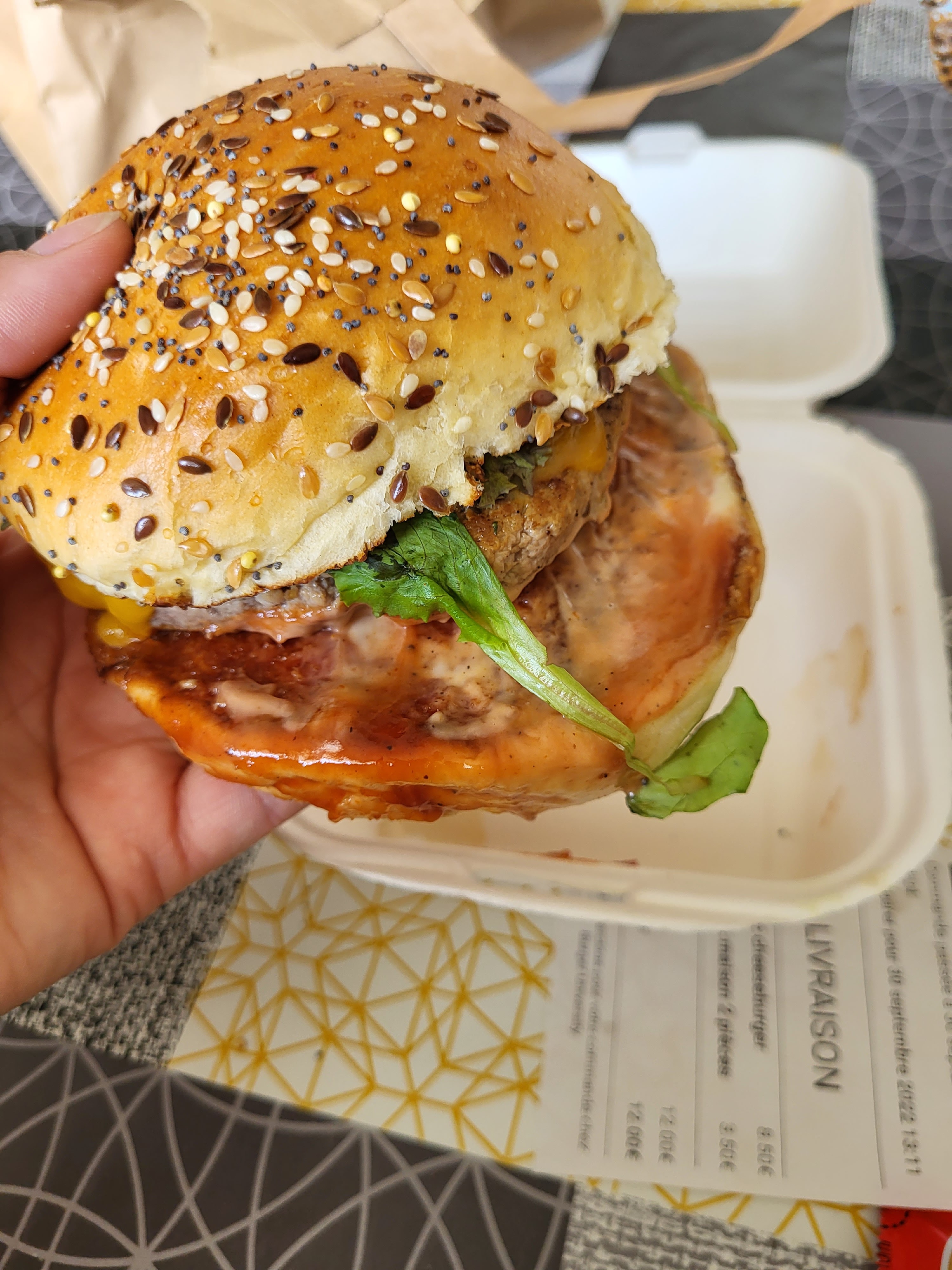 Burger bcbg très très bon, bien garni, les frites sont délicieuses et la livraison just eat est très très rapide ! Je recommande +++