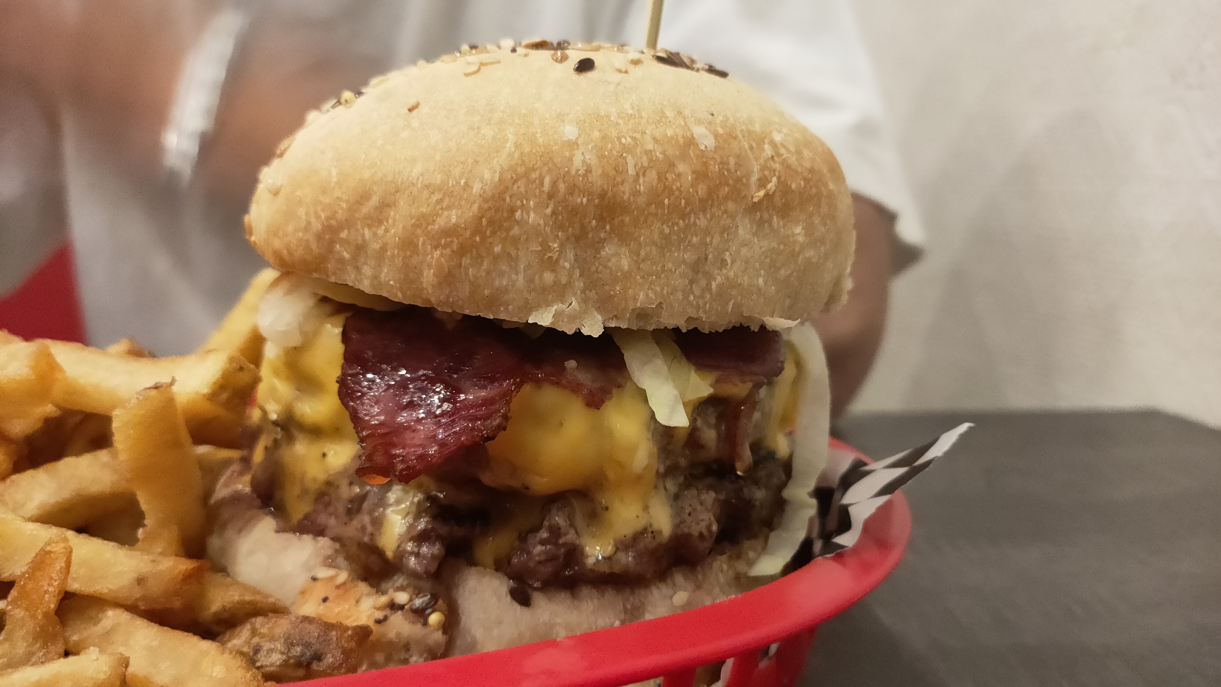 Superbe ambiance ! Personnels très agréable et souriant, portion de frite généreuse et rapidité extrême ! Le burger Bacon + oignon confit combo parfait :) Merci de votre accueil