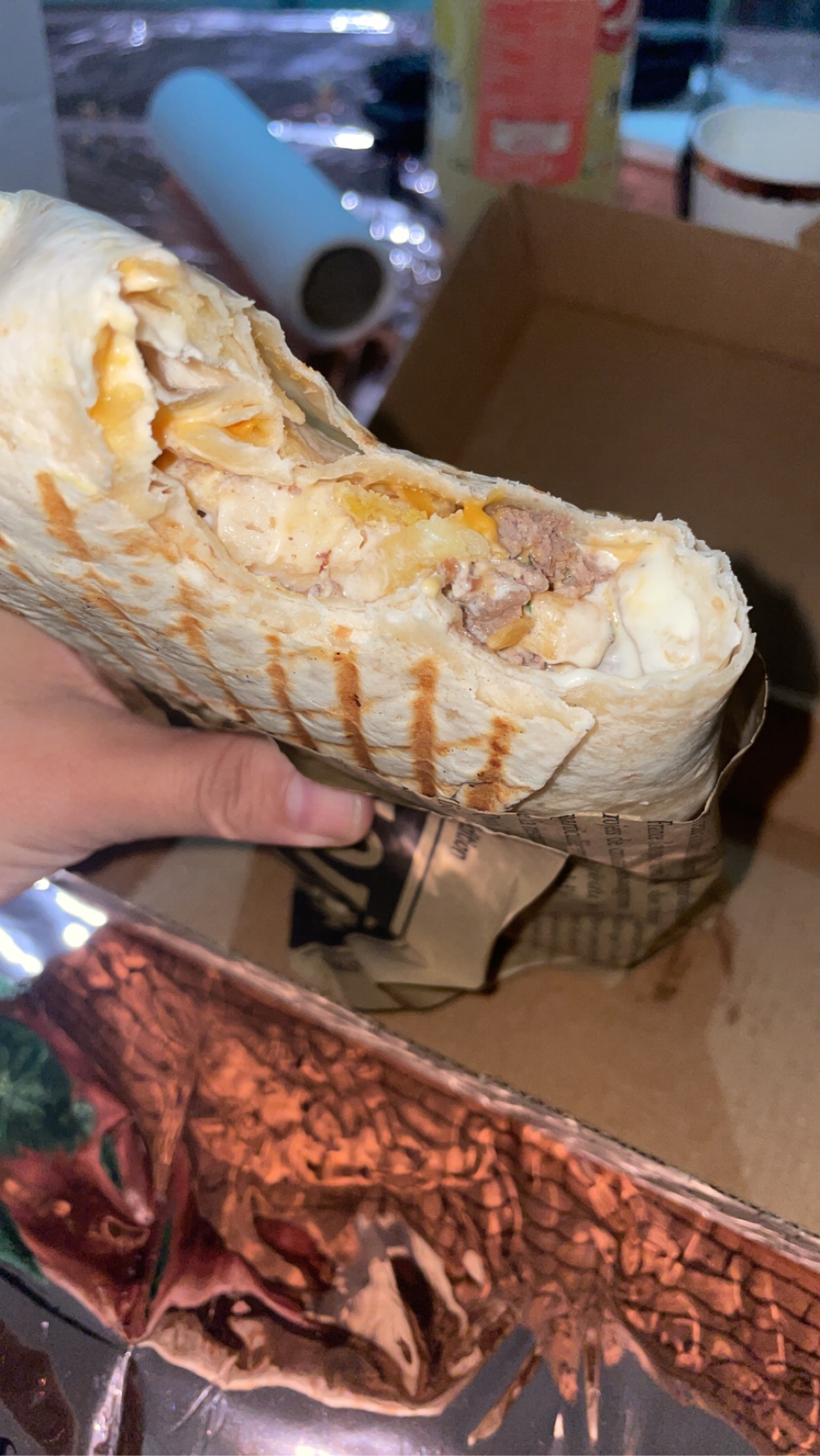 Le tacos sauce boursin est royal👌 on dirait que c'est même plus léger à manger. Le lieu est quand même petit comparé à l'affluence de clients.