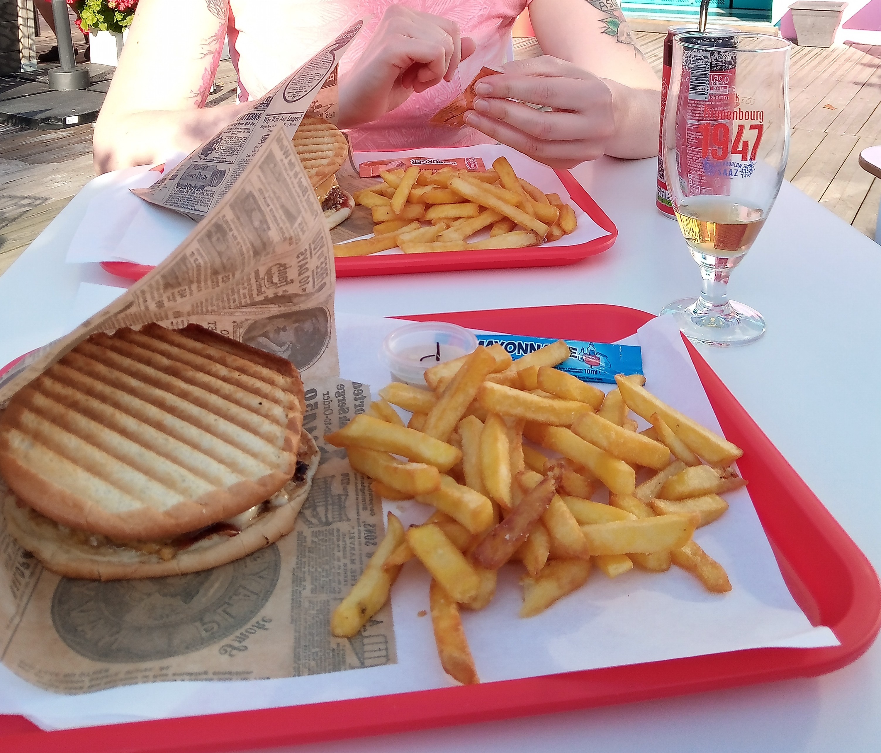 Moment sympathique sur la terrasse ensoleillée, burger excellent 🤩👍 Et équipe dynamique et accueillante . Bientôt L Mld
