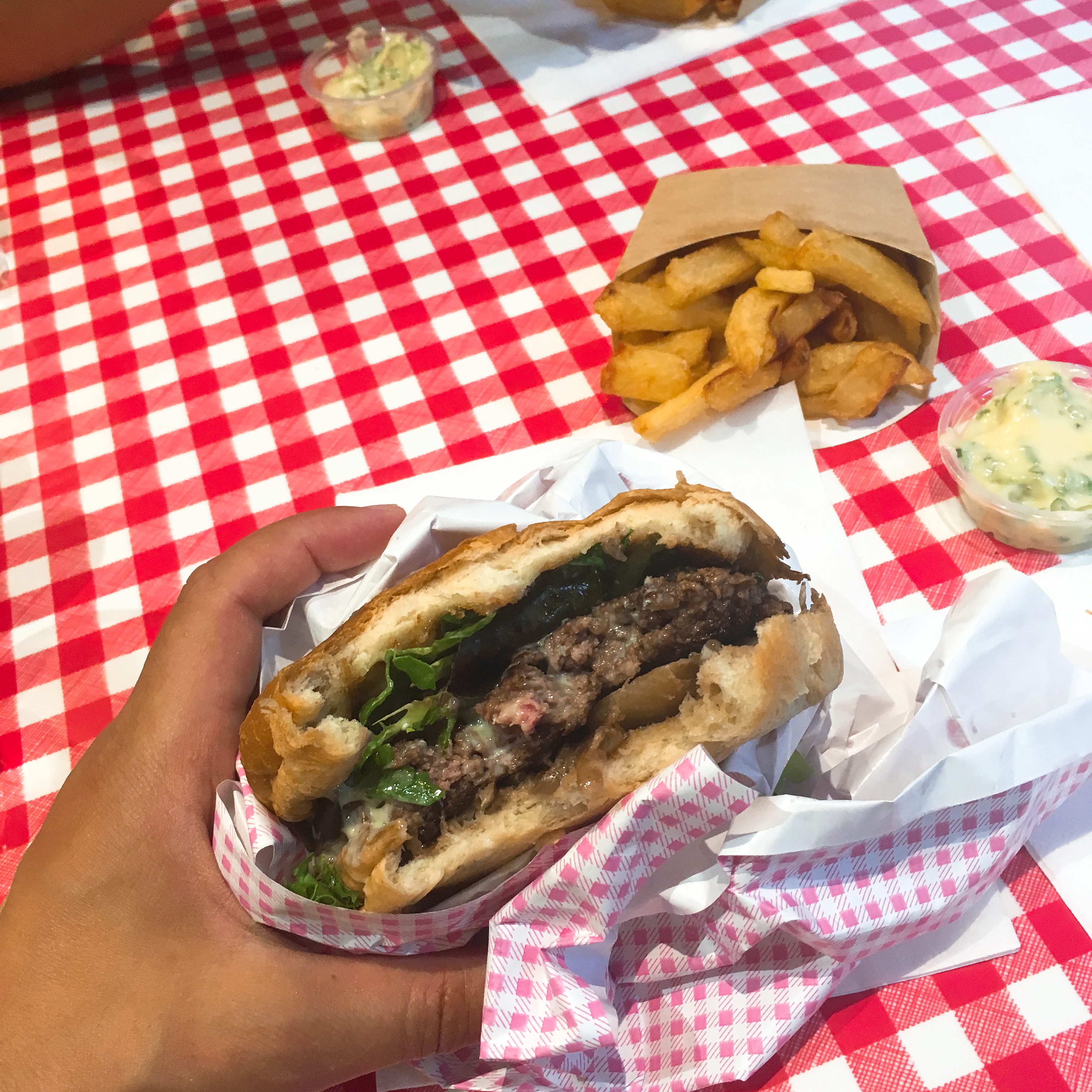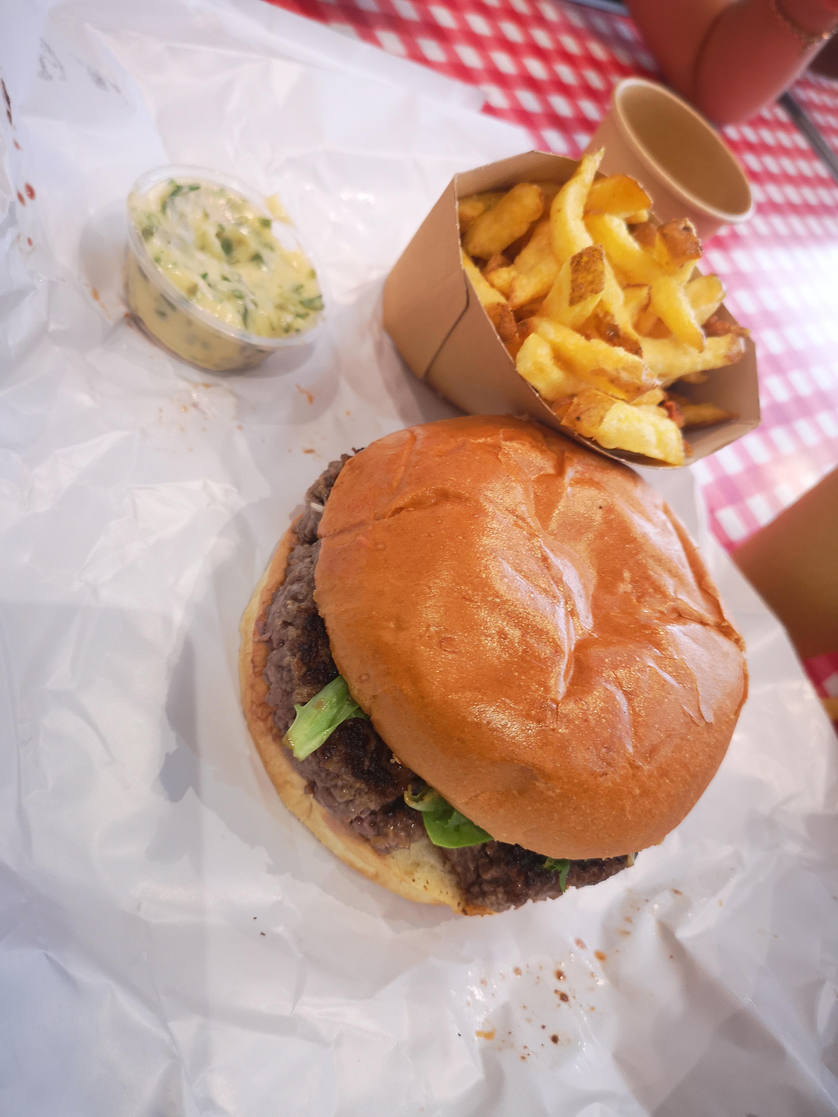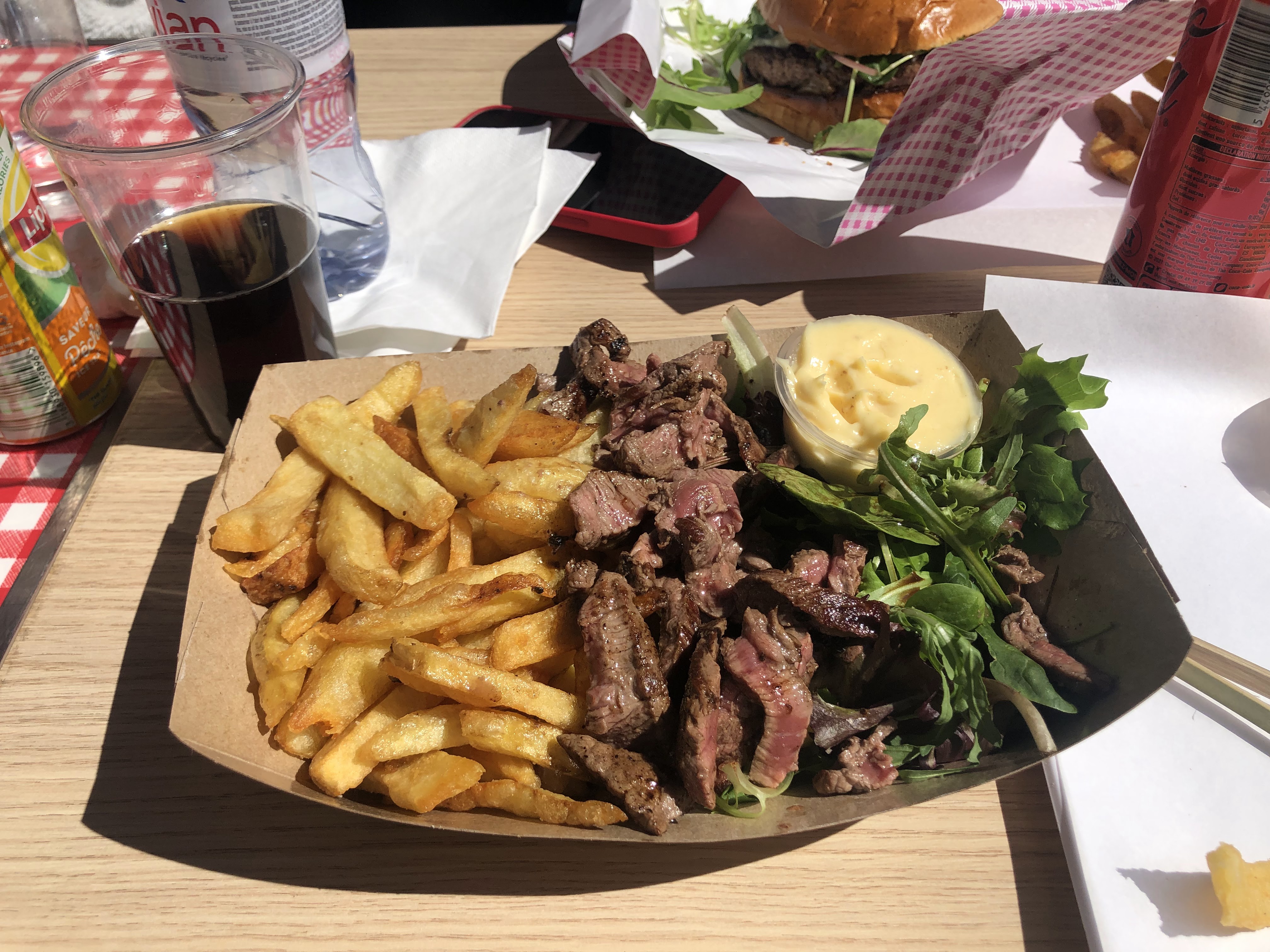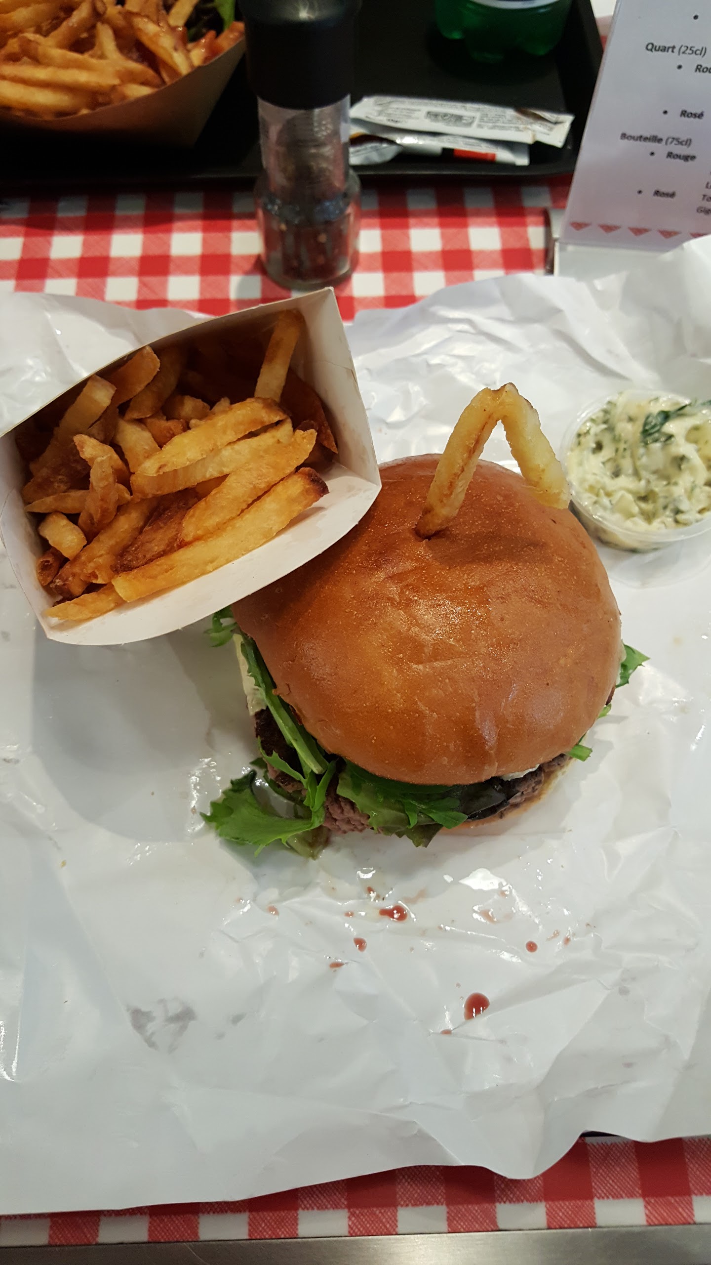 Tout était excellent : frites, burgers, sauce maison. Le tout servi avec le sourire 🙂