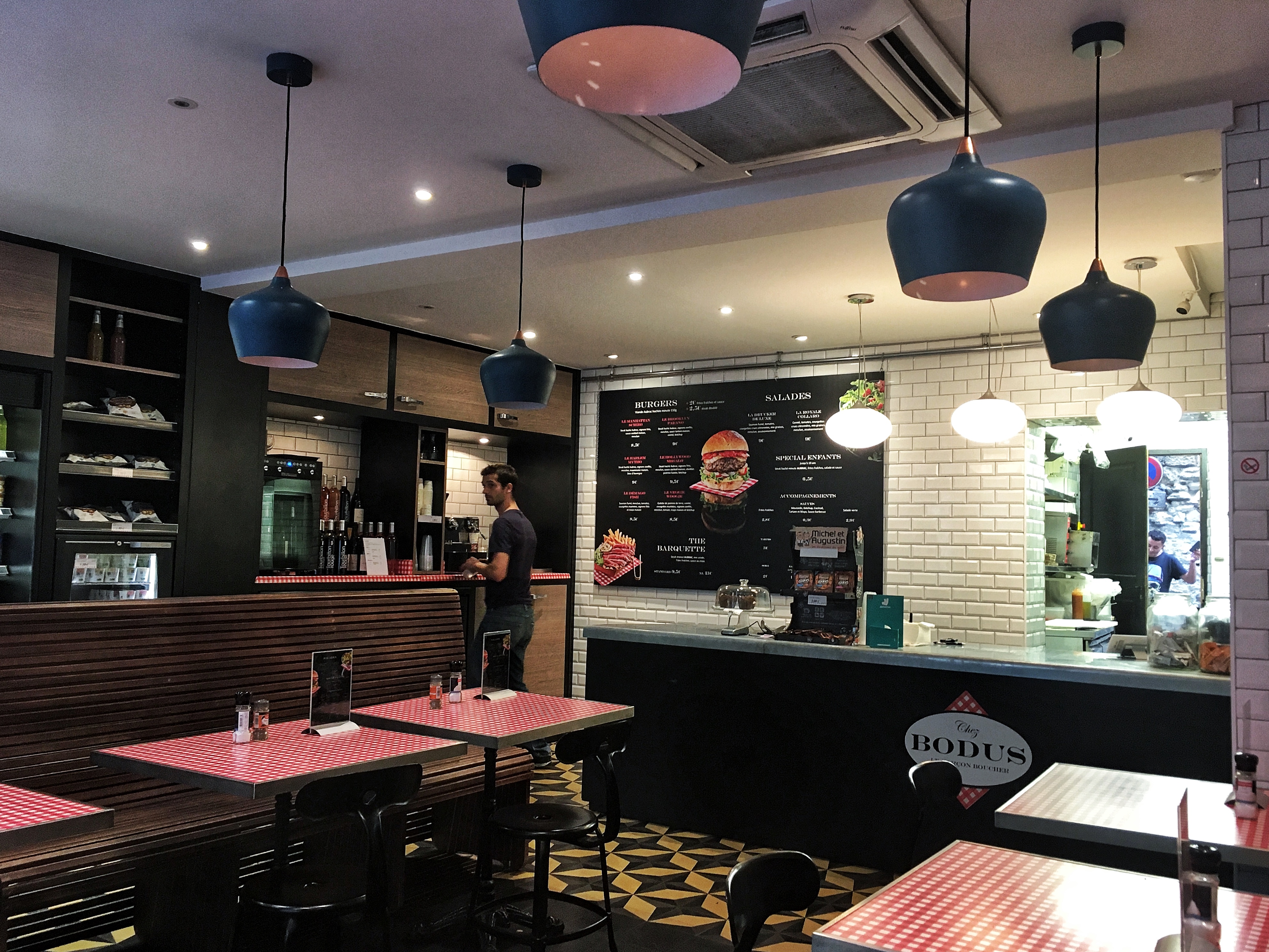 On ne va pas chez Bodus pour l'ambiance qui est calme et reposante mais pour le service adorable de l'équipe et pour les fantastiques hamburgers. C'est l'un des seuls à m'avoir réconcilié avec le Burger. Le niveau est vraiment terrible, la viande délicieuse. La barquette de canard est à tomber et les frites sont maison.