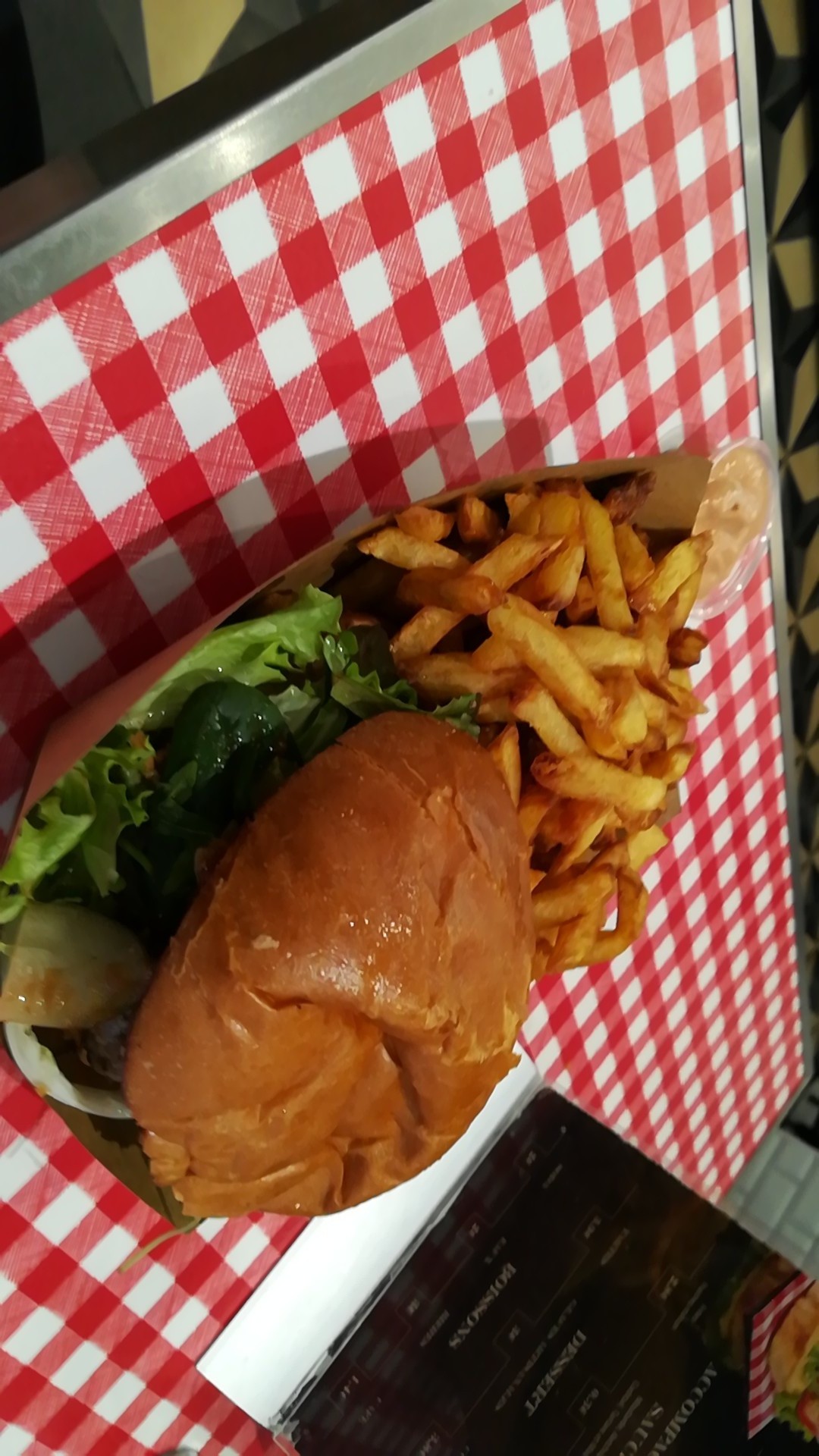 Très bons burgers et frites .la salade au saumon par contre n'était pas très copieuse et très simple.