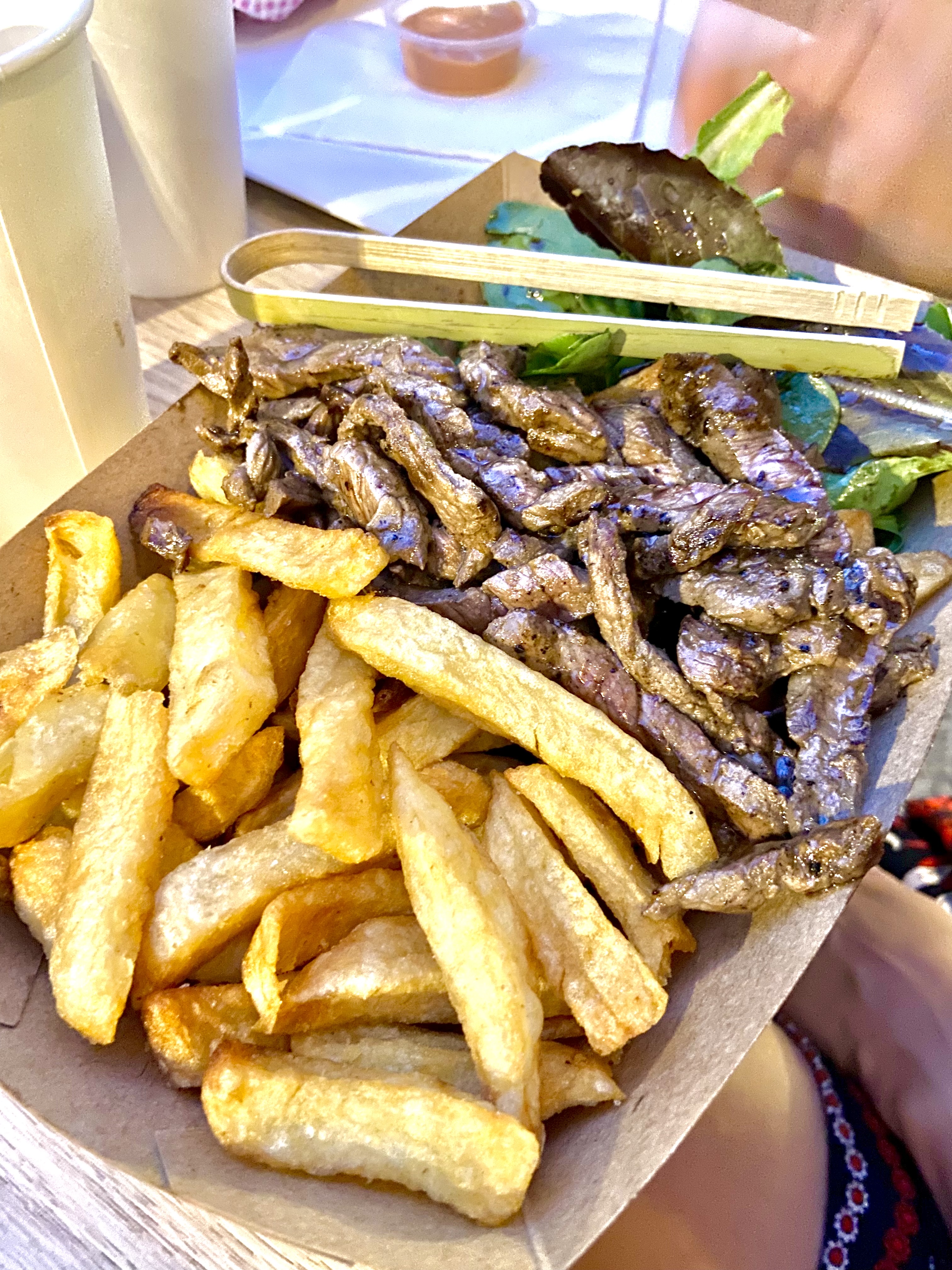 Accueil agréable et service satisfaisant surtout durant cette période de festival Cependant déçu du rapport quantité / qualité / prix. 11,5€ la barquette avec quelques morceaux de viandes c'est assez chère.