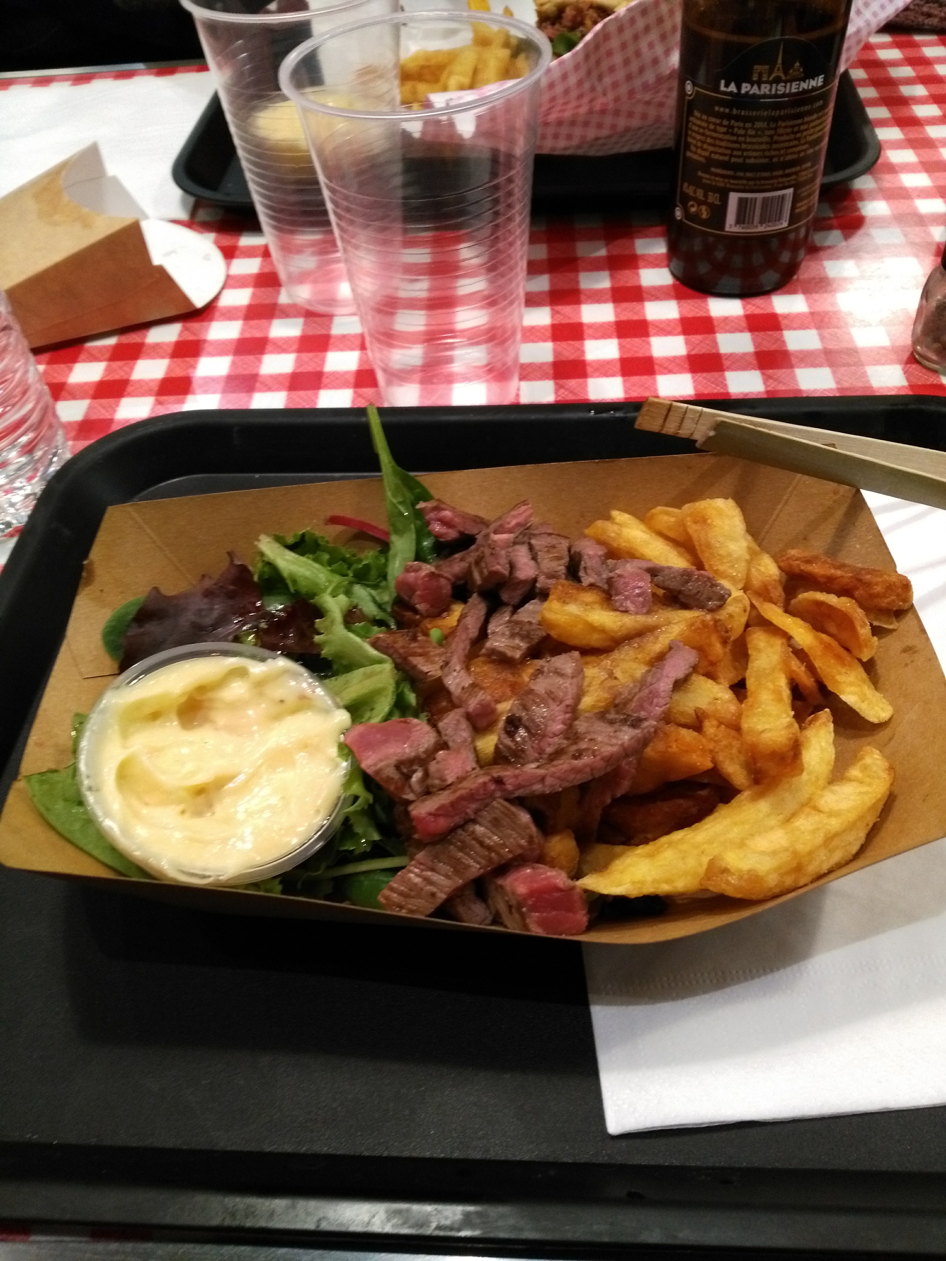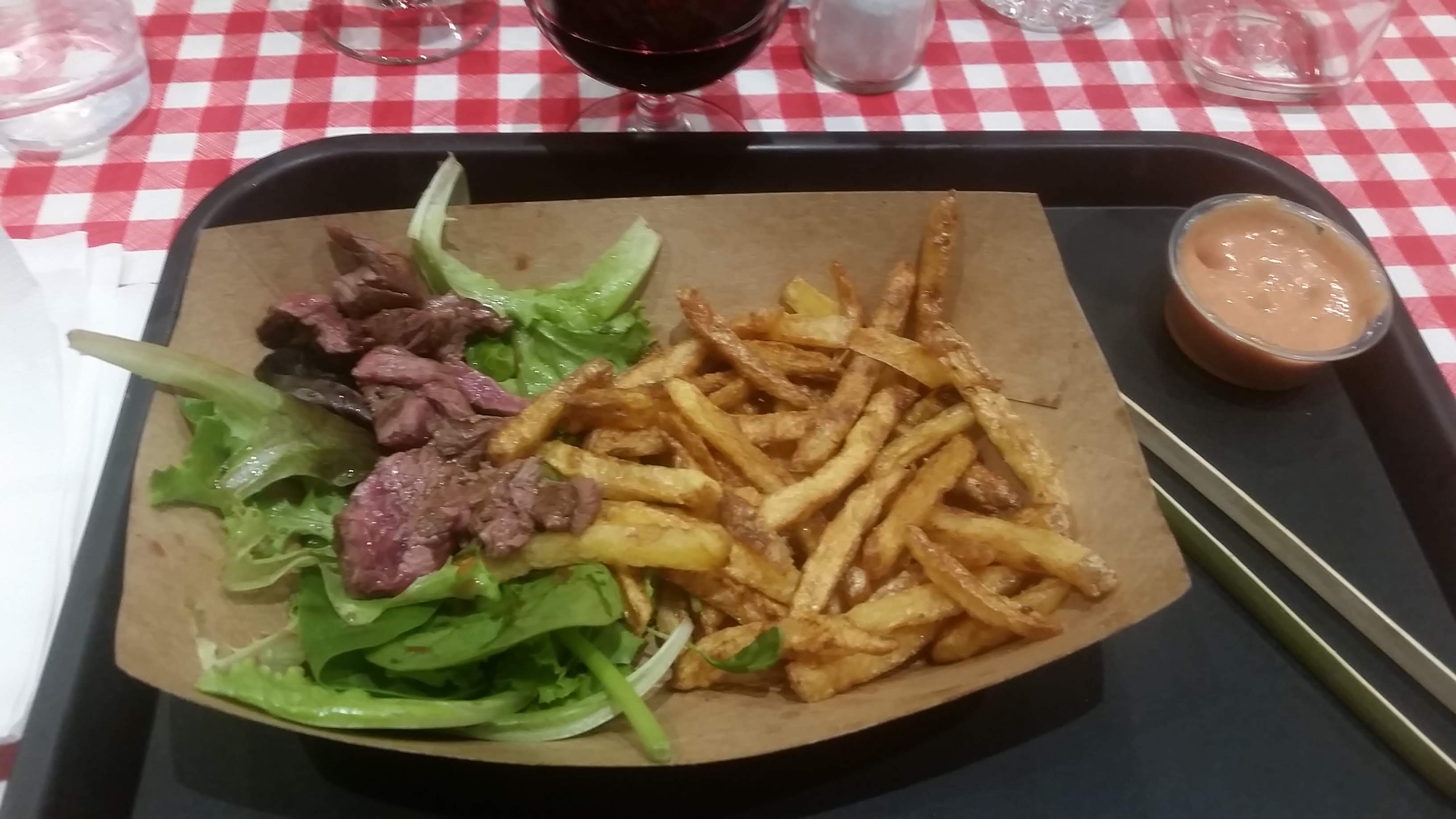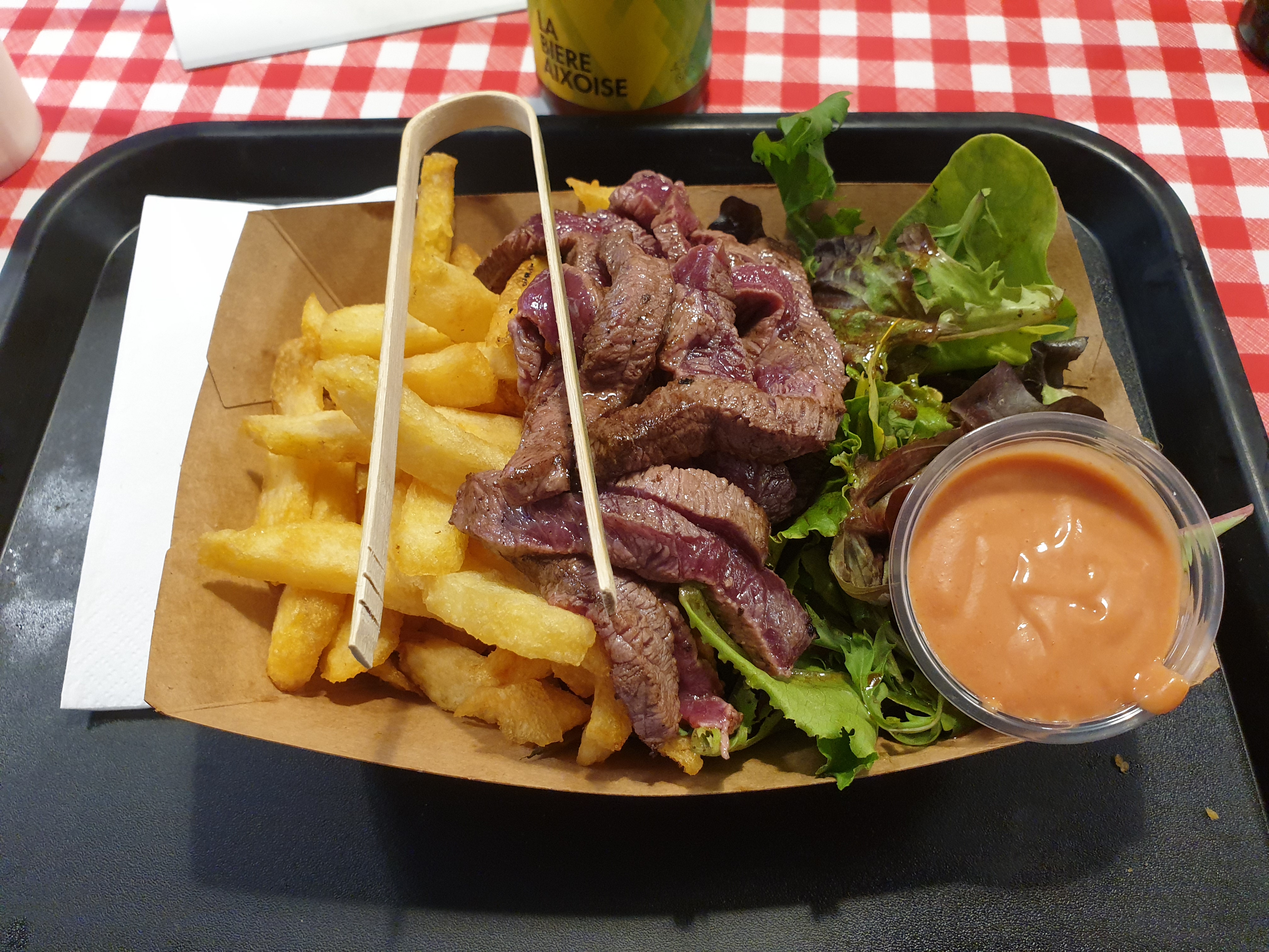 Viande et cuisson superbe, frites de bonne qualité, sauce maison sympathique ; bref, tout pour plaire ! Gros bon point pour le serveur topissime !