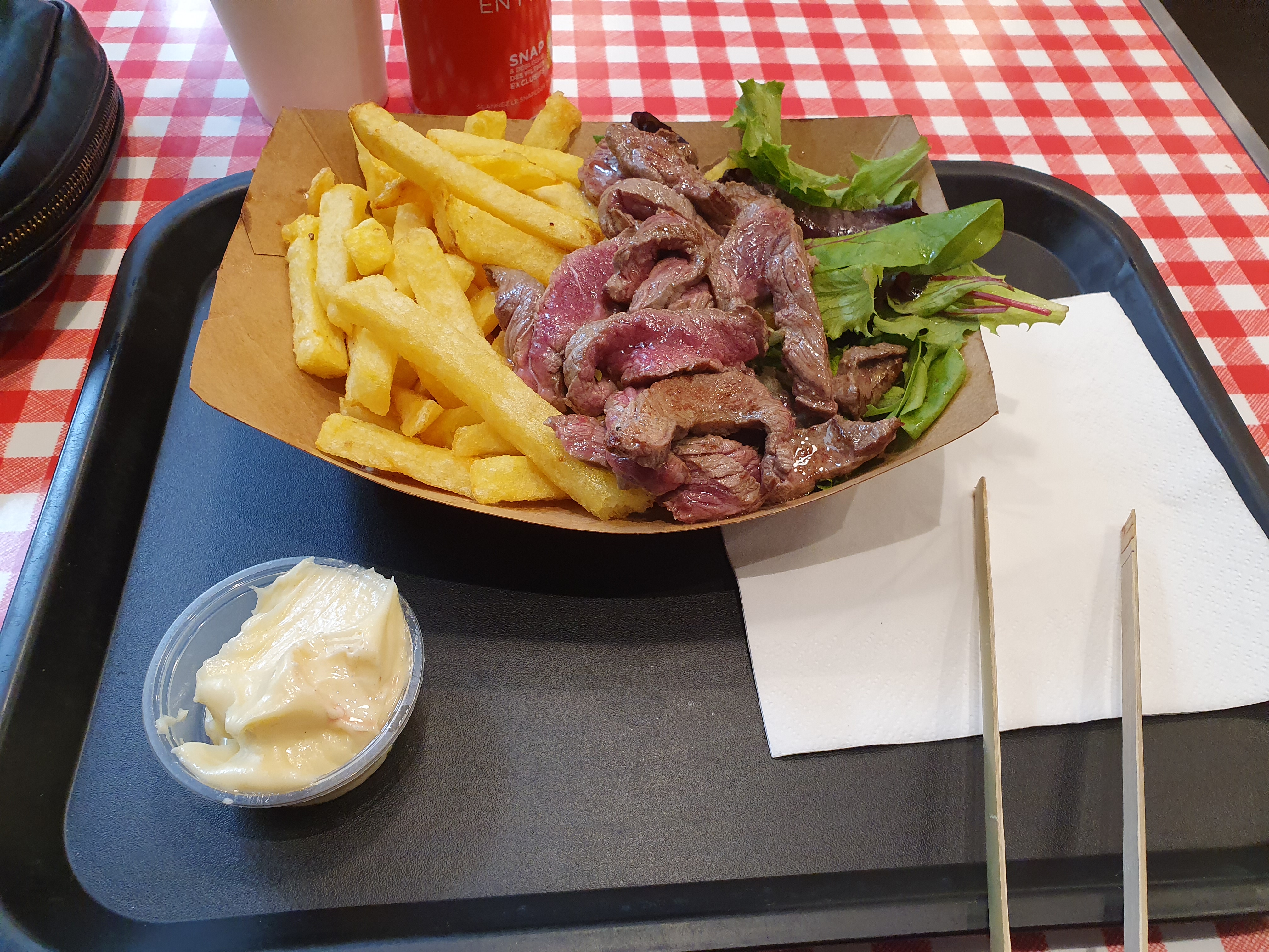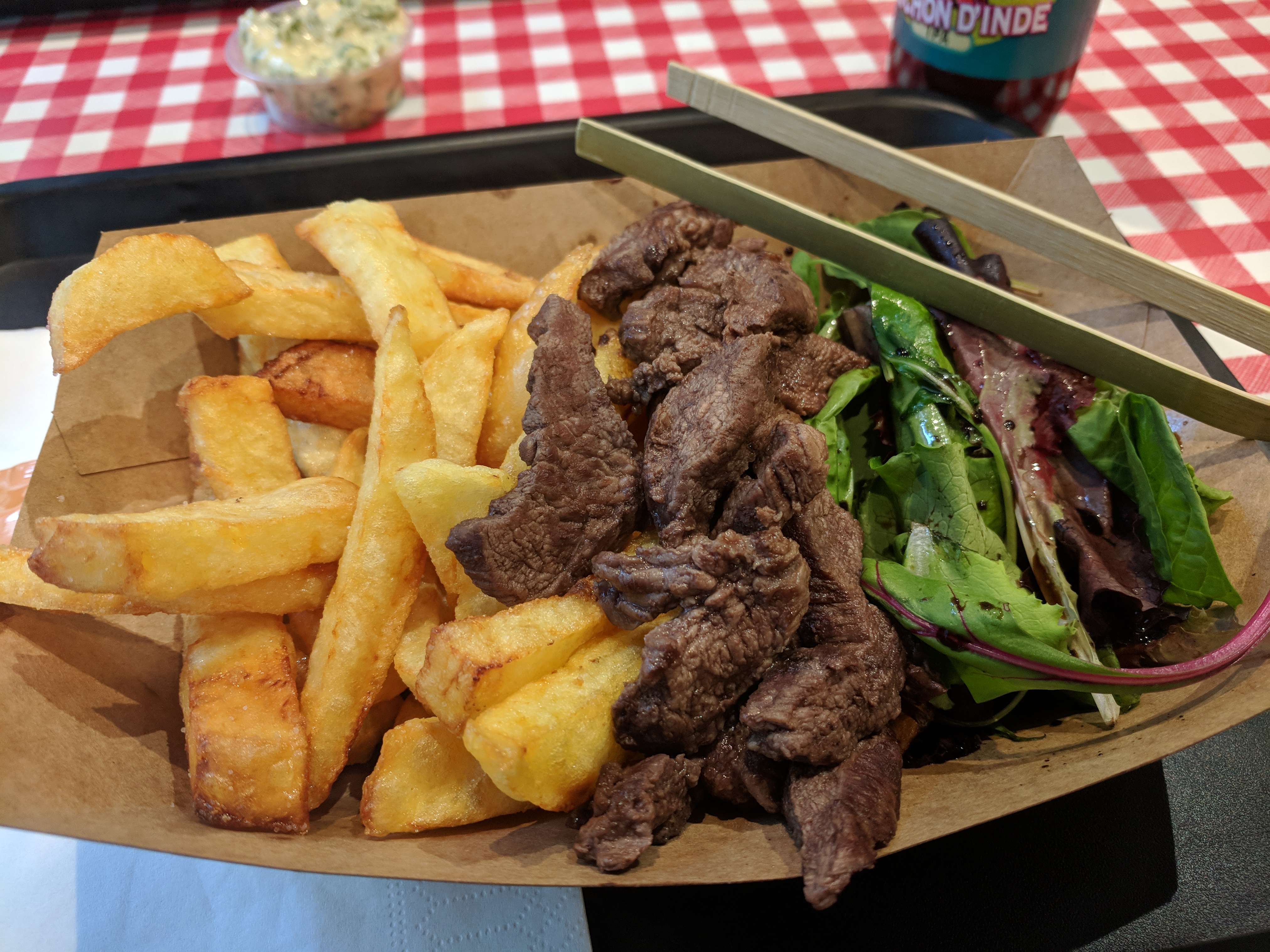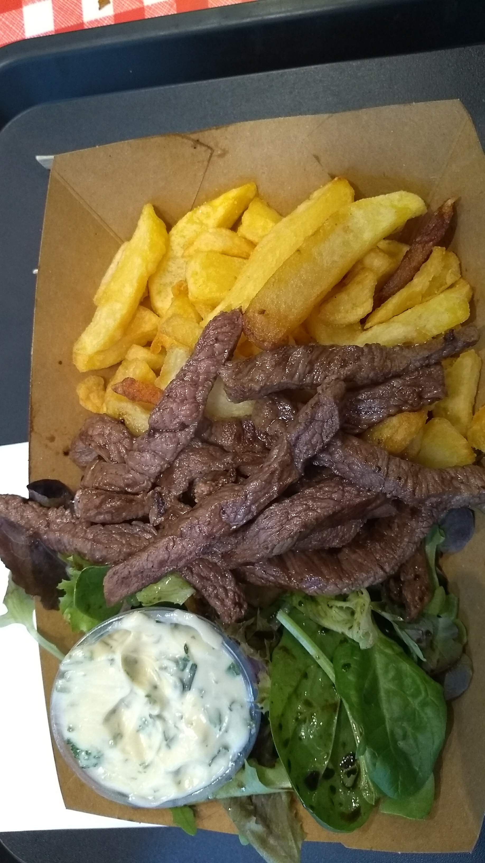 Viande et cuisson superbe, frites de bonne qualité, sauce maison sympathique ; bref, tout pour plaire ! Gros bon point pour le serveur topissime !