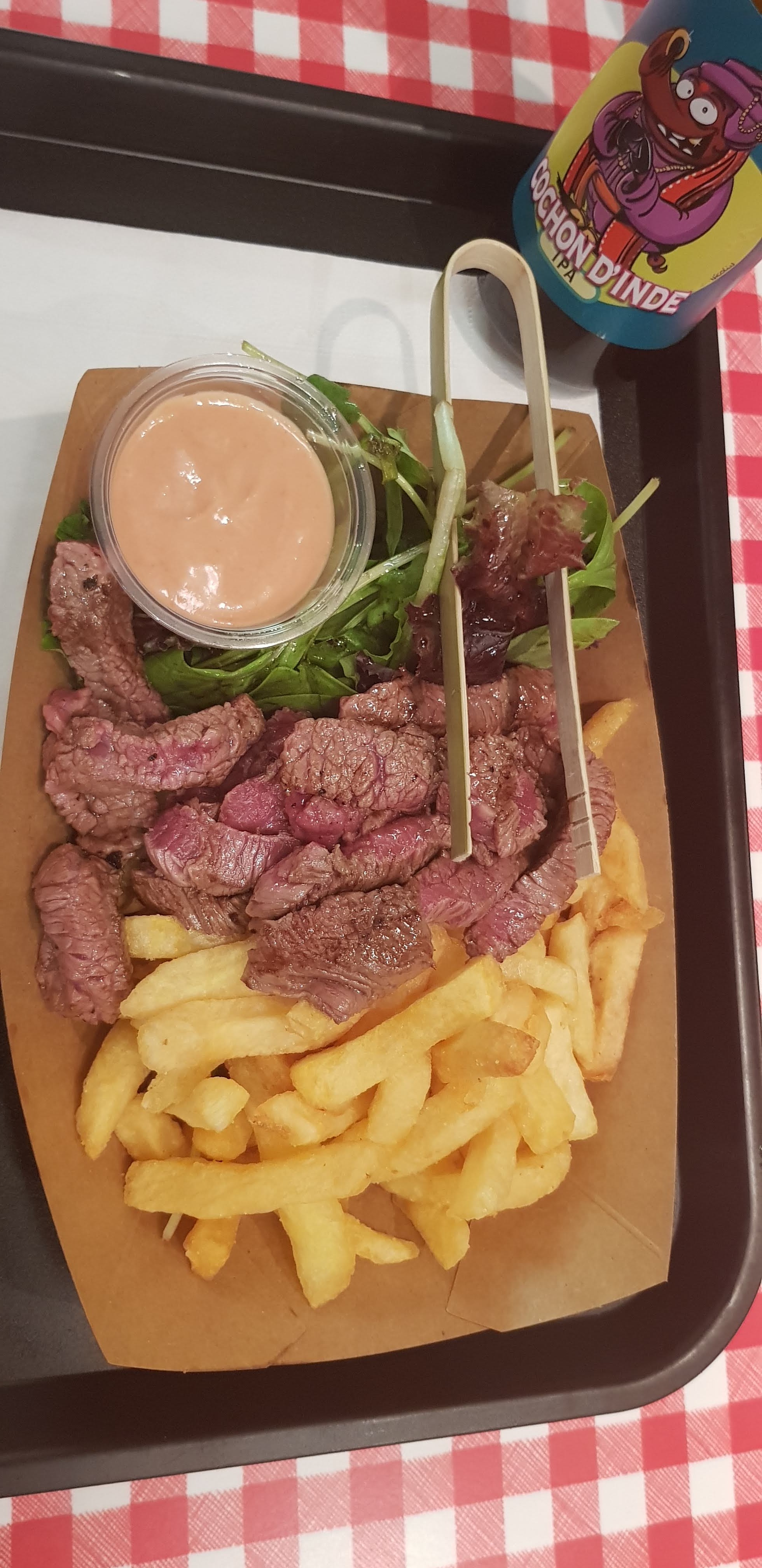 Super Bon ! Steak très épais et bon ! Cuisson saignante bien respectée, la limonade italienne proposée est très bonne aussi. Malgrès l'afflut de clients le personnel a bien géré les commandes. Les sauces faites maison font la différence et le rapport qualité est intéressant. Je recommande !