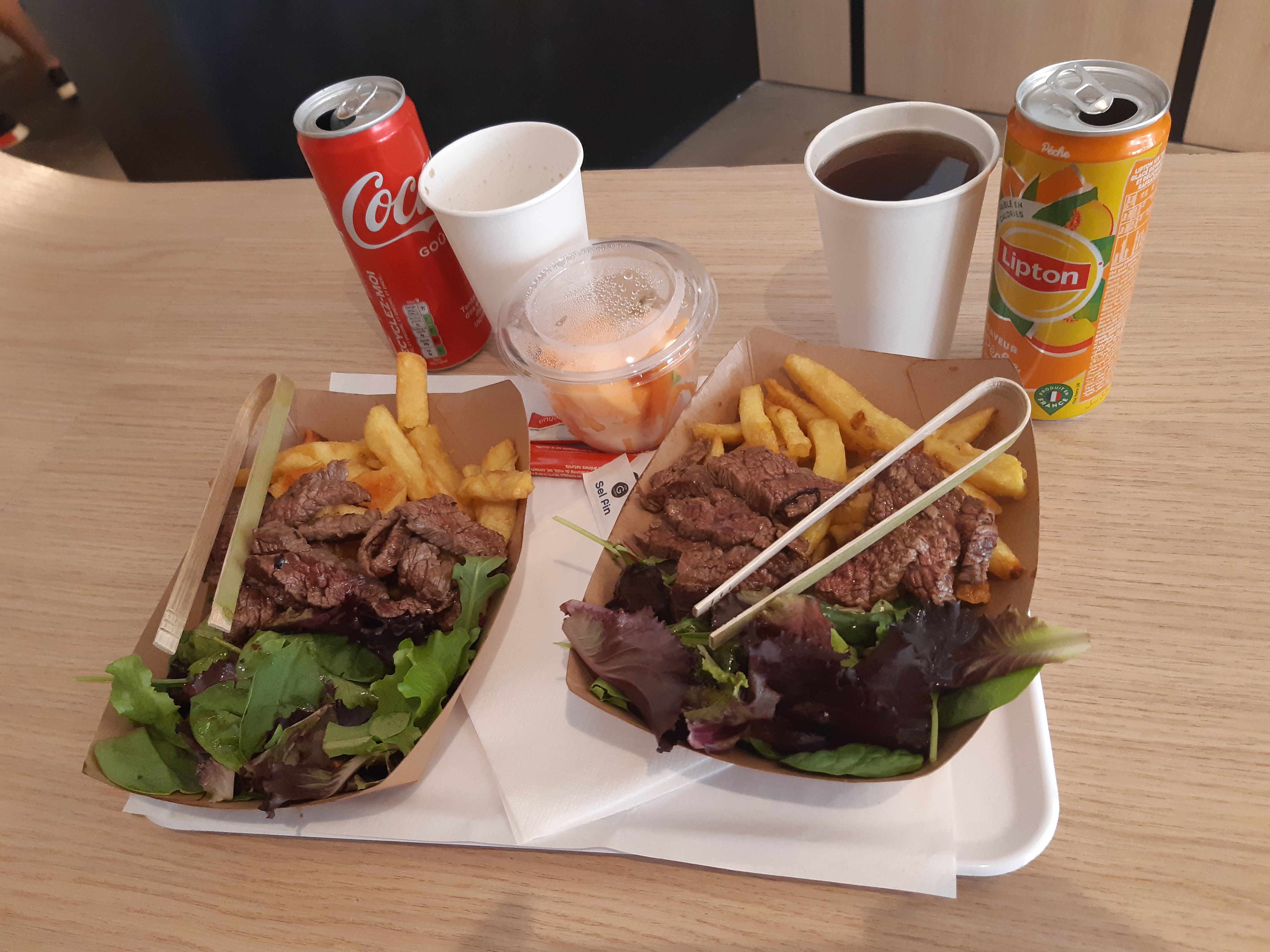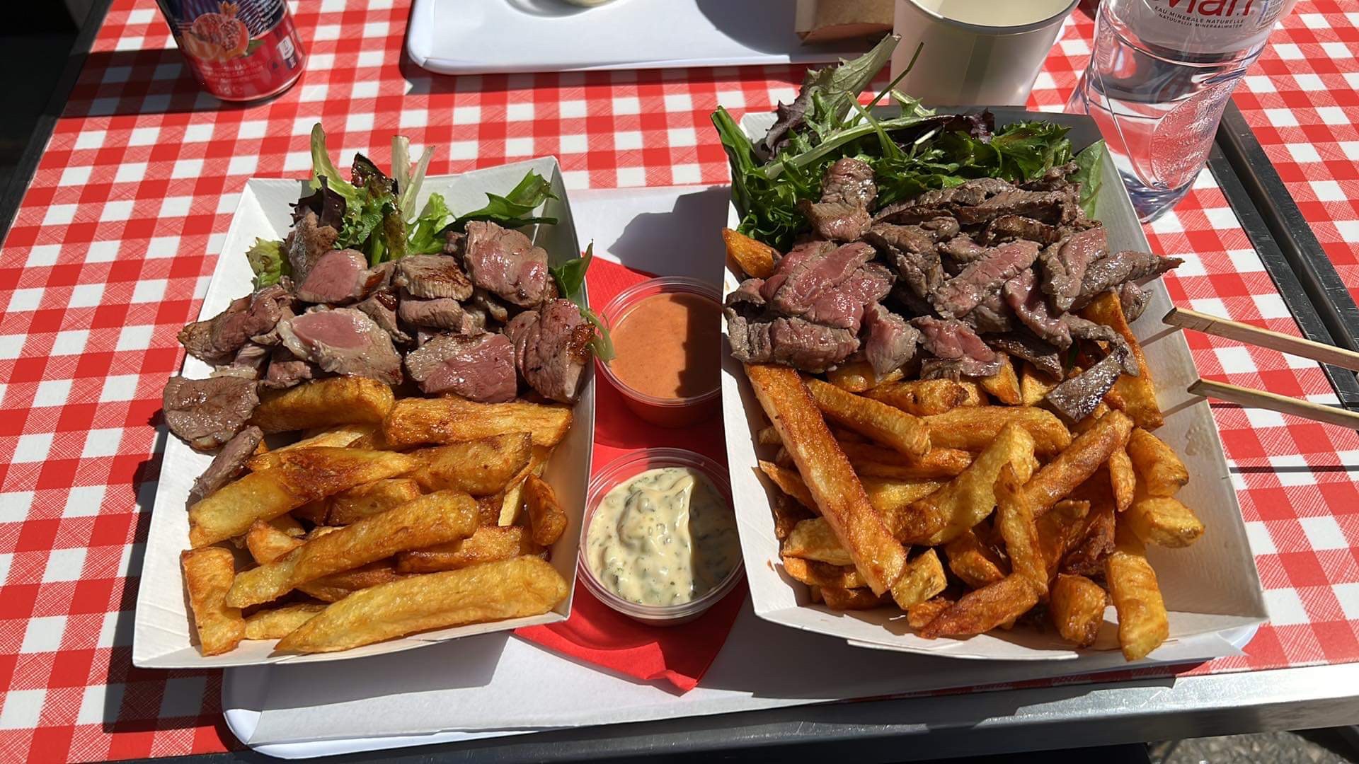 La viande est délicieuse, et la sauce tartare maison aussi! Les frites sont super bonnes. Un large choix de boissons, dont un vin local très bien choisi, en rouge ou en rosé. Accueil souriant et très serviable. Un agréable moment et une adresse que je retiens pour manger bon, rapide et pas cher.