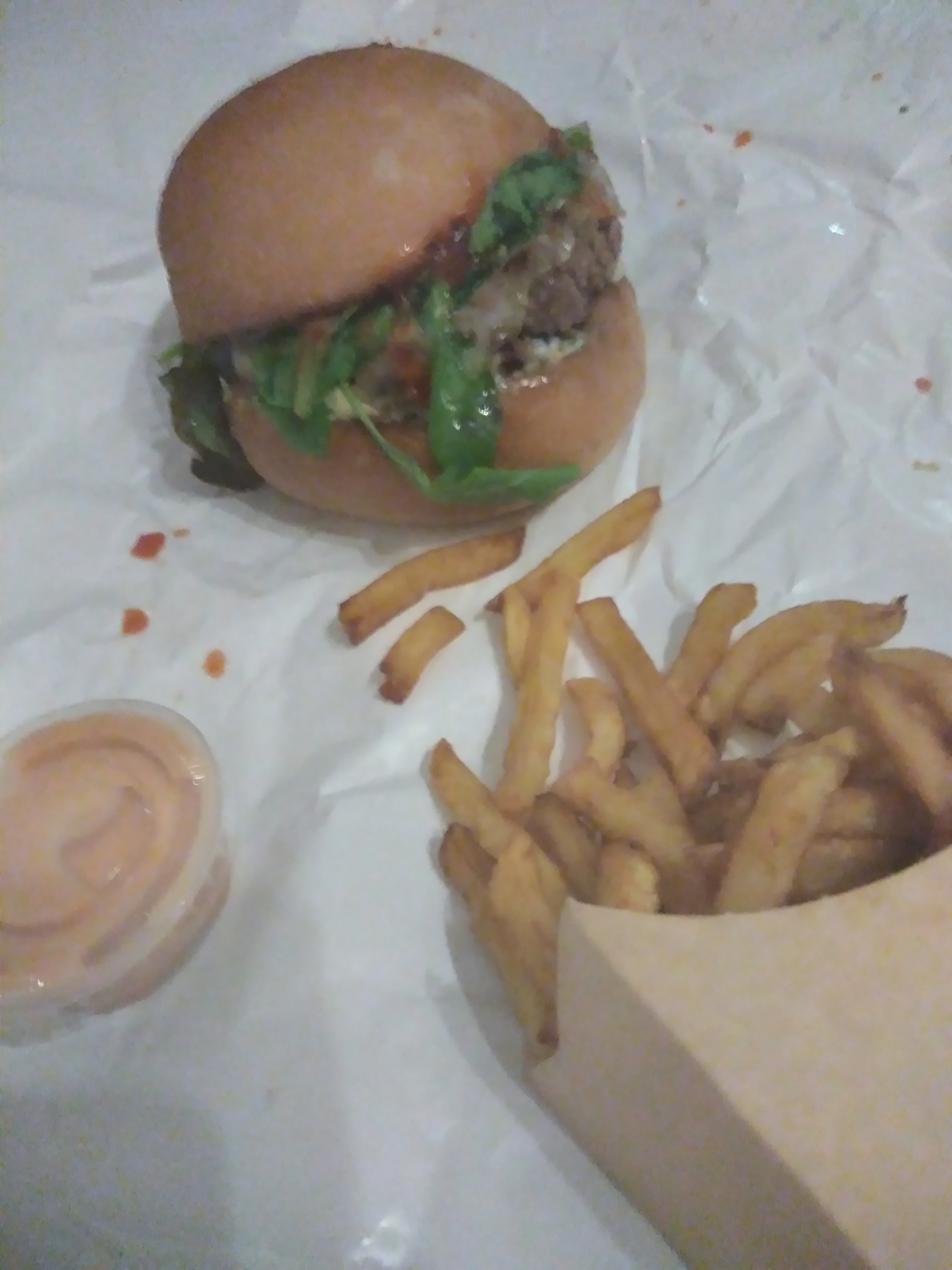 Dommage que le rachat du restaurant eu un effet si radical sur la qualité des produits. Les frites et la garniture des burgers semblent être congelés et les burgers etaient fades au mieux.