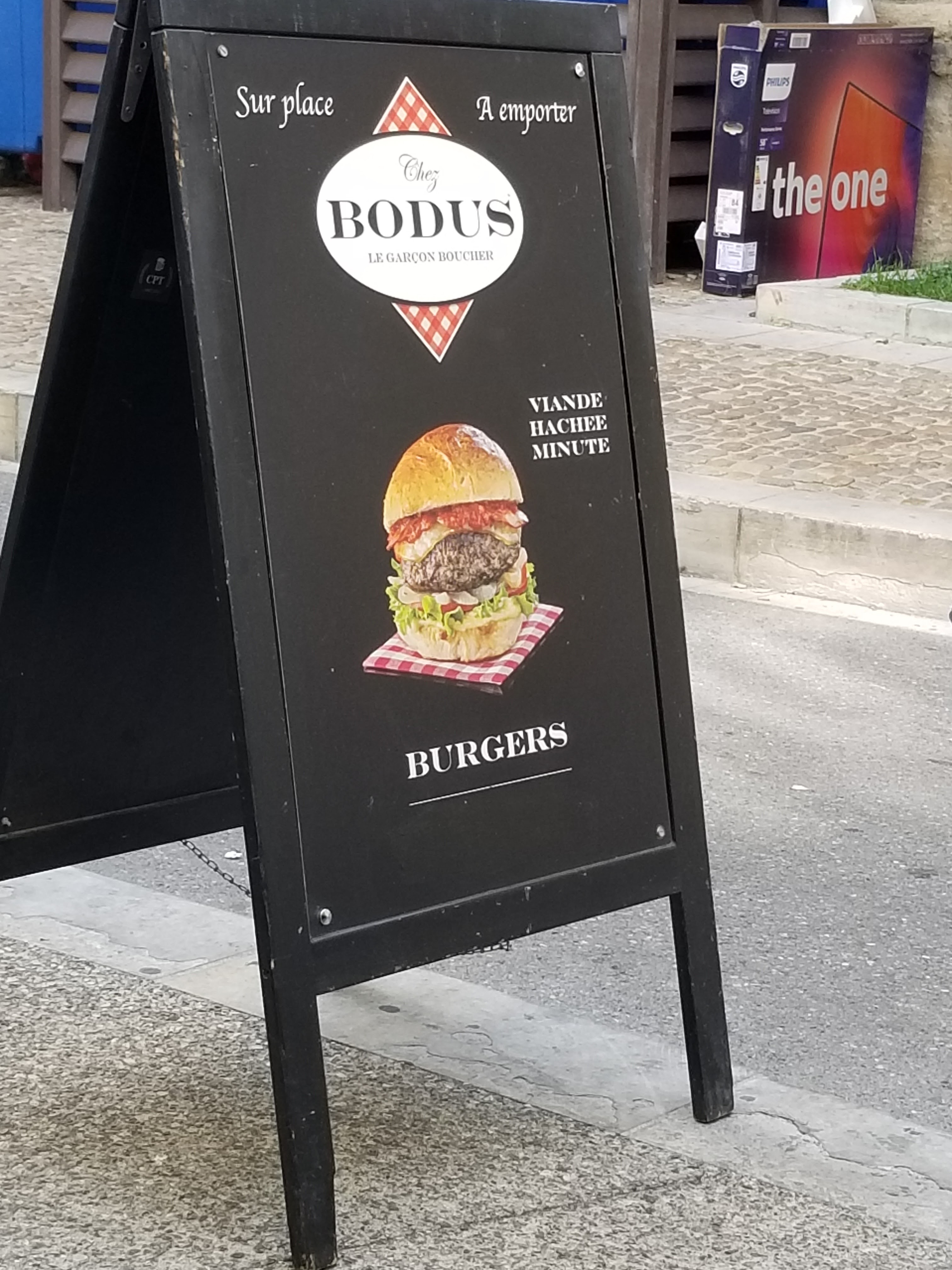 Je vais chez Bodus depuis son installation à Avignon et j'en suis contente. Par contre ce qui me déçoit c'est que la barquette de viande n'est plus mise en avant au profit du burger (vive la mal bouffe !) la barquette n'est plus sur la carte (où elle figurait avec son poids il me semble), alors qu'elle était le produit premier il y a encore peu de temps. XXL ou plus petite, la viande est de qualité et l'accompagnement très bon salade et frites avec sauce maison. Qu'elle est la raison de l'absence de la barquette sur la carte ? le poids de viande aurait il été revu à la baisse ? Quant aux burgers produits qui remportent un beau succès, à l'image des gens de fortes corpulences en ville. Bon appétit