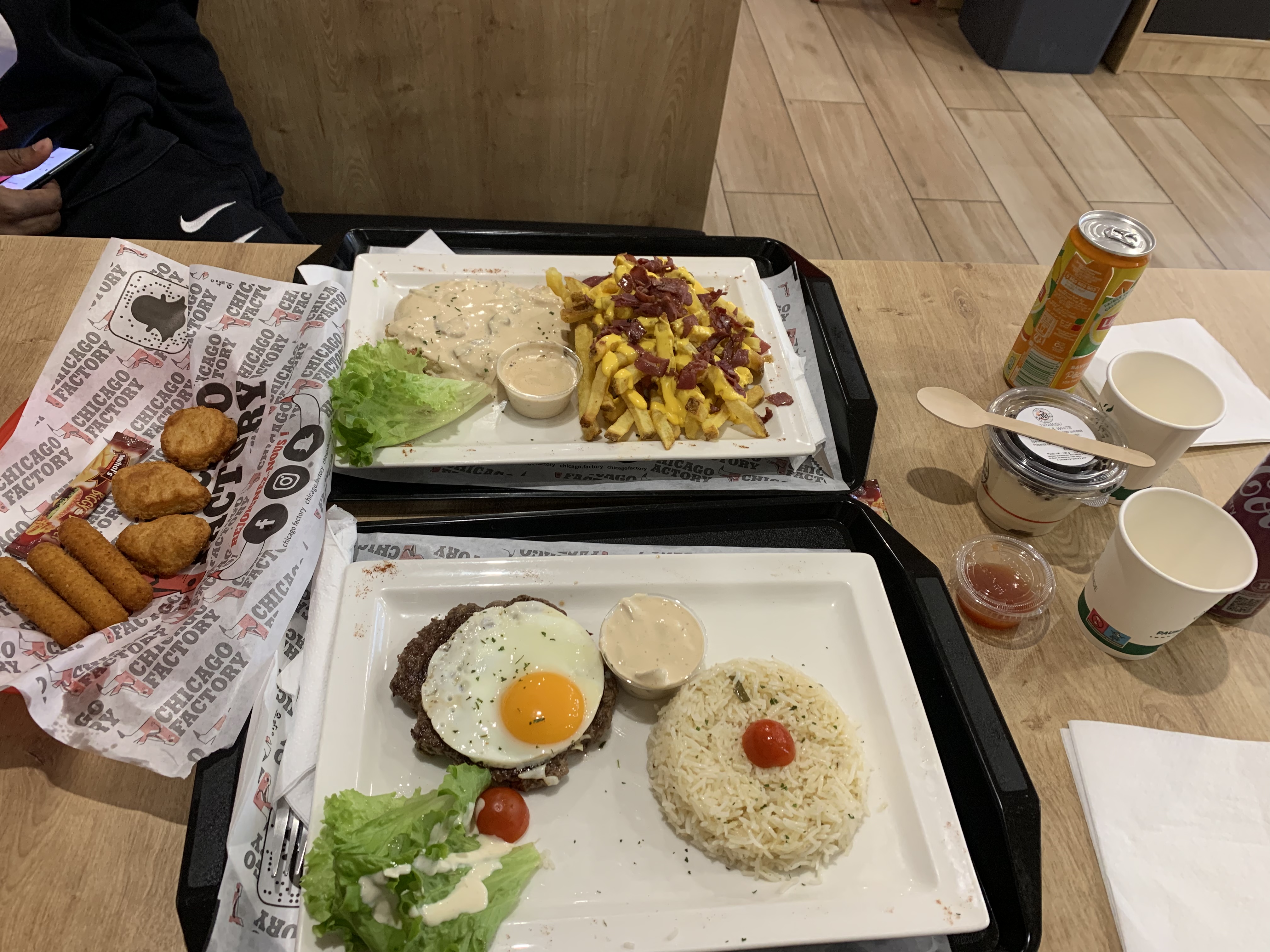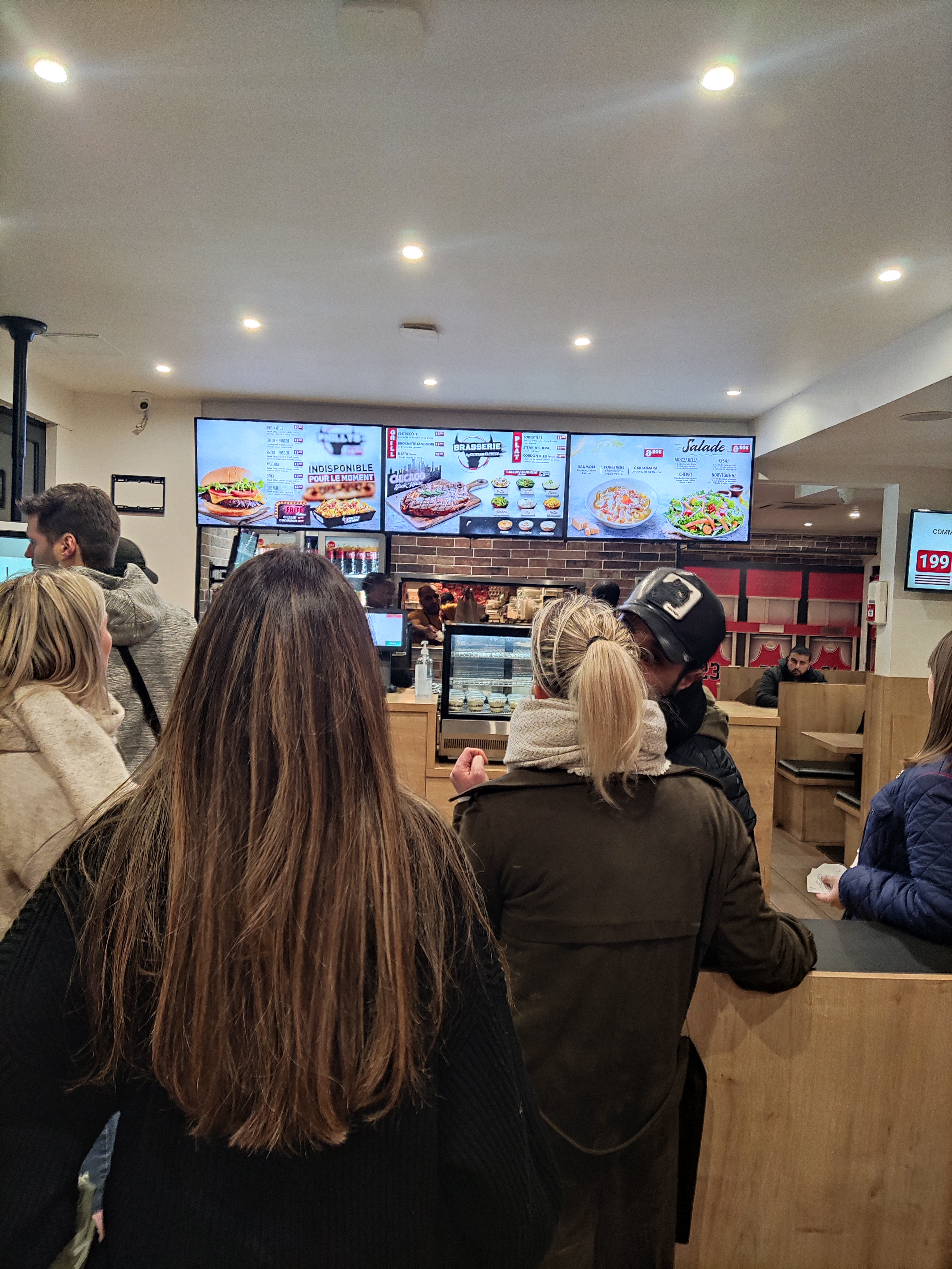 Chicago Factory est un fast-food à proximité de la Gare Paris-Bercy 🚅 Il offre un large choix de burgers, en solo, en menu avec frites et boisson, en menu duo, 2 burgers avec frites et boisson 🍔 Mais aussi, on y trouve quelques plats, comme des entrecôtes au grill, des sandwichs type panini, des cordons bleus ou des assiettes de pâtes 🍝 Sur place, il faut commander sur les bornes tactiles qui distribueront un ticket à présenter à la caisse. Ici, il faut payer et se voir recevoir un numéro de commande. Lorsque celle-ci est prête, le numéro est appelé 🎟