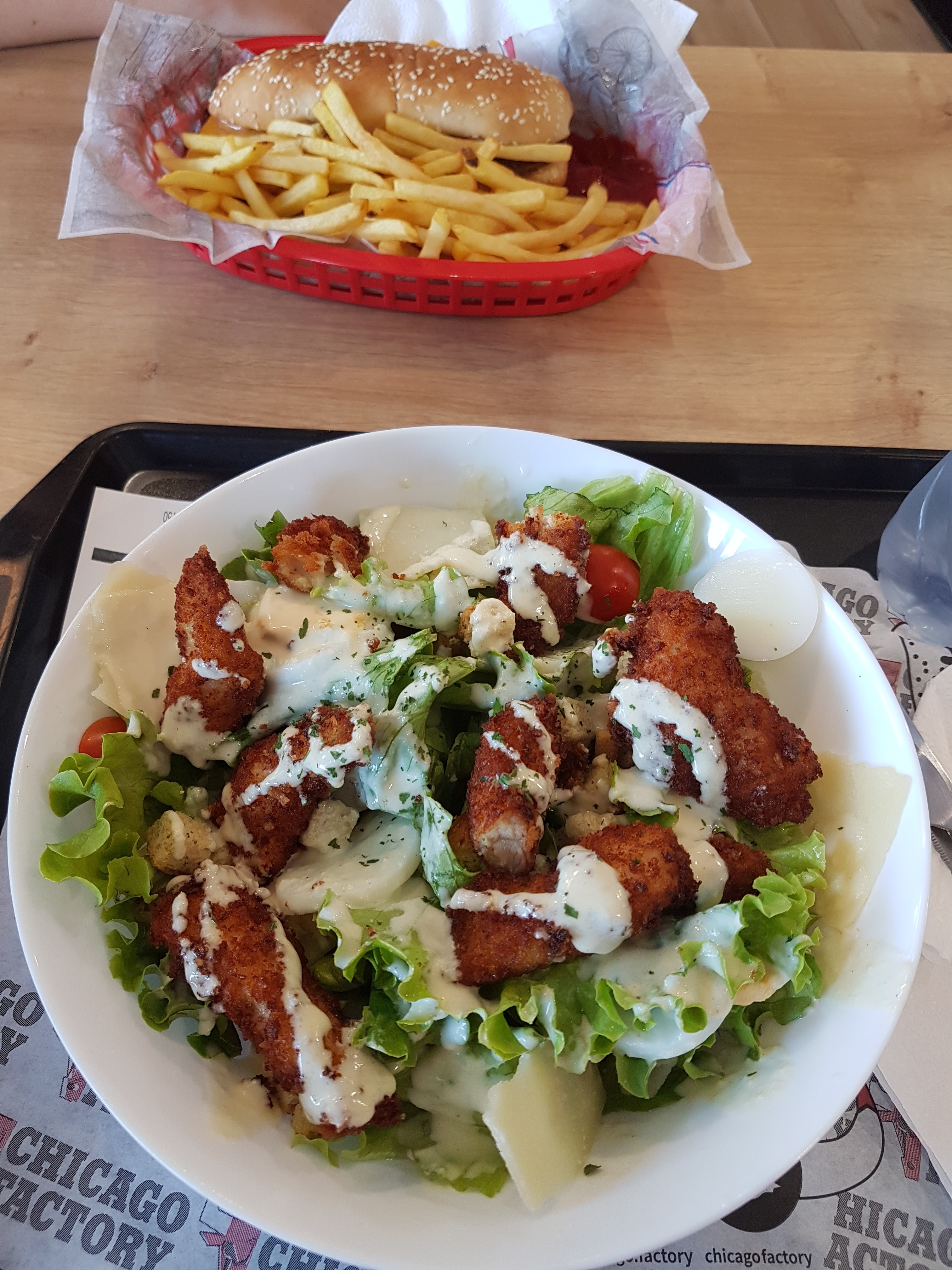 La salade cesar est excellente et très bien garnie ! Les frites sont également très bonnes et la portion est vraiment généreuse. Le prix des menus correspond bien à la qualité des produits :)