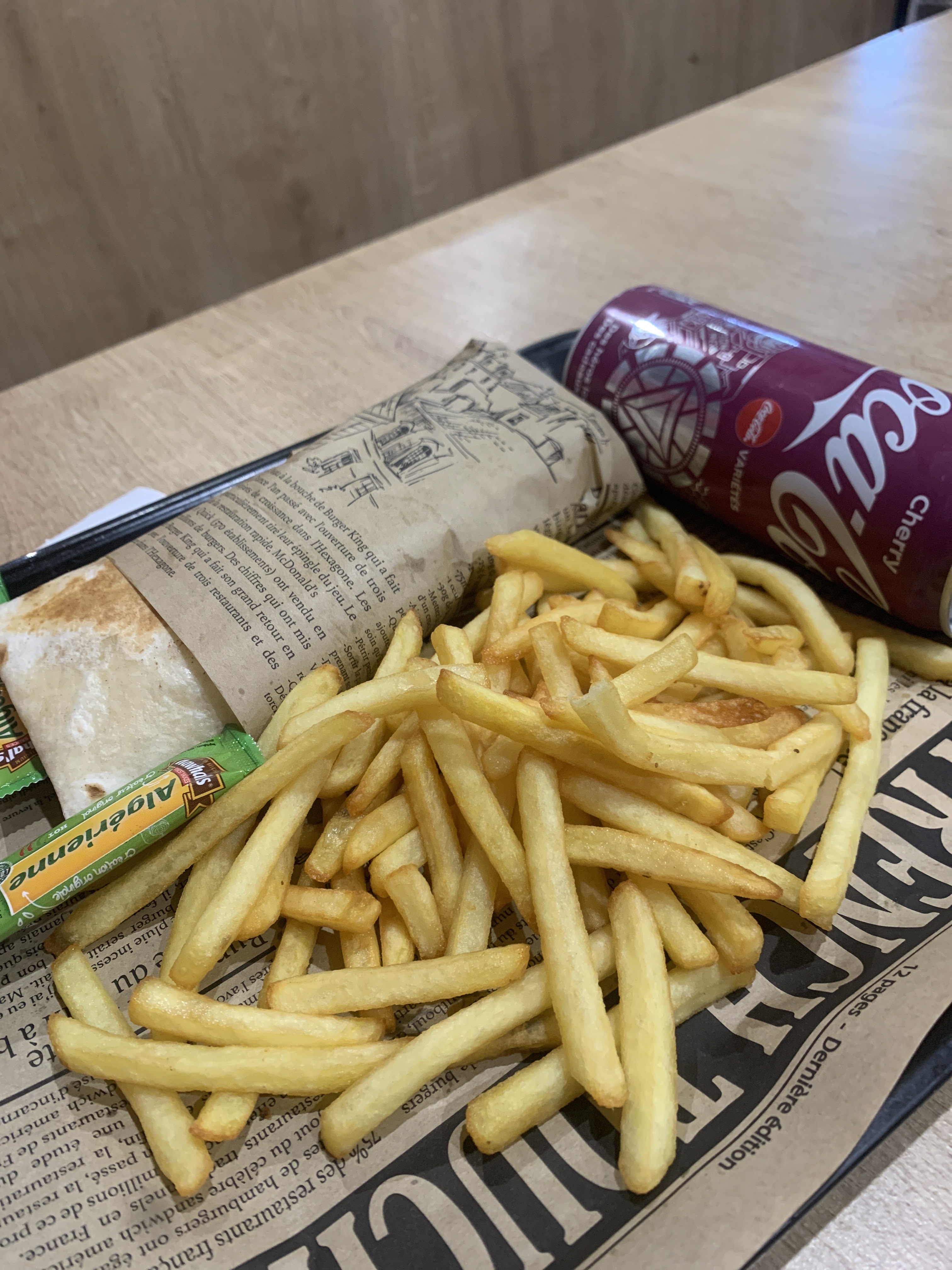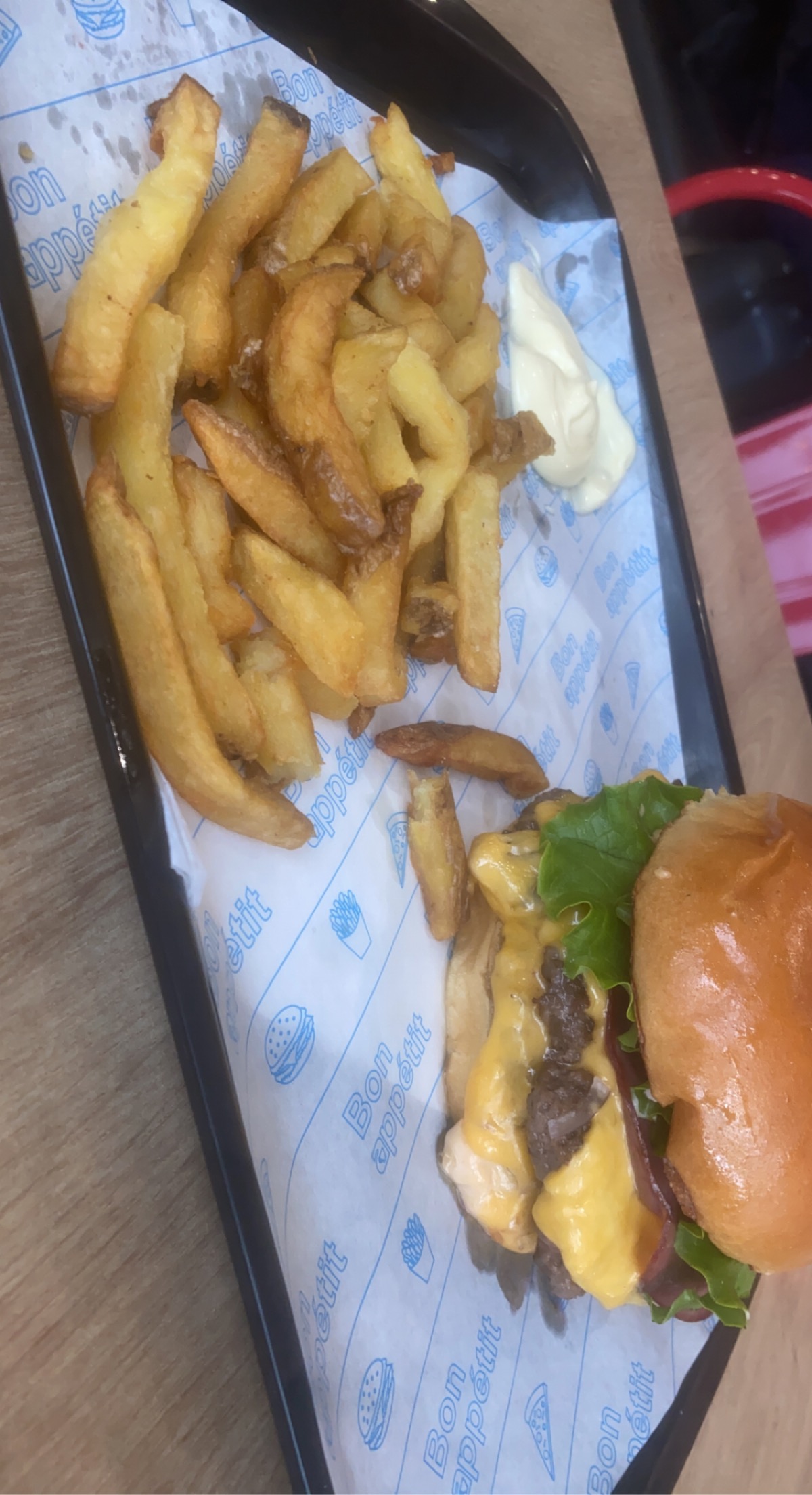 Voilà à quoi ressemble de menu à 15€ avec des suppléments dans le burger. Autant vous dire que c’était aussi bon que ça en a l’air. De plus je sais que l’inflation fait son grand retour mais une tel radinerie sur la sauce barbecue (vu le prix du menu) j’ai jamais vu ça. Clairement allez au macdo c’est mieux.