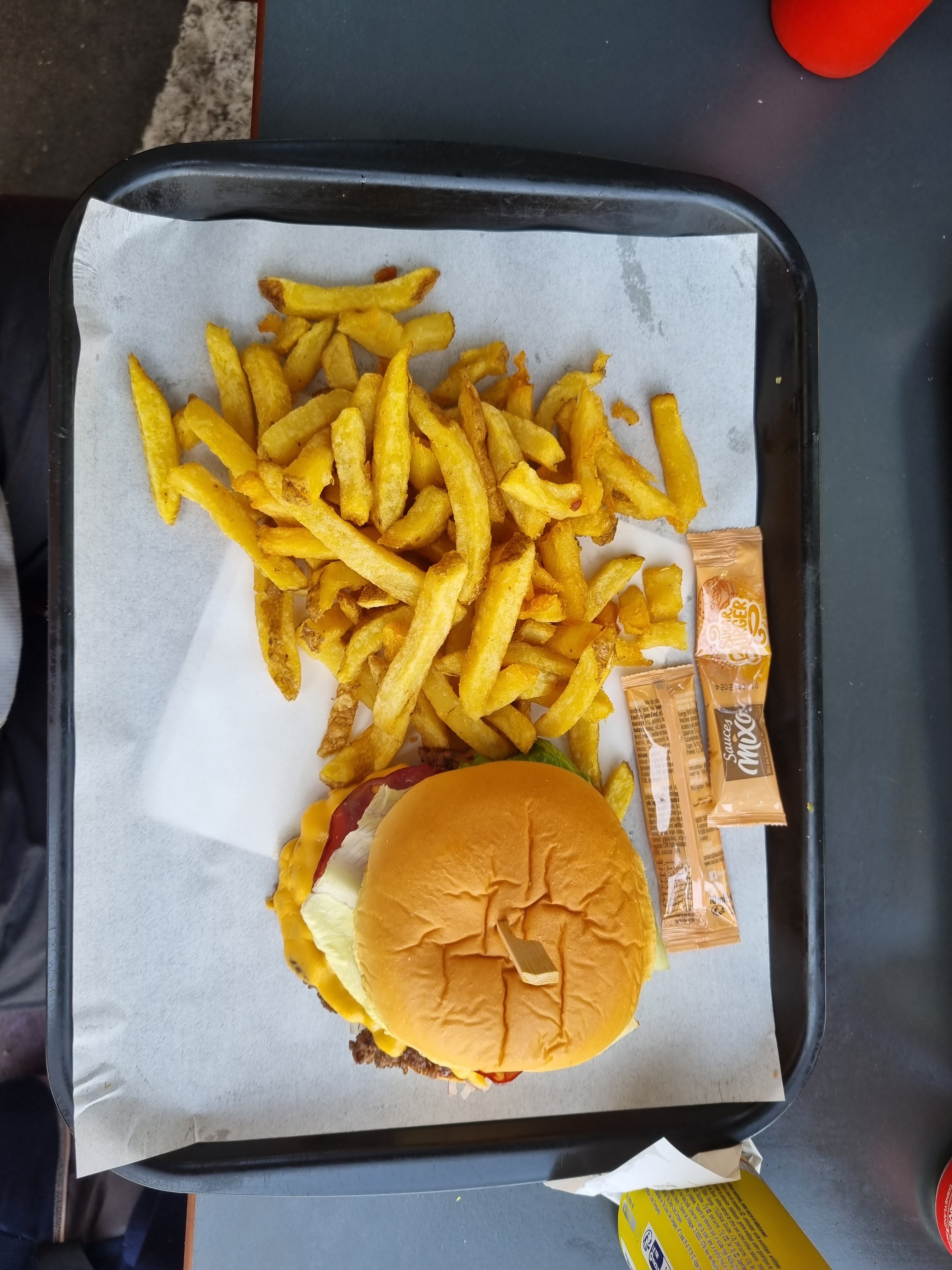 Le hamburger m'est resté sur l'estomac, les frites sont grosses et compactes et plus de dessert à 13h. On critique McDo mais c'est beaucoup mieux que ce fastfood très moyen.