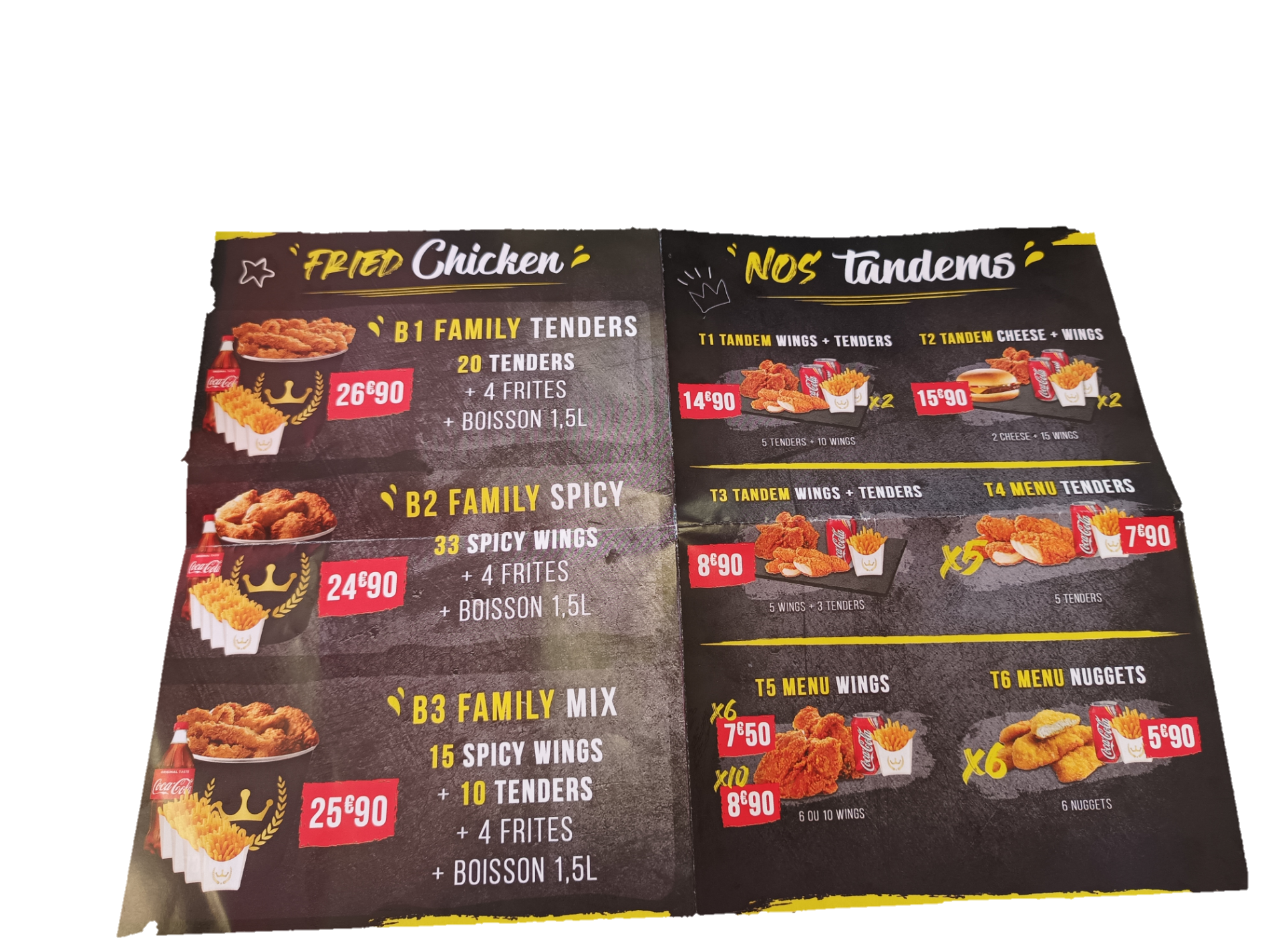 Assez déçu j'avais commandé sur place premièrement l'attente était longue les frites pas bonne le ketchup dégueulasse servi en petit tube qui est difficile à ouvrir et de marque bas de game et pour finir les wings sont faites avec beaucoup trop de panure