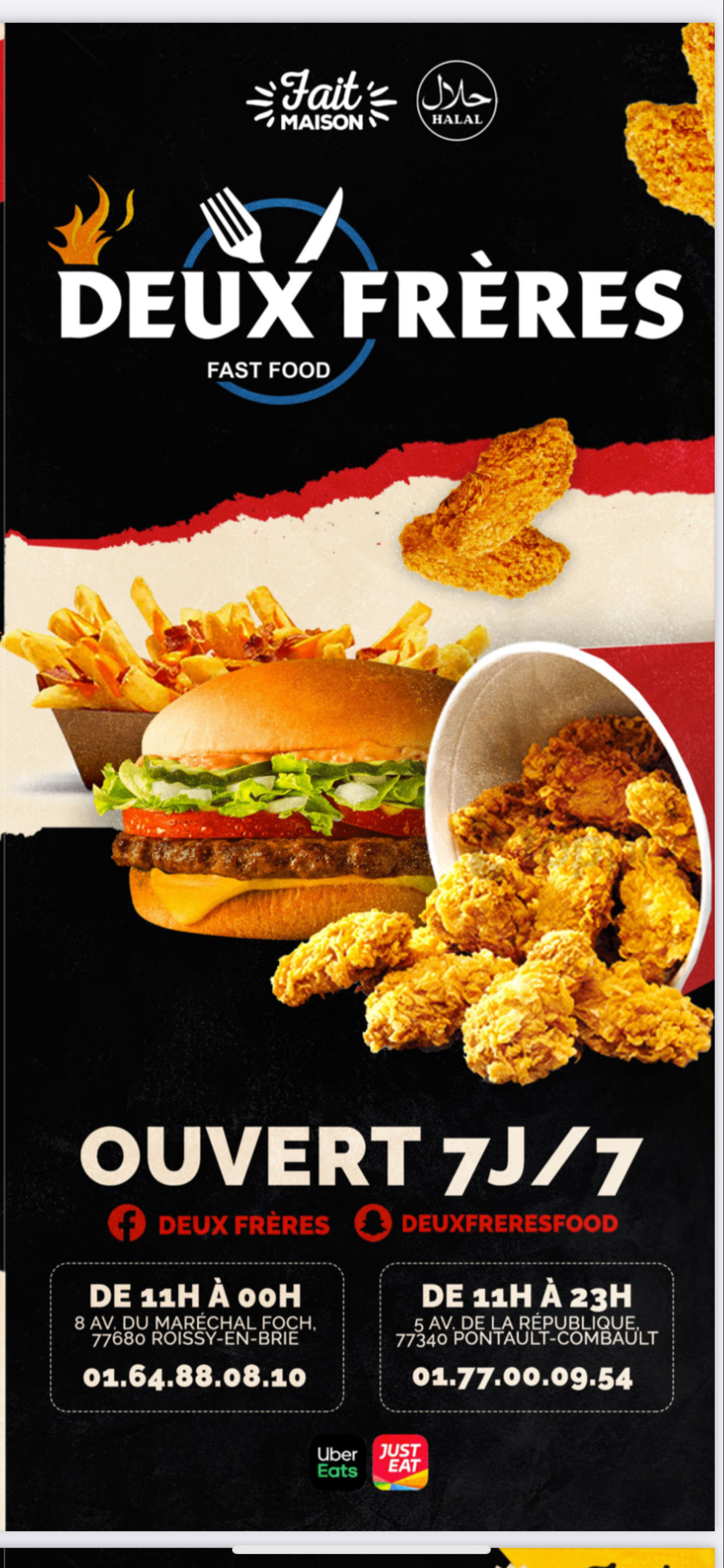 FUYEZ ! J’ai déjeuner chez deux frère dans Le semaine ou au Sietom devrai je dire. La cuisinière s’est lécher langoureusement les doigts sous mes yeux avant de les plongés jusqu’aux abysses de la sauce BBQ, HYGIÈNE DÉPLORABLE lieu insalubre odeur suspecte et nauséabonde au niveau de la fenêtre. Je m’inquiète pour ma santé et me sent déjà ballonné à l’issue de cette consommation. Manger chez deux frère est une expérience à ne réaliser qu’UNE fois dans la vie.