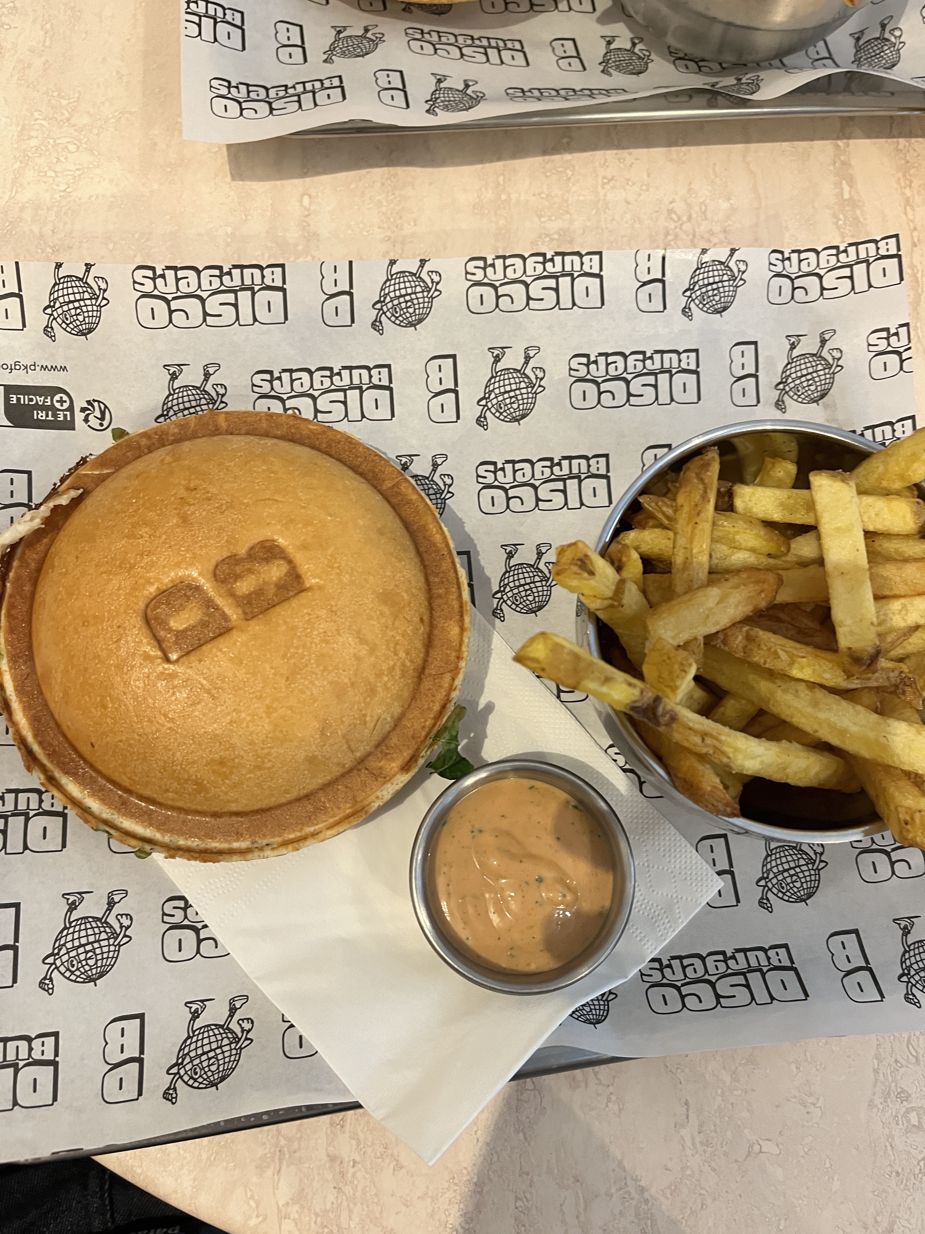 Hello Eleonore, merci pour vos compliments sur nos frites et notre sauce maison 🏡 On espère vous revoir bientôt pour un nouveau Disco Burger !