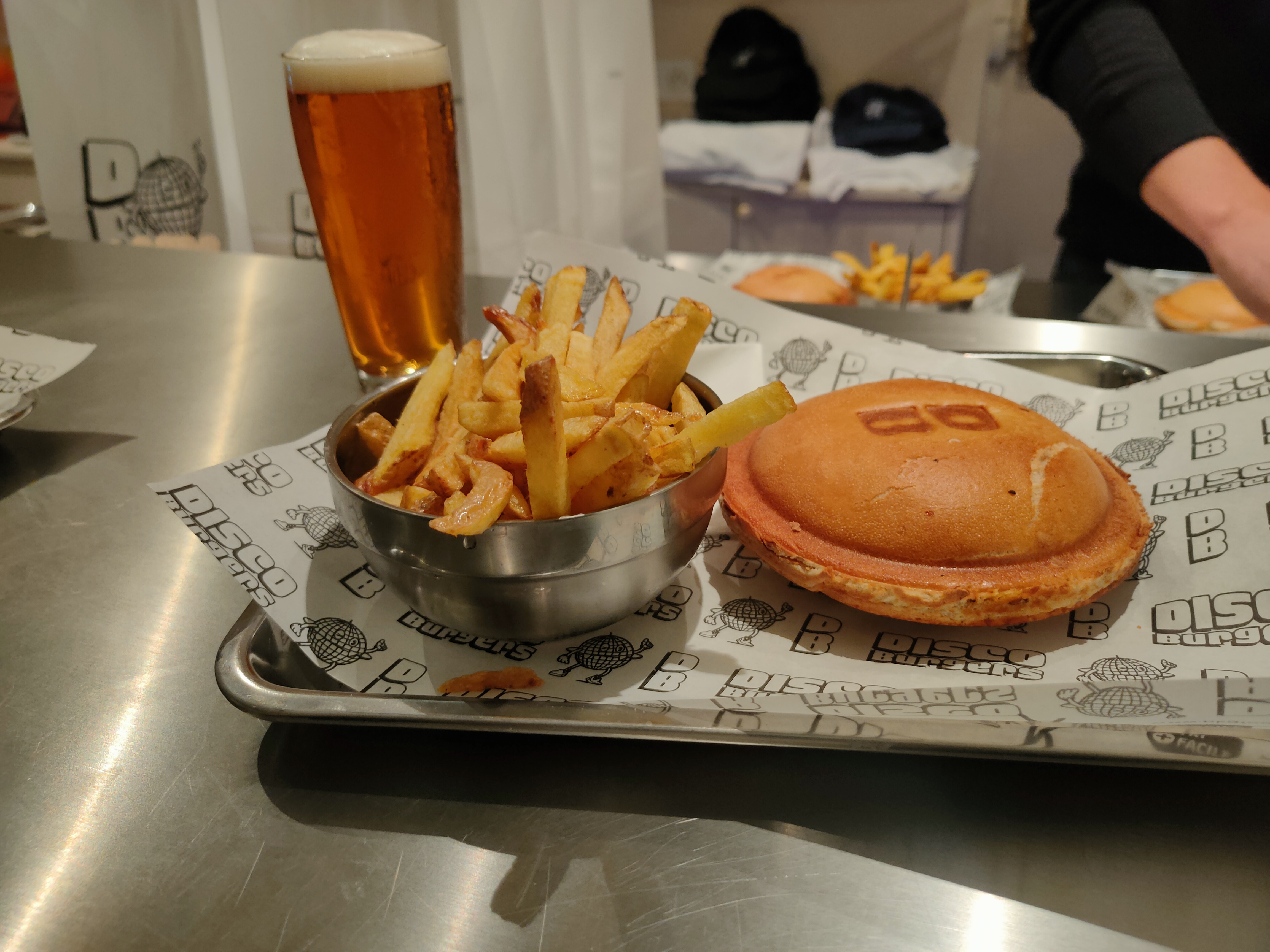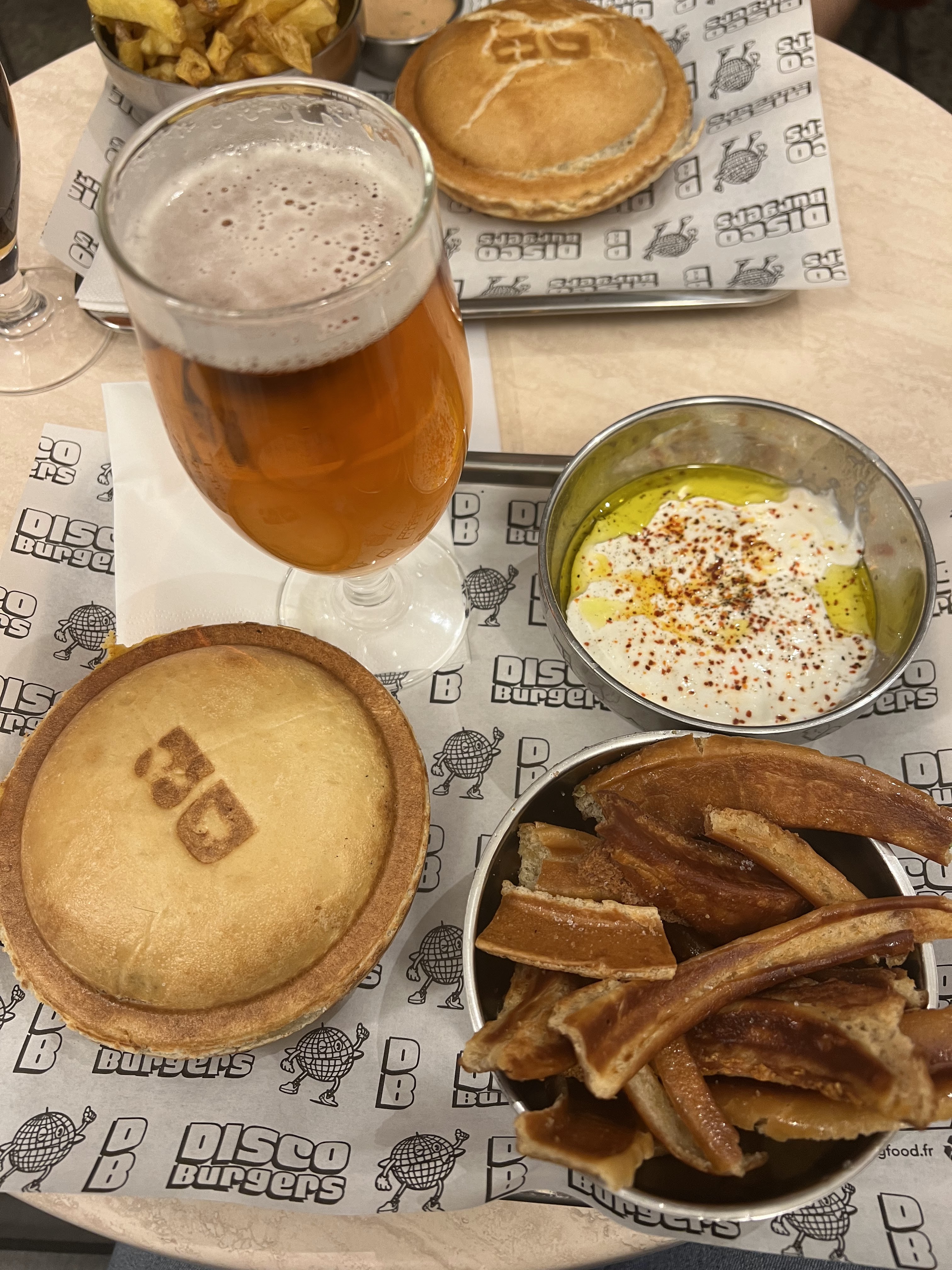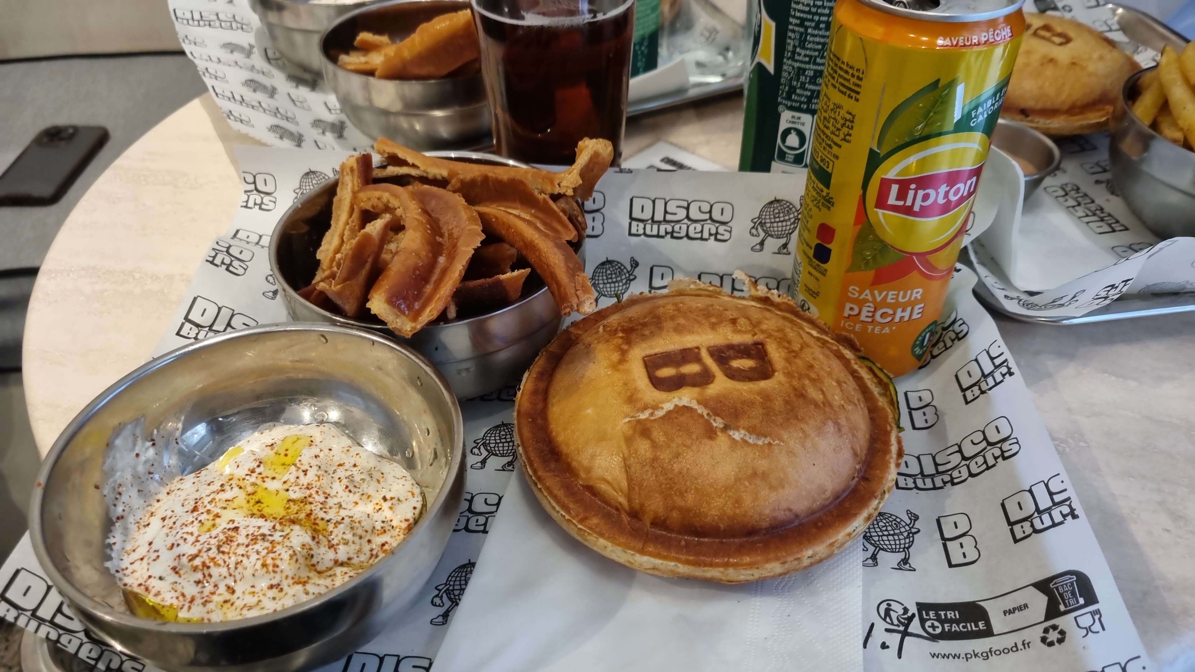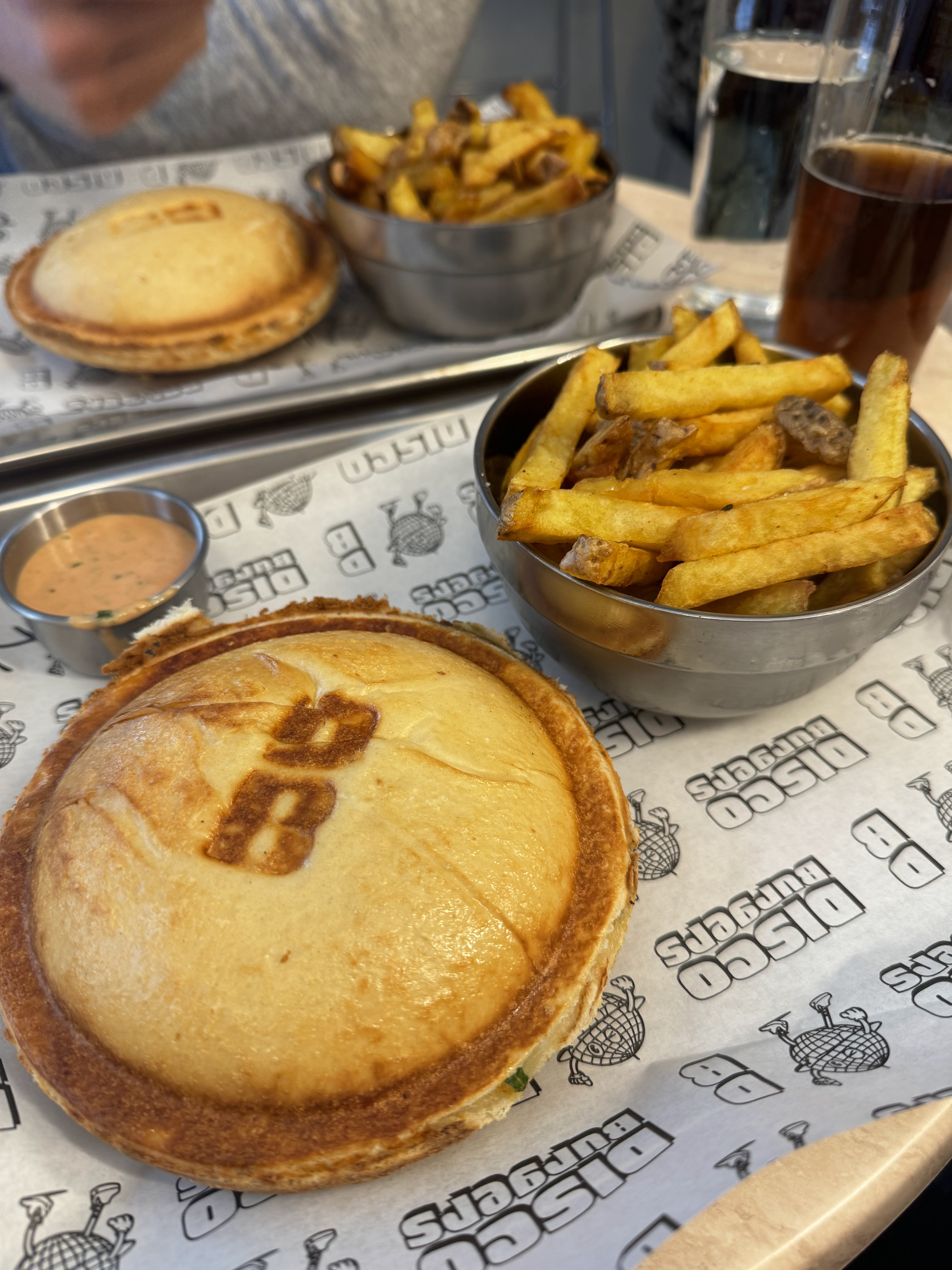 Bonne ambiance, les frittes sont trop bonnes et surtout le concept du burger est assez original car il est fermé. Les ingrédients sont bons et frais. Projet monté par deux jeunes super motivés. Des supers prix pour un bel emplacement dans le 9e. Une table dehors pour déguster le burger chaud sur le pouce ou bien au bar. Disco BURGERS a tout pour cartonner !!!! Allez y les yeux fermés.