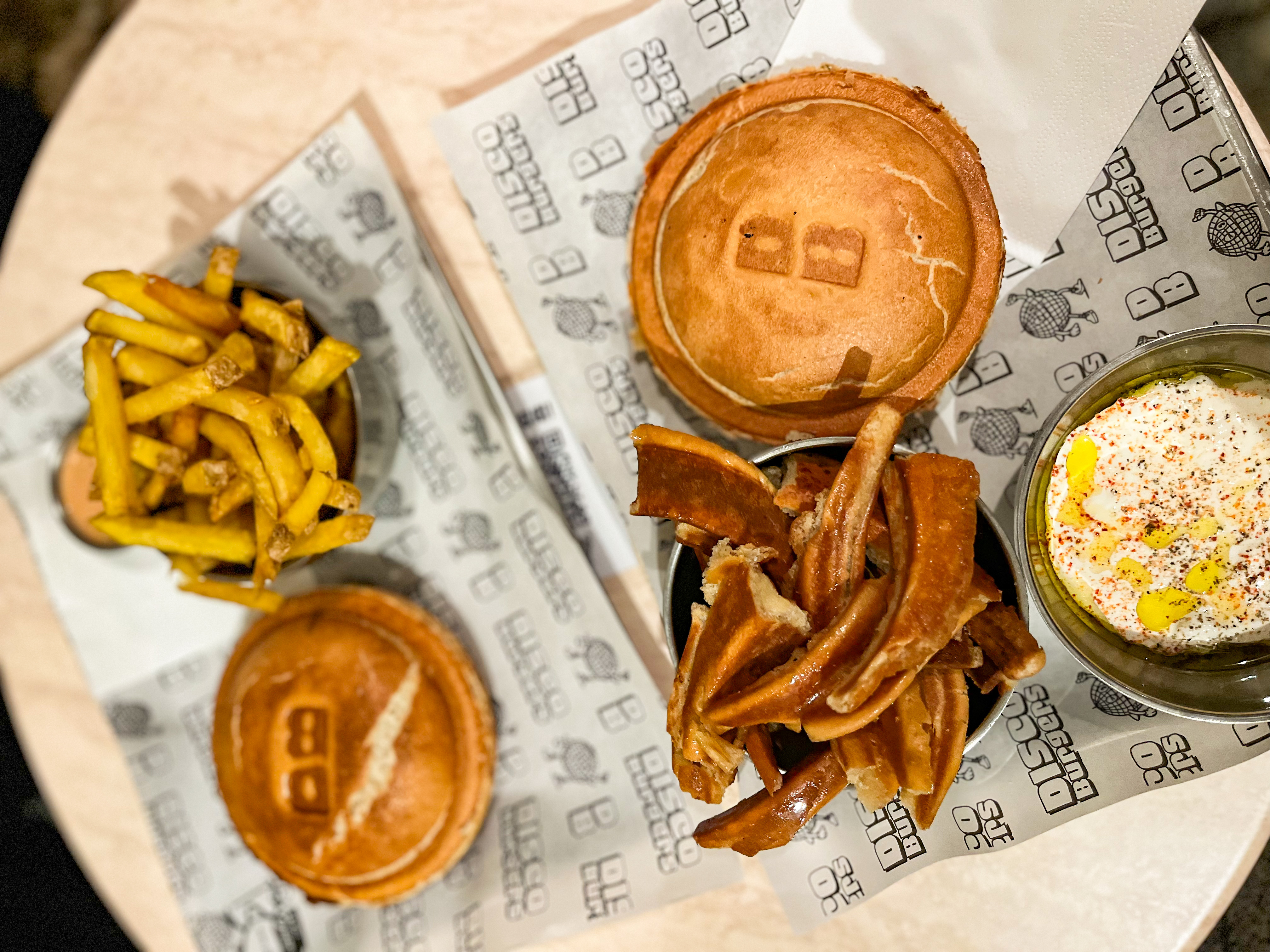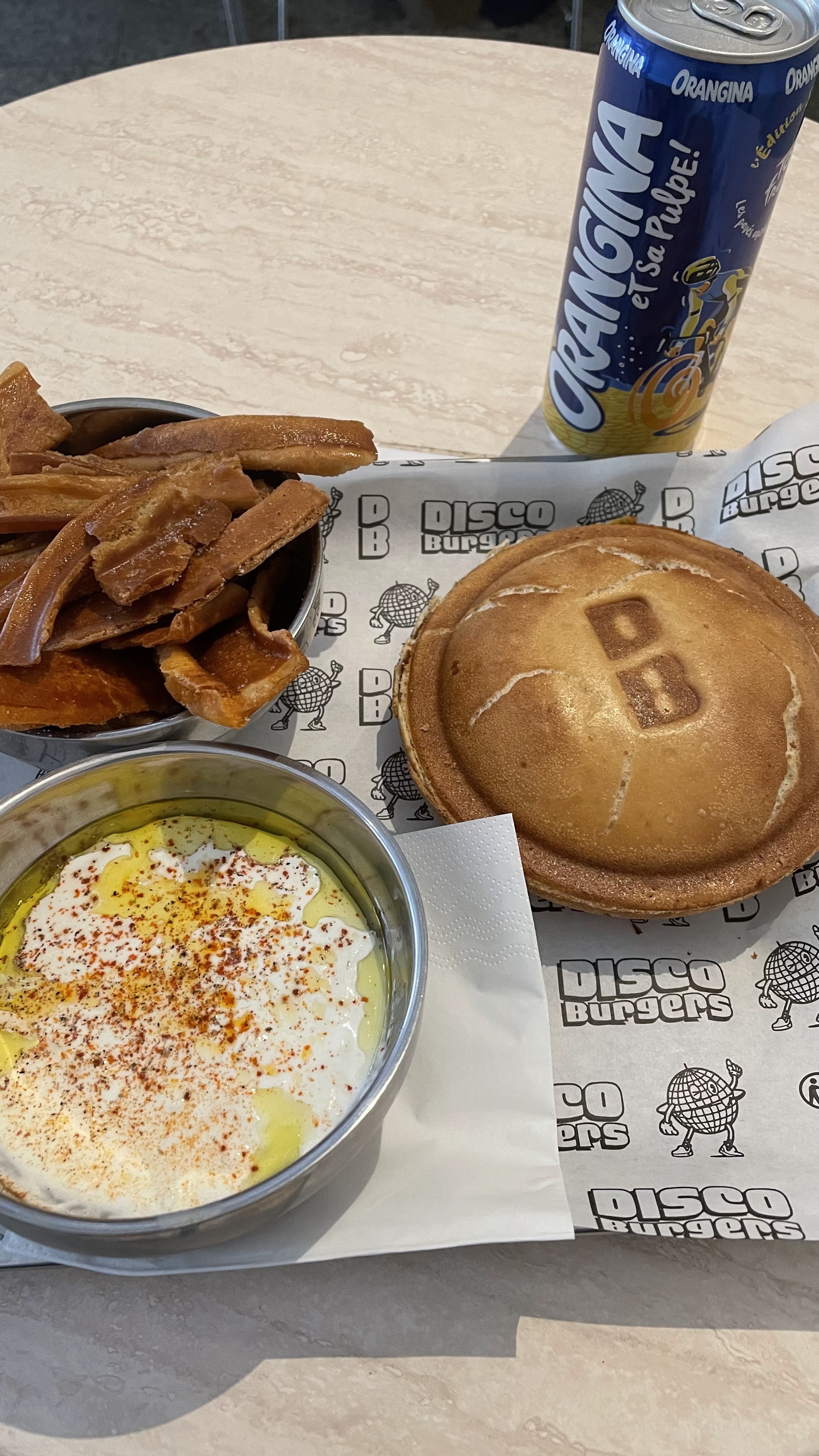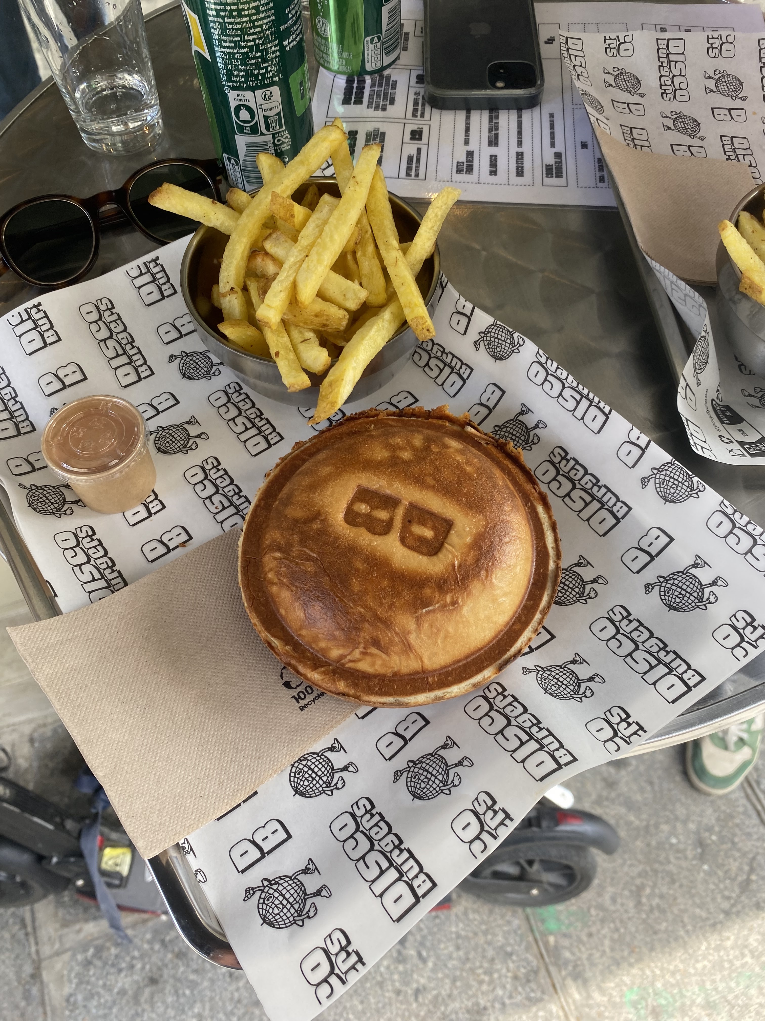 Service parfait, accueillant et rapide. Employés très sympathiques qui répondent aux messages sur Instagram. Nourriture avec concept excellent : le burger ne coule pas de partout étant donné qu'il est scellé mais le goût reste tout de même exceptionnel. Frites croquantes et chutes de burger très bonnes accompagné de sa sauce stracciatella. De plus, les éléments de la carte ont tous un petit nom personnalisé en rapport avec le disco. En résumé, cet endroit est juste exceptionnel ! Merci Disco Burgers 😍😘