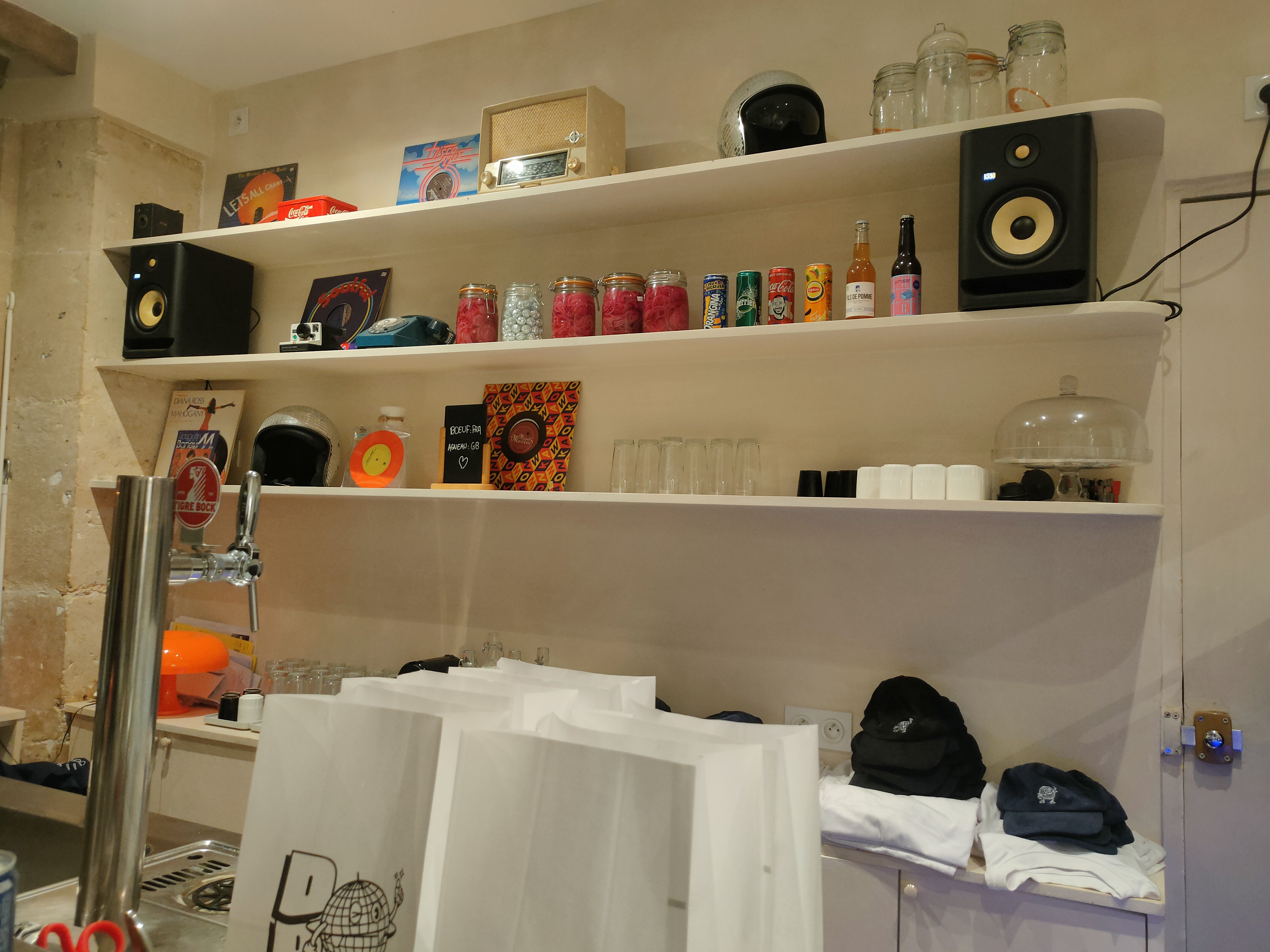 Je me baladais dans le quartier avec l’envie féroce d’un burger mais j’étais lasse de tout ceux que j’avais pu goûter dans le quartier ! Puis je m’arrête face à cette devanture, un pain à burger tournant sur un vinyle, des boules discos au plafond et une musique de fond bien évidemment iatlo disco ! Je tente l’aventure et là un sans faute ! Le concept du burger fermé est géniale et hyper pratique, le cheese très bien cuisiné, on est dans le réconfort ! Pas une multitude de choix à la cartes mais c’est ce qu’on veut ! Mention spéciale pour le pain à burger incroyablement bon entre le moelleux du brioché et le croustillant du toaster ! Laissez vous tenter par le cookie à la fin, un petit délice ! Et une petite pression bien fraîche pour accompagner cela, que demandez de plus ! Comme dit Harry dans Harry Potter 1 : « On prend le tout ! »