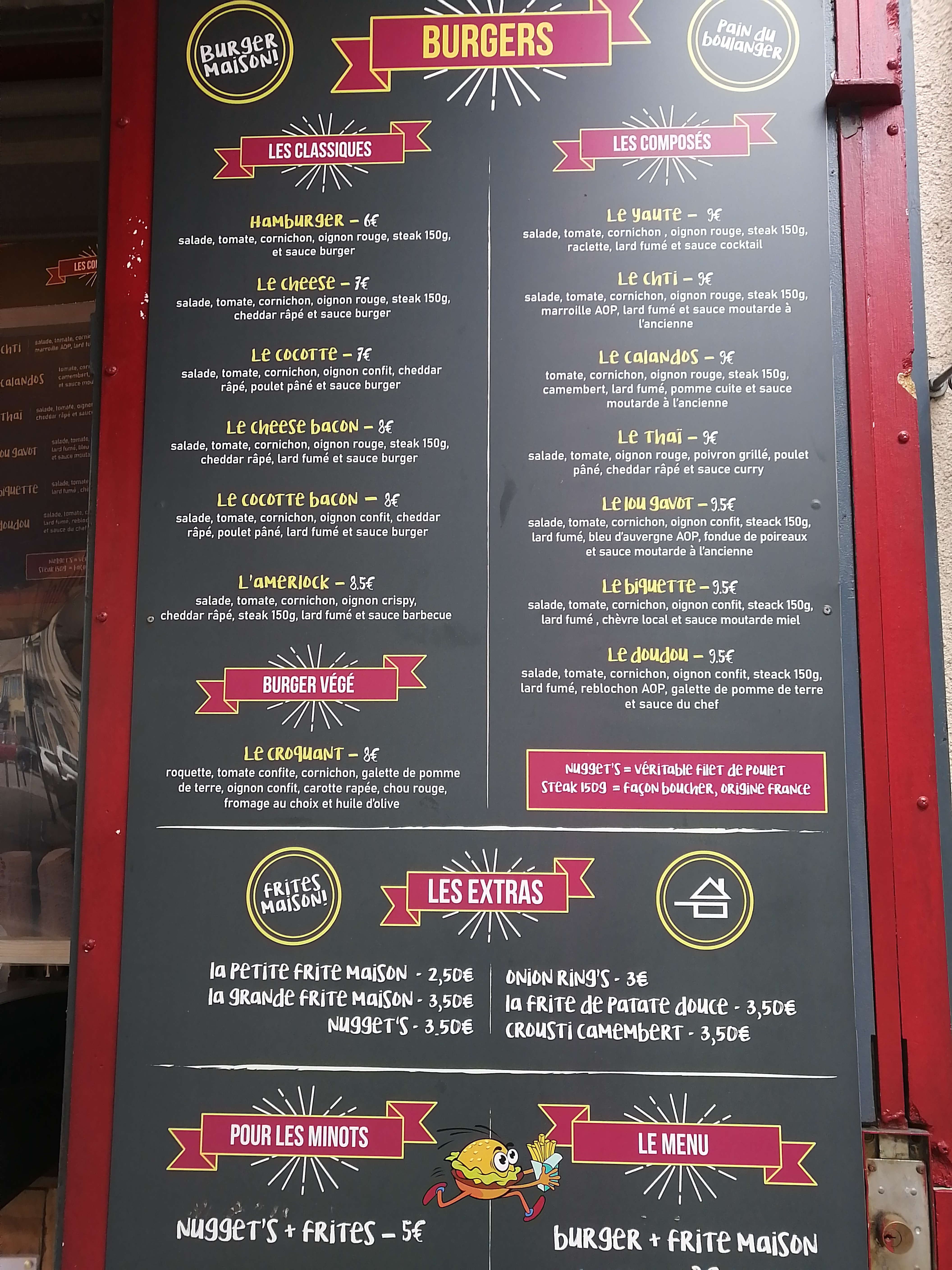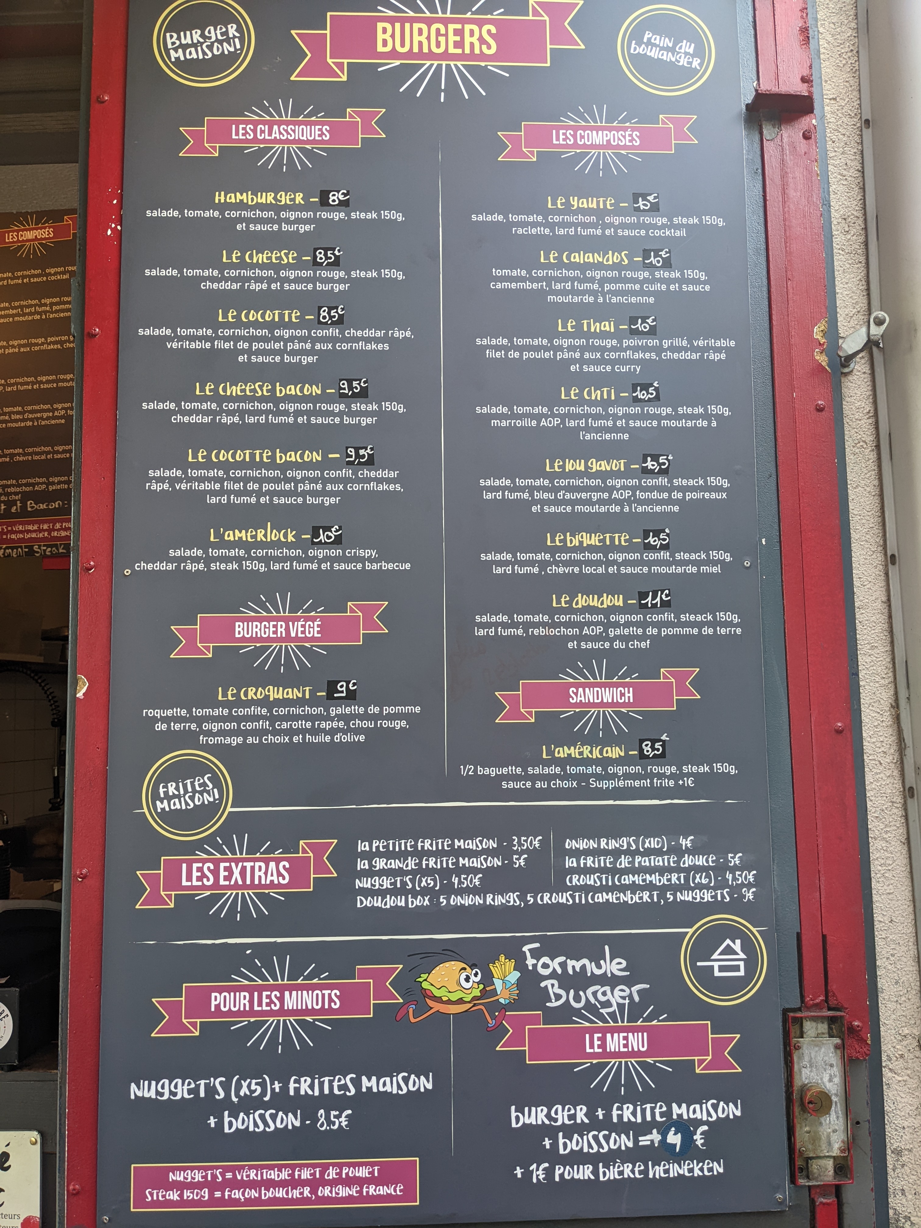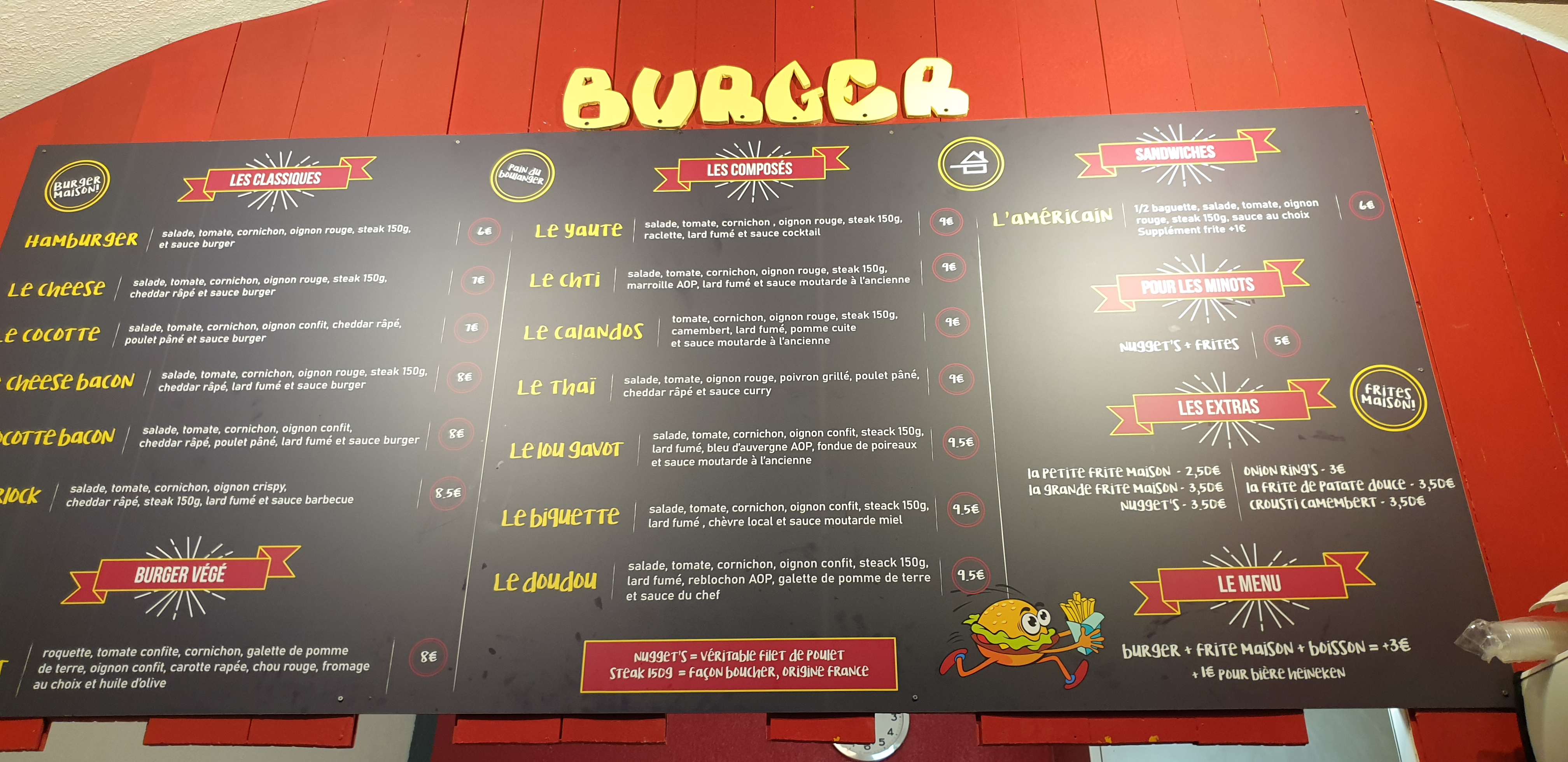 Un des meilleurs burger de ma Life !! Pain du boulanger, produits du coin et de qualité, prix plus que raisonnable !!! Foncez !!! Perso j’ai pris le cocotte bacon un régal !!!! Les frites maisons sont à tomber aussi !!!
