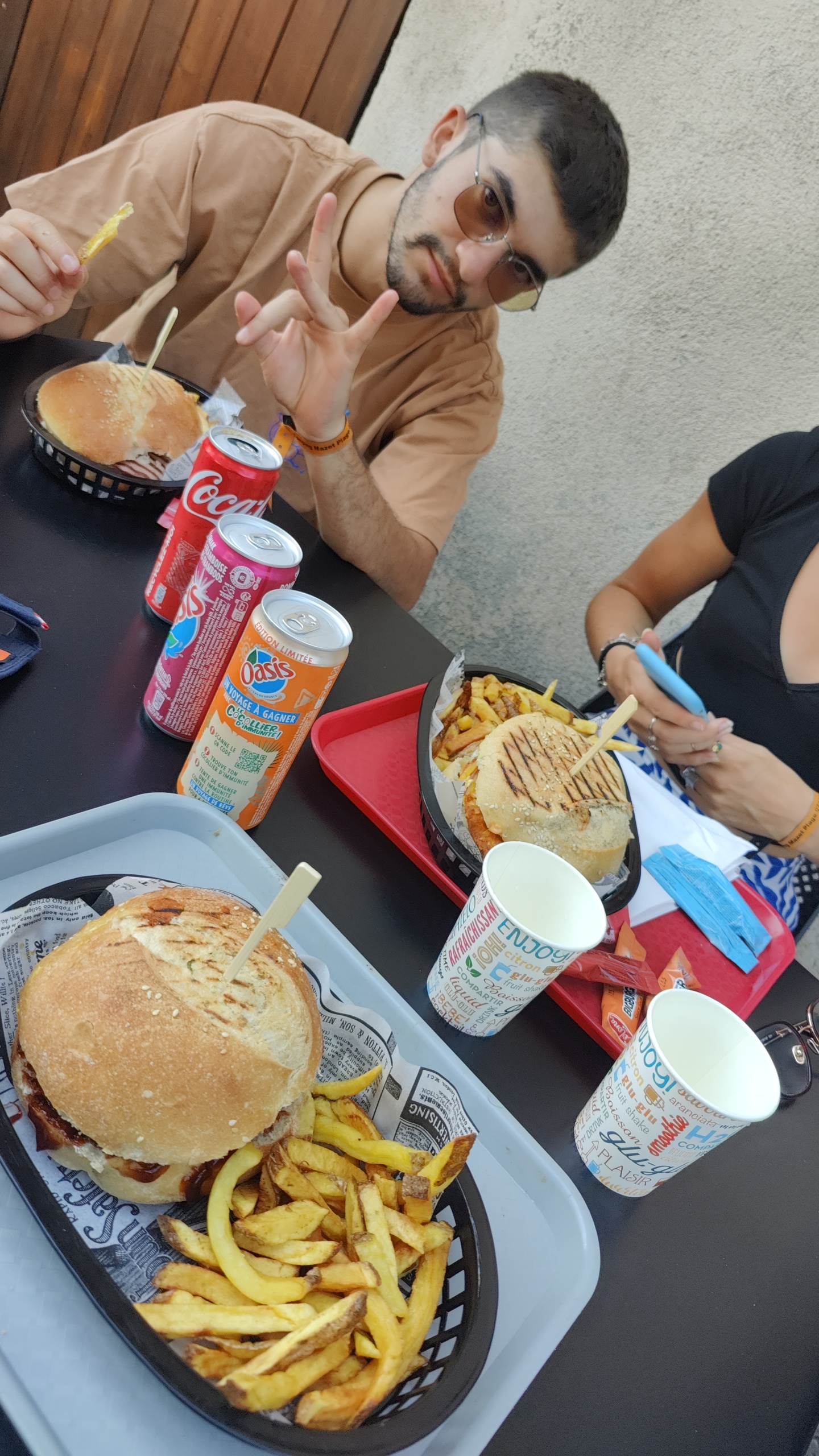 Le personnel est hyper sympa en plus d'être très aimable et joyeux, et leurs burgers sont supers bons !!!!! Si vous voulez manger un méga burger bien savoureux, clairement c'est le bon endroit !!! Ne vous fiez pas à leurs prix supers abordables, ils valent plus que ça c'est clair !!!!! @ bientôt et merci !!!!
