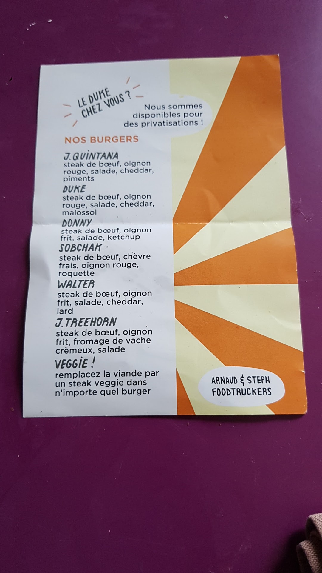 Personnel très agréable, je vous le conseille vivement, tous ai fait maison et tous ai acheter local, que sa soit le burger ou les frites ces juste un délice. Il son place a plusieurs endroit selon les jours a vérifier sur leur site internet.