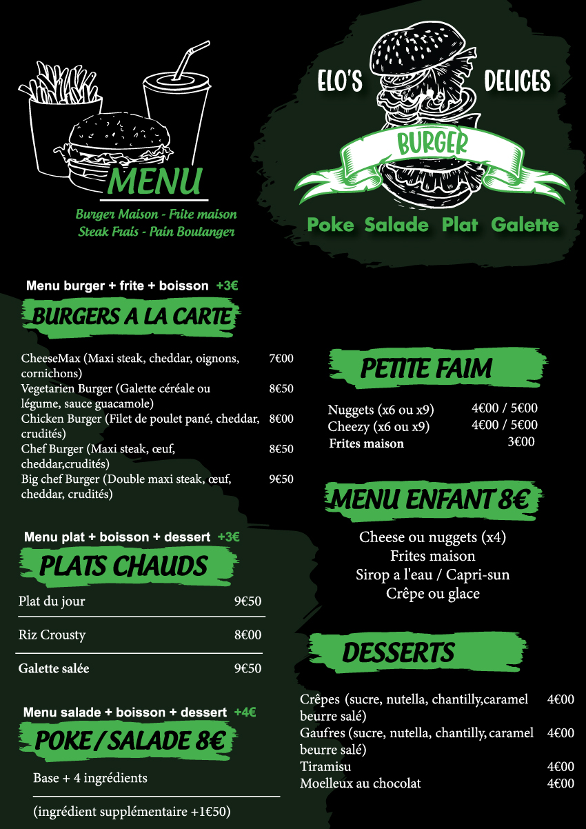 C'est un plaisir de venir chez Elo's Délices, on y est bien accueillis, aux petits soins, notamment pour que tout se passe au mieux pour les enfants. Les frites sont maisons et délicieuses !