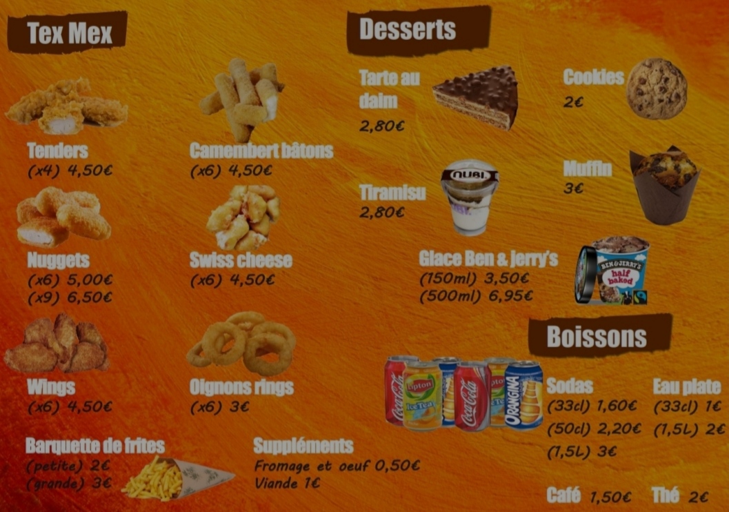 Super fast food ! Equipe souriante et toujours serviable, livraison dans leur secteur et burger et tacos super bons ! Je recommande chaudement