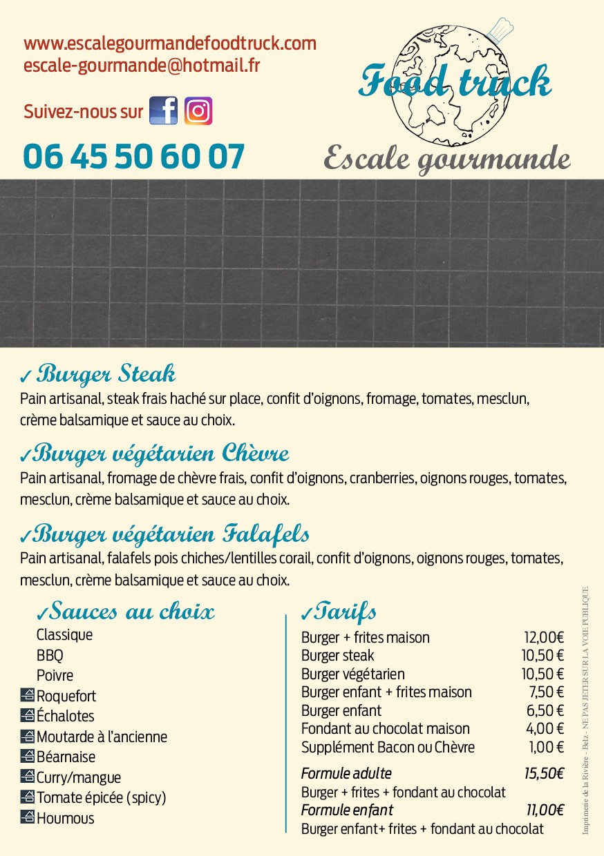 Après de nombreuses tentatives de trouver un établissement ouvert un lundi soir pour pouvoir manger, nous sommes tombés sur l’Escale Gourmande. Les frites maisons sont très bonnes, les burgers de la taille idéale pour nous caler. Mon péché mignon a été le fondant au chocolat qui est exquis. Je recommence très fortement ce food truck !