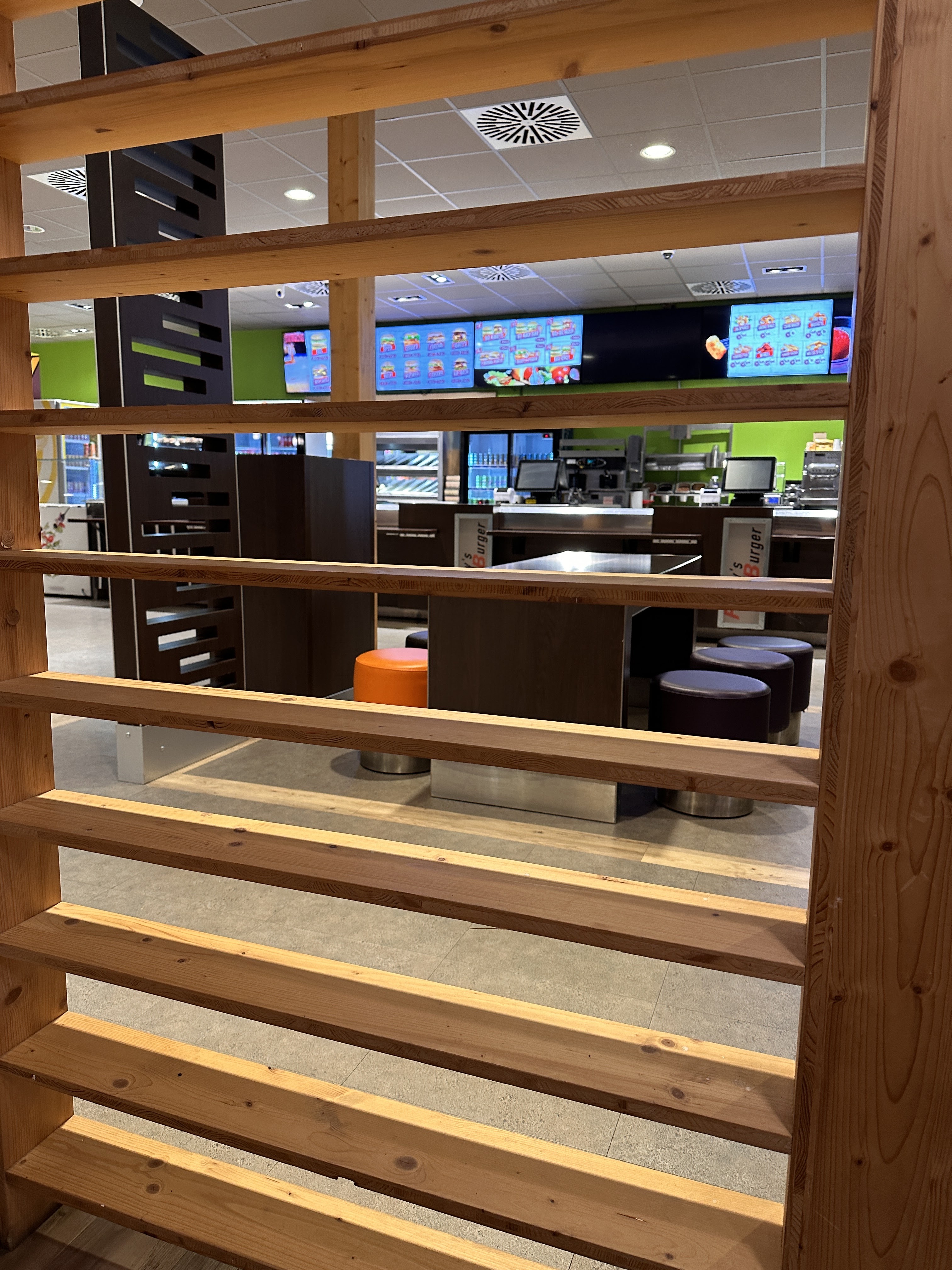 Lunaire... On se croirait dans un burger sortit tout droit de la 4 ème dimension... il n'y a personne, pas un chat,pas un rat ( ou peut être en cuisine au vu de l'hygiene) .Personne... pourtant l'attente est longue.....longue ...et l'atmosphère très.....pesante avec des petites sonneries intempestives au milieu du vrombissement du frigo... Alors si vous voulez faire un tour dans la 4eme dimension, venez!....ve